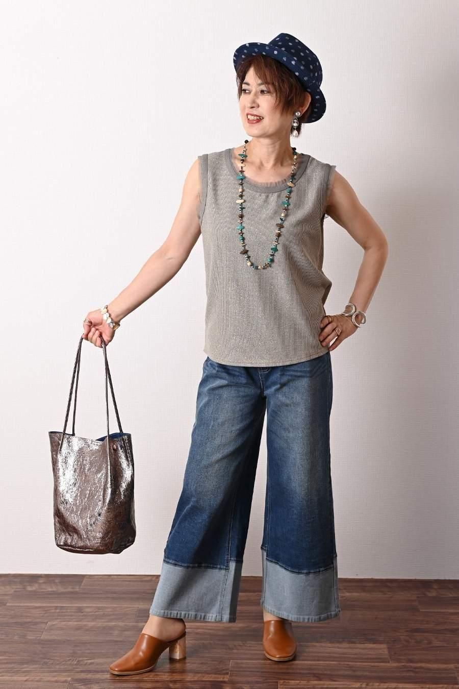 ファンシーヤーンVネックベスト+選べる2種類のインナーカットソー2点セットコーデ