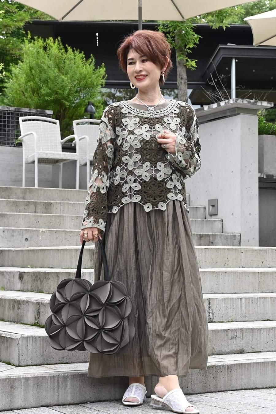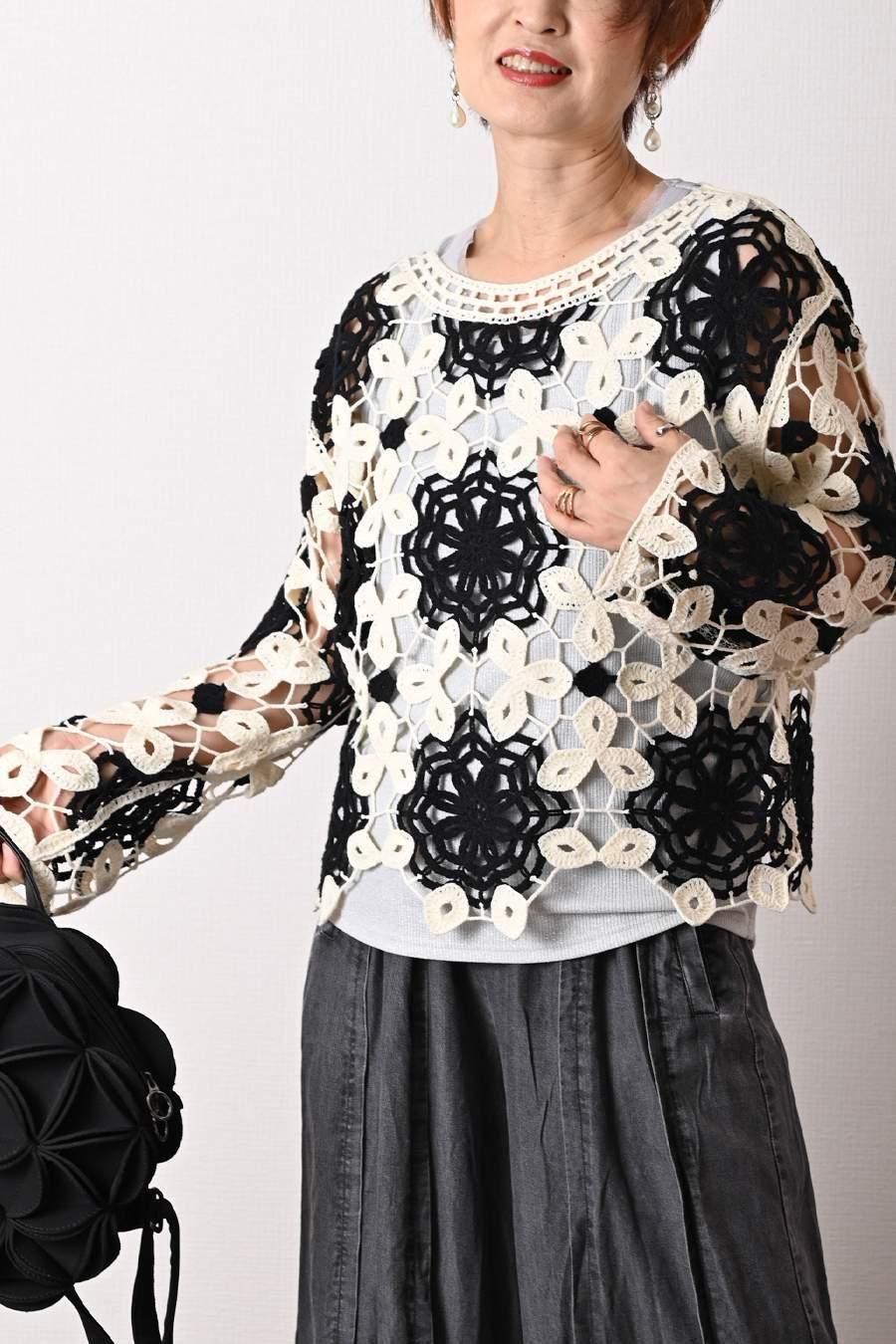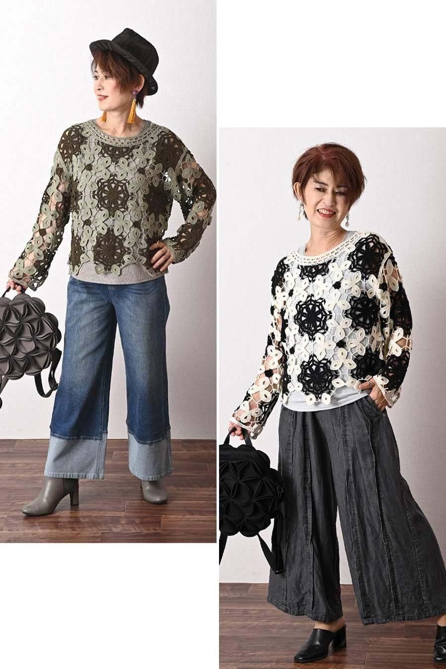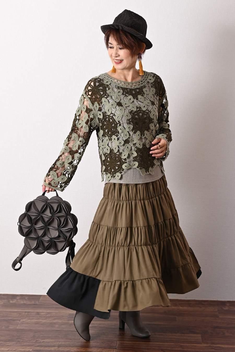 ポンチ&カットジャガードプルオーバー+カットジャガードフレアスカート2点セットコーデ