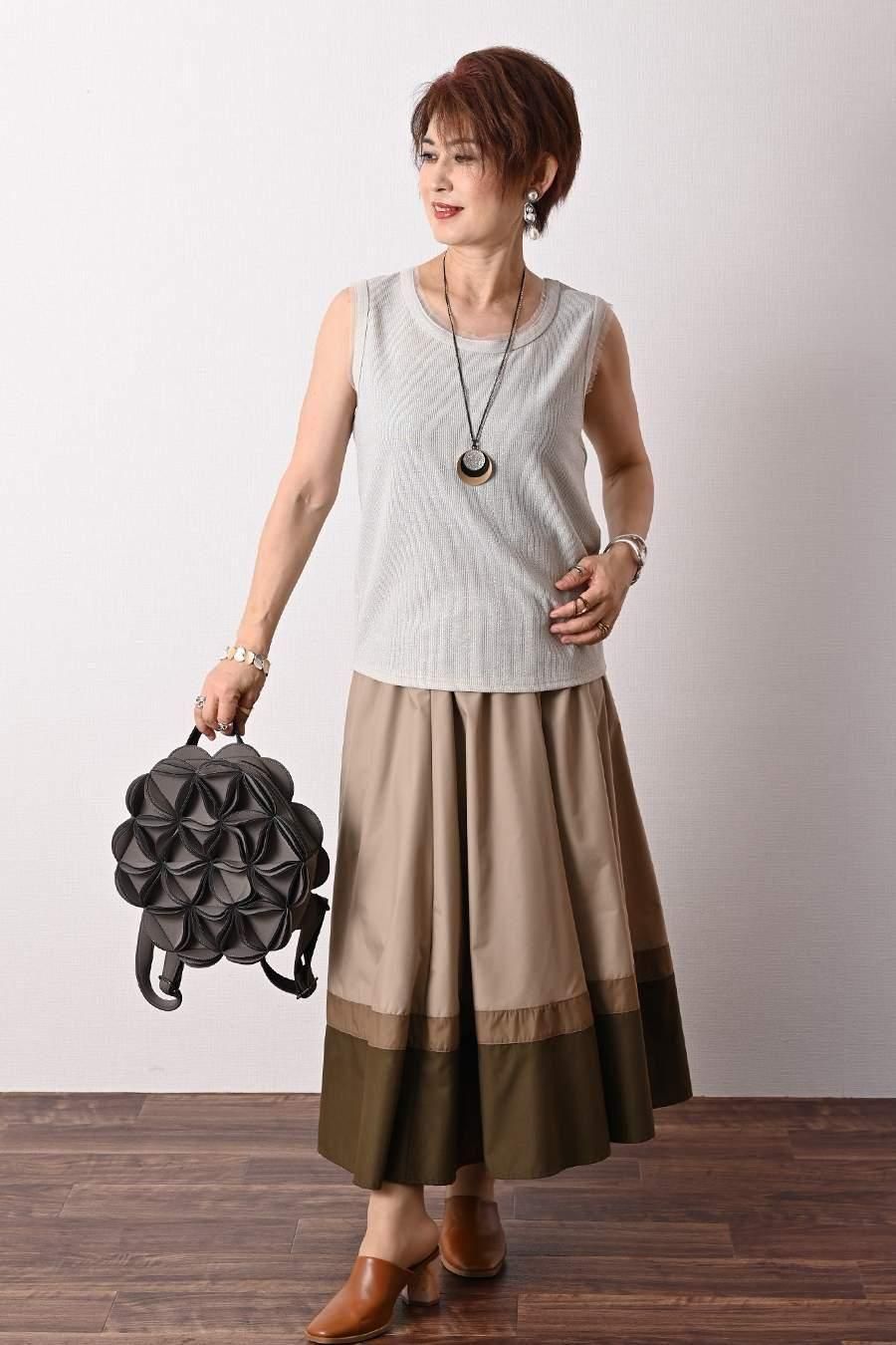 大人のバルーンブルゾン+先染めジャガード多色チェックスカート2点セットコーデ