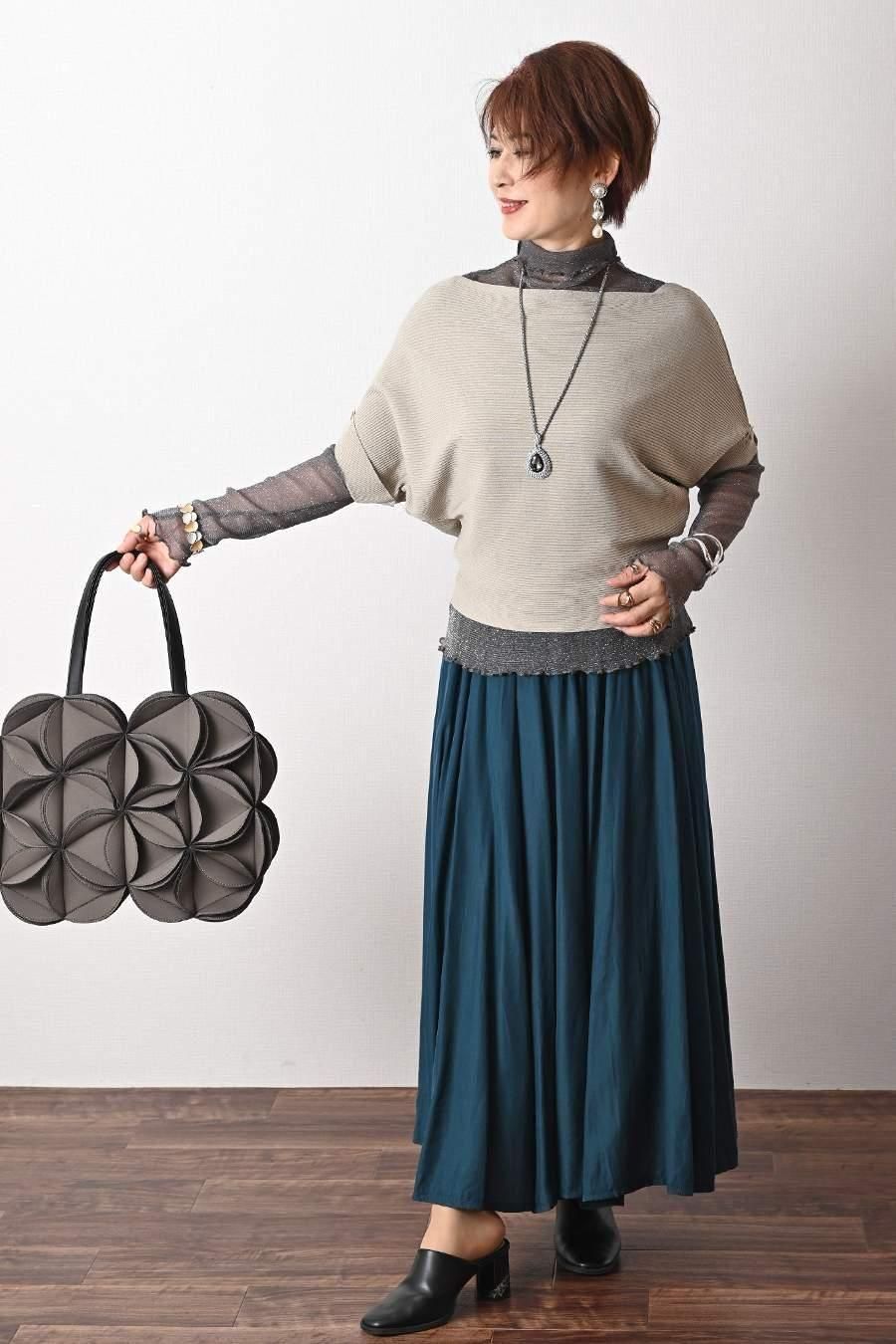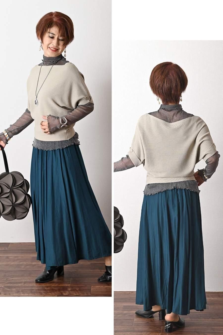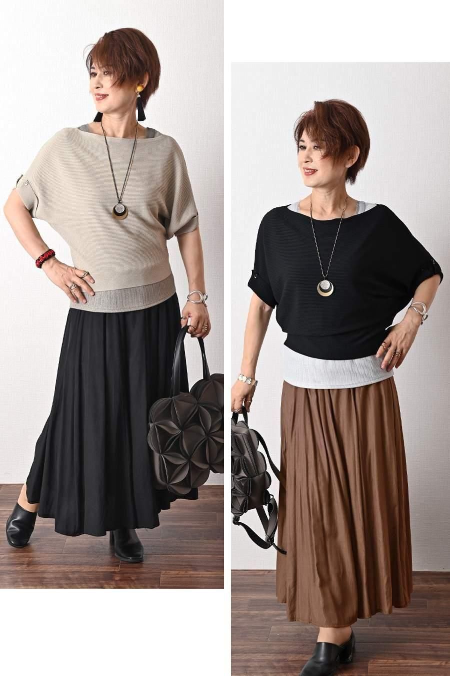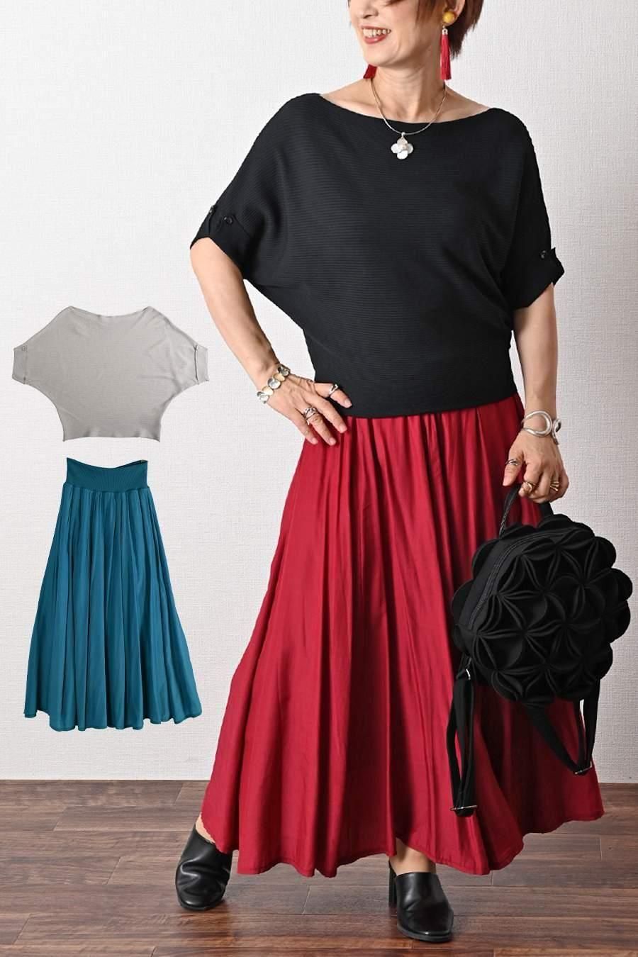 ボートネックニット+ウエストリブフレアスカート2点セットコーデ