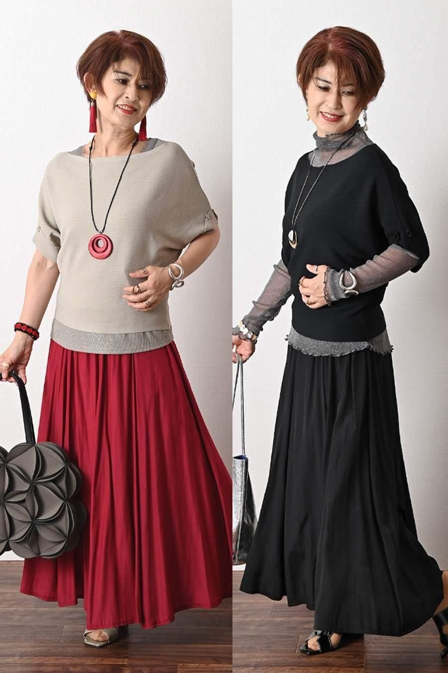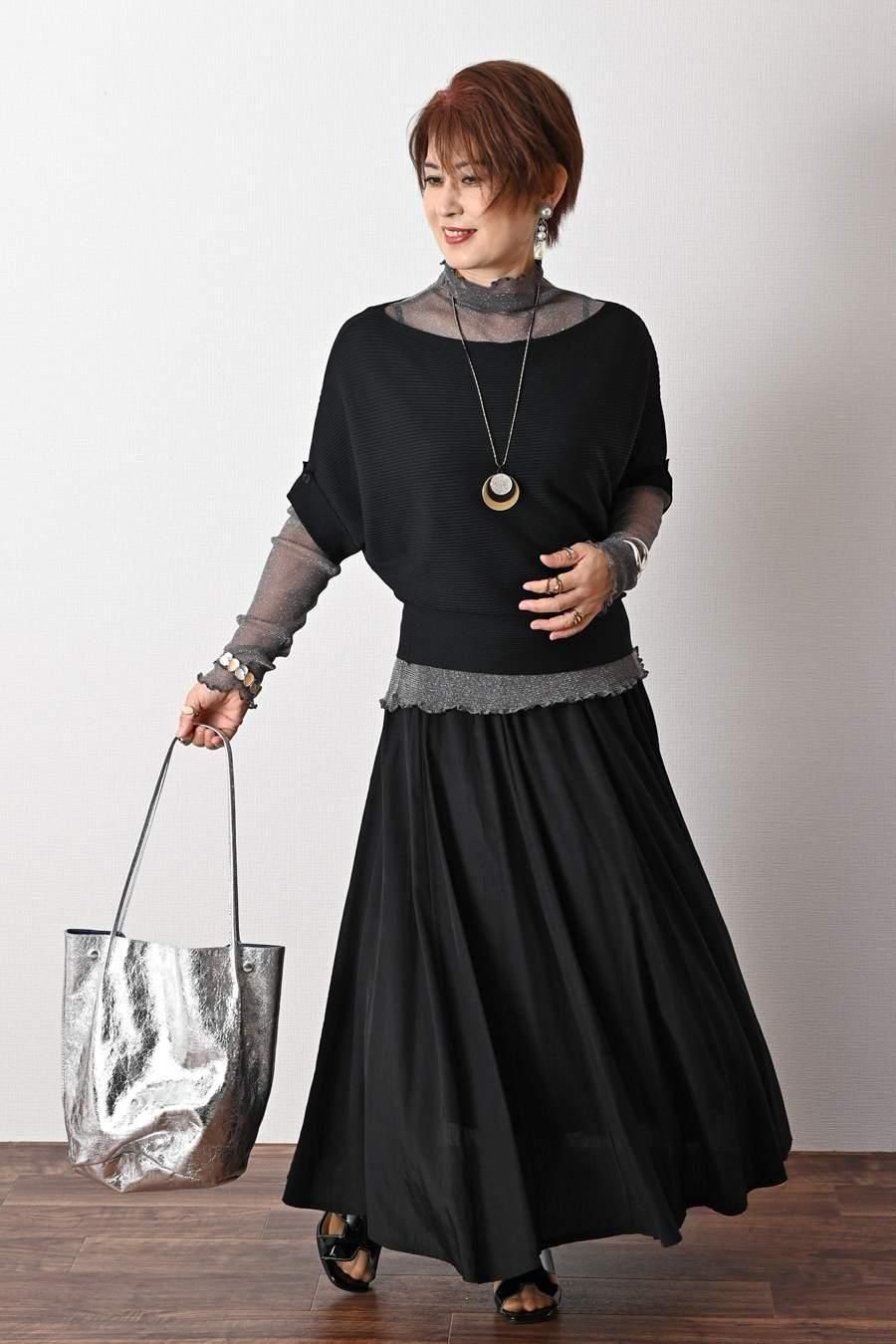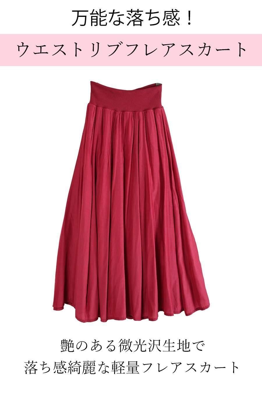 ボートネックニット+ウエストリブフレアスカート2点セットコーデ