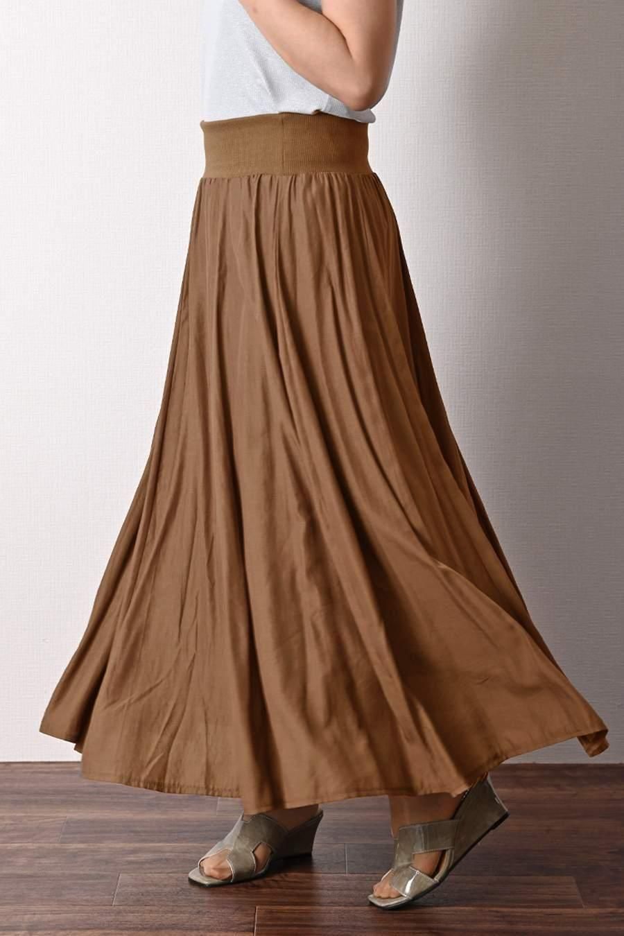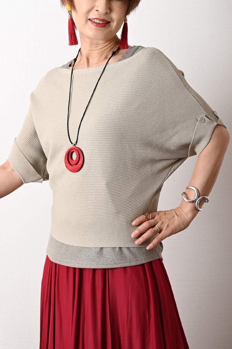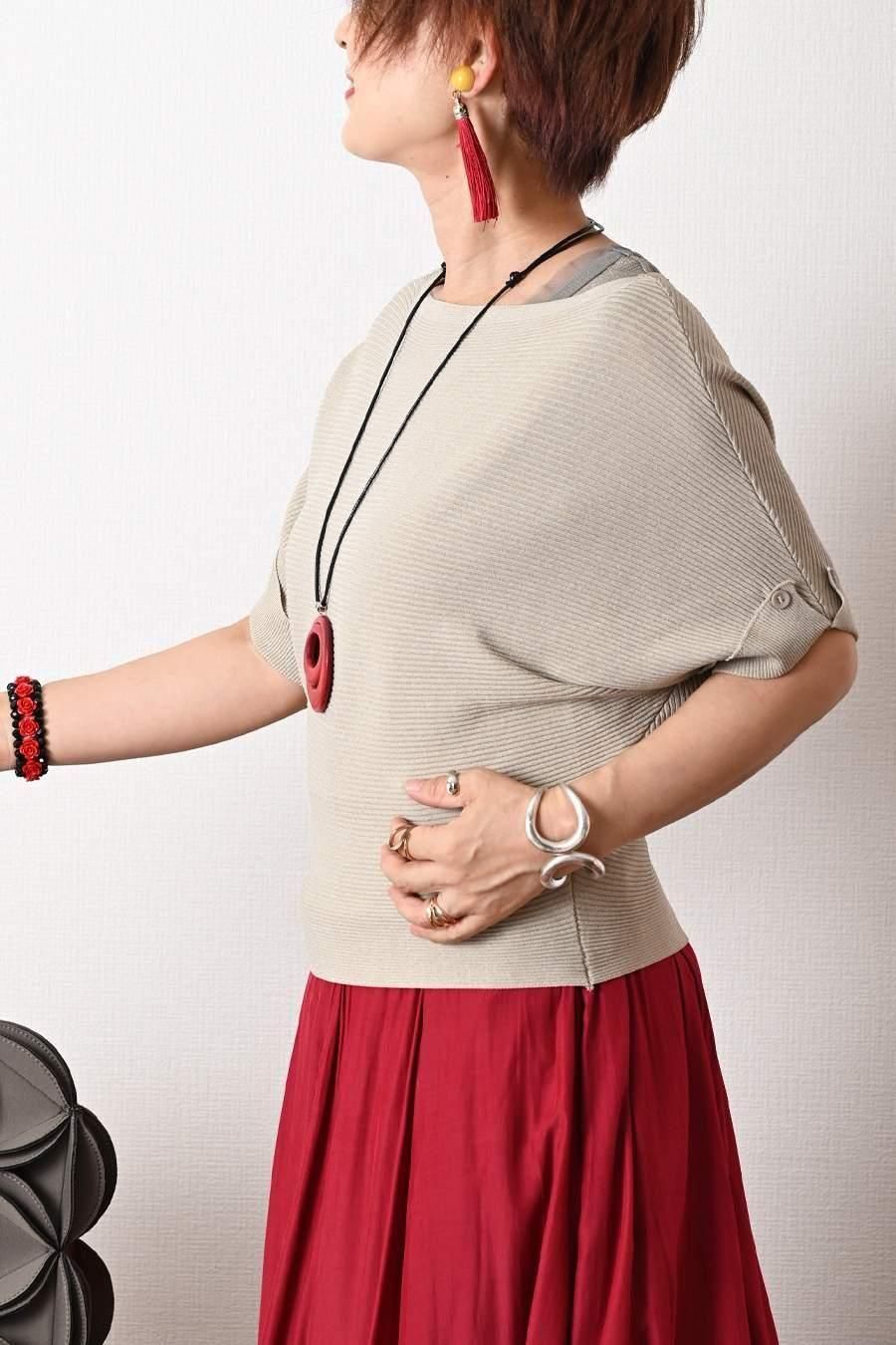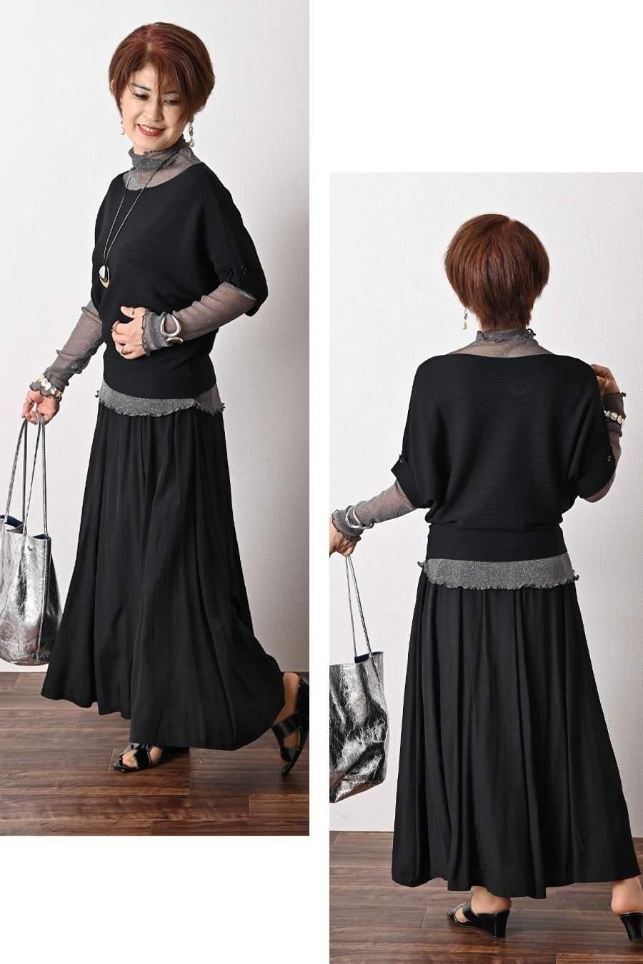 ボートネックニット+ウエストリブフレアスカート2点セットコーデ