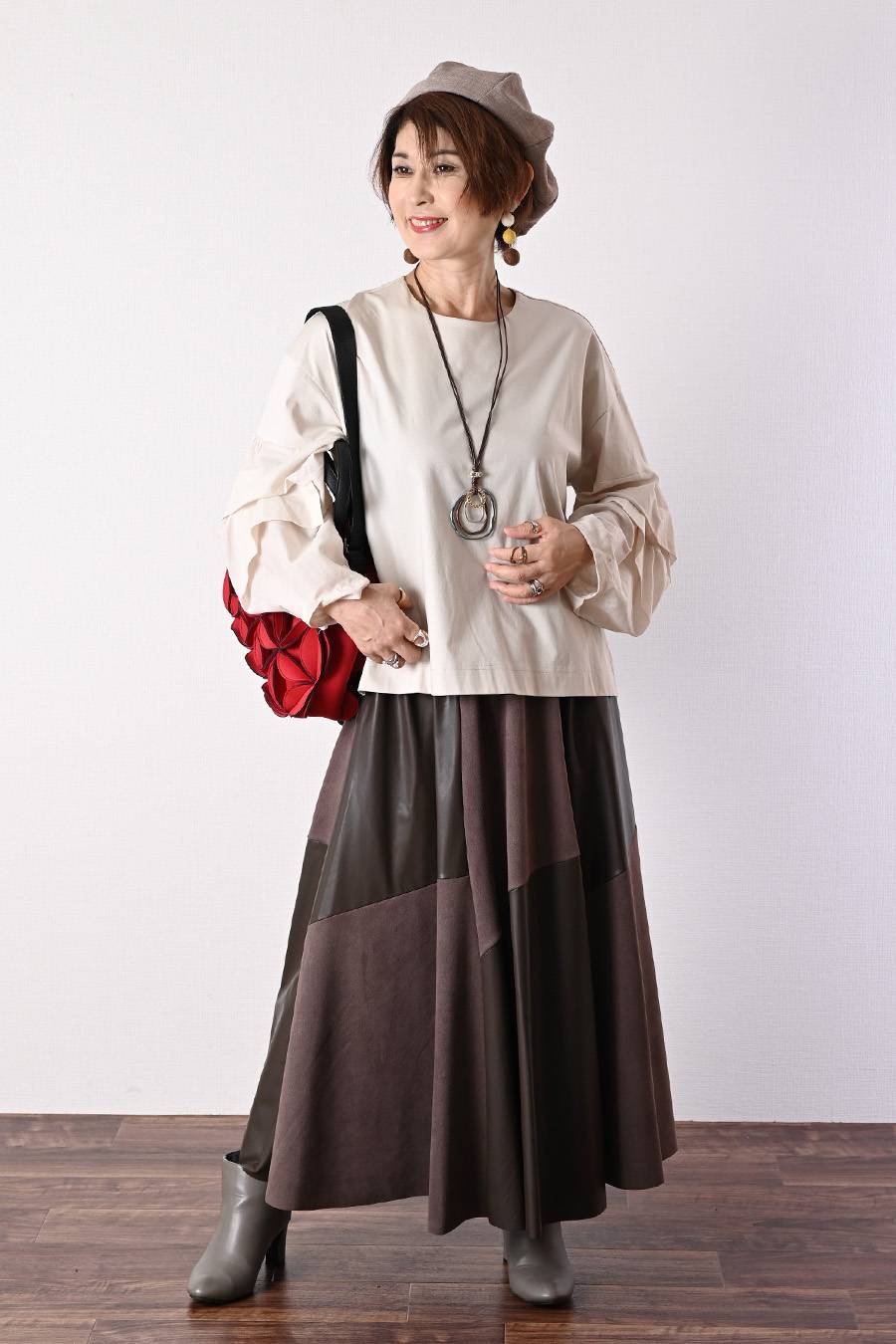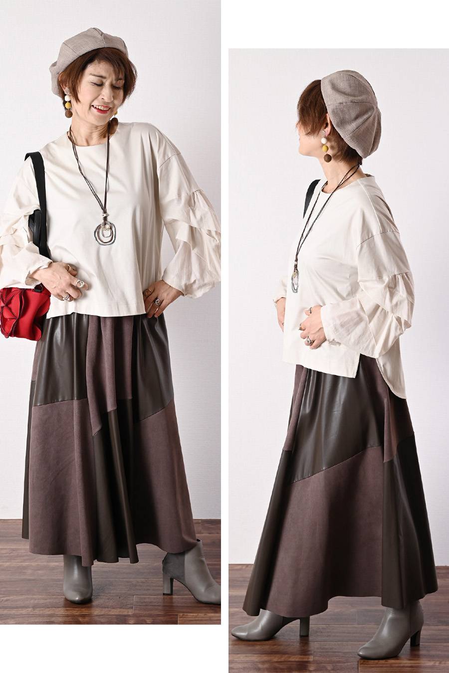 ポンチ&カットジャガードプルオーバー+カットジャガードフレアスカート2点セットコーデ