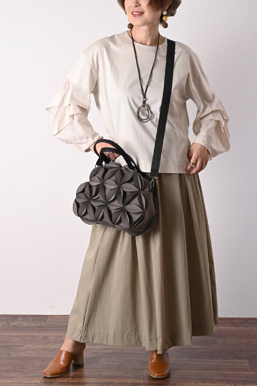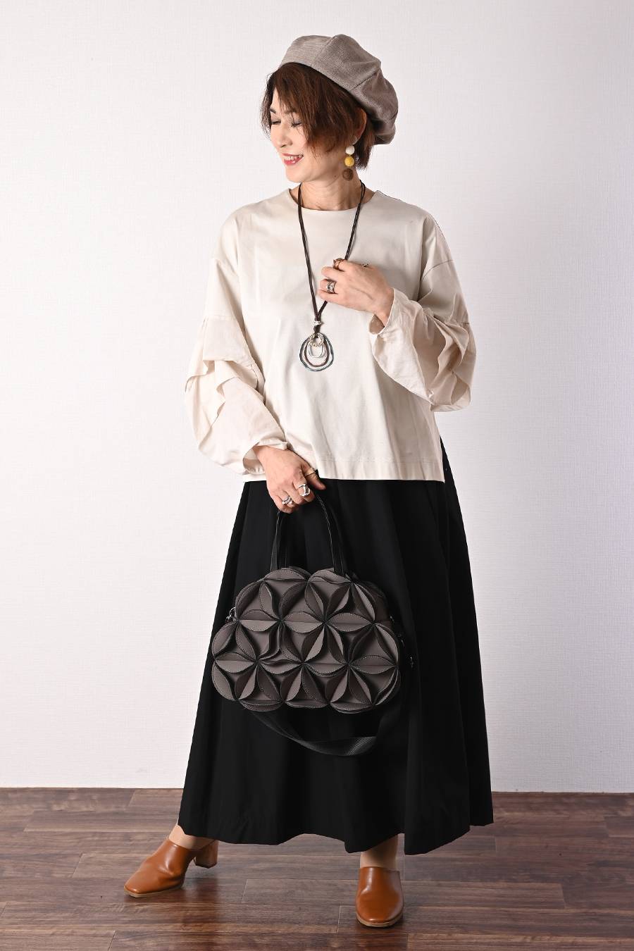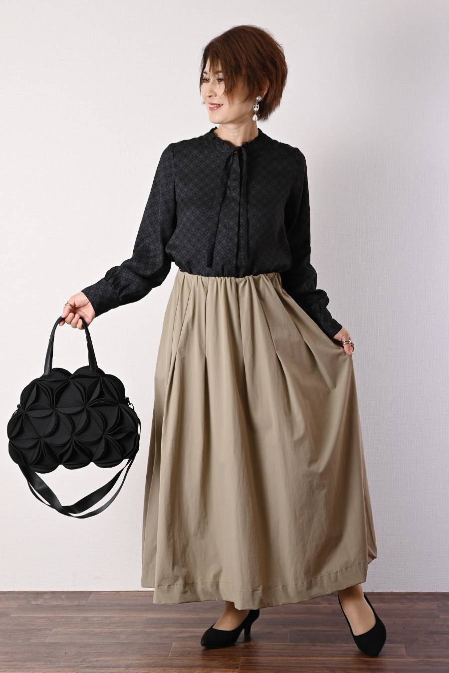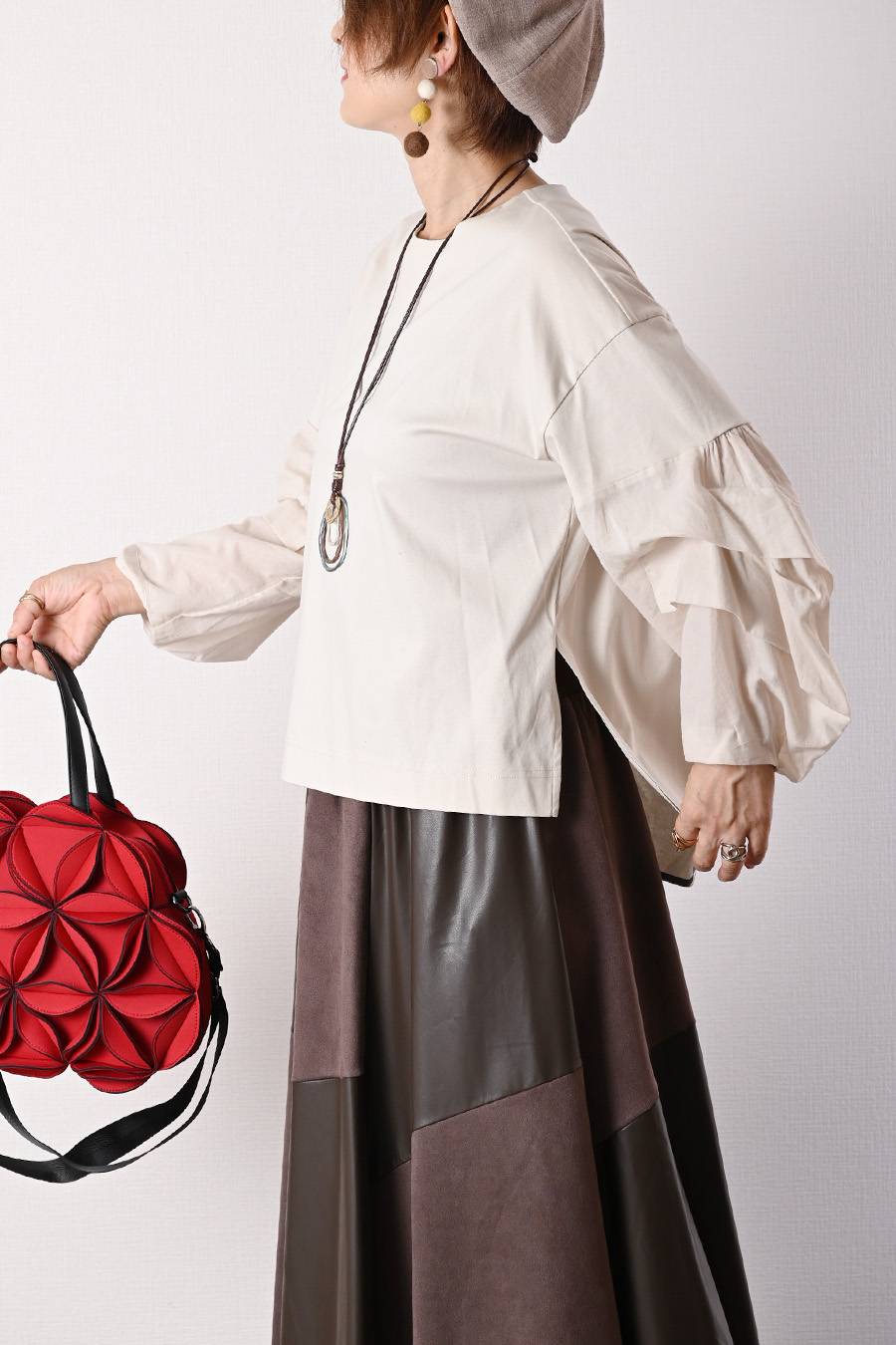 タックスリーブプルオーバー+軽量タック&ギャザー フレアスカート2点セットコーデ