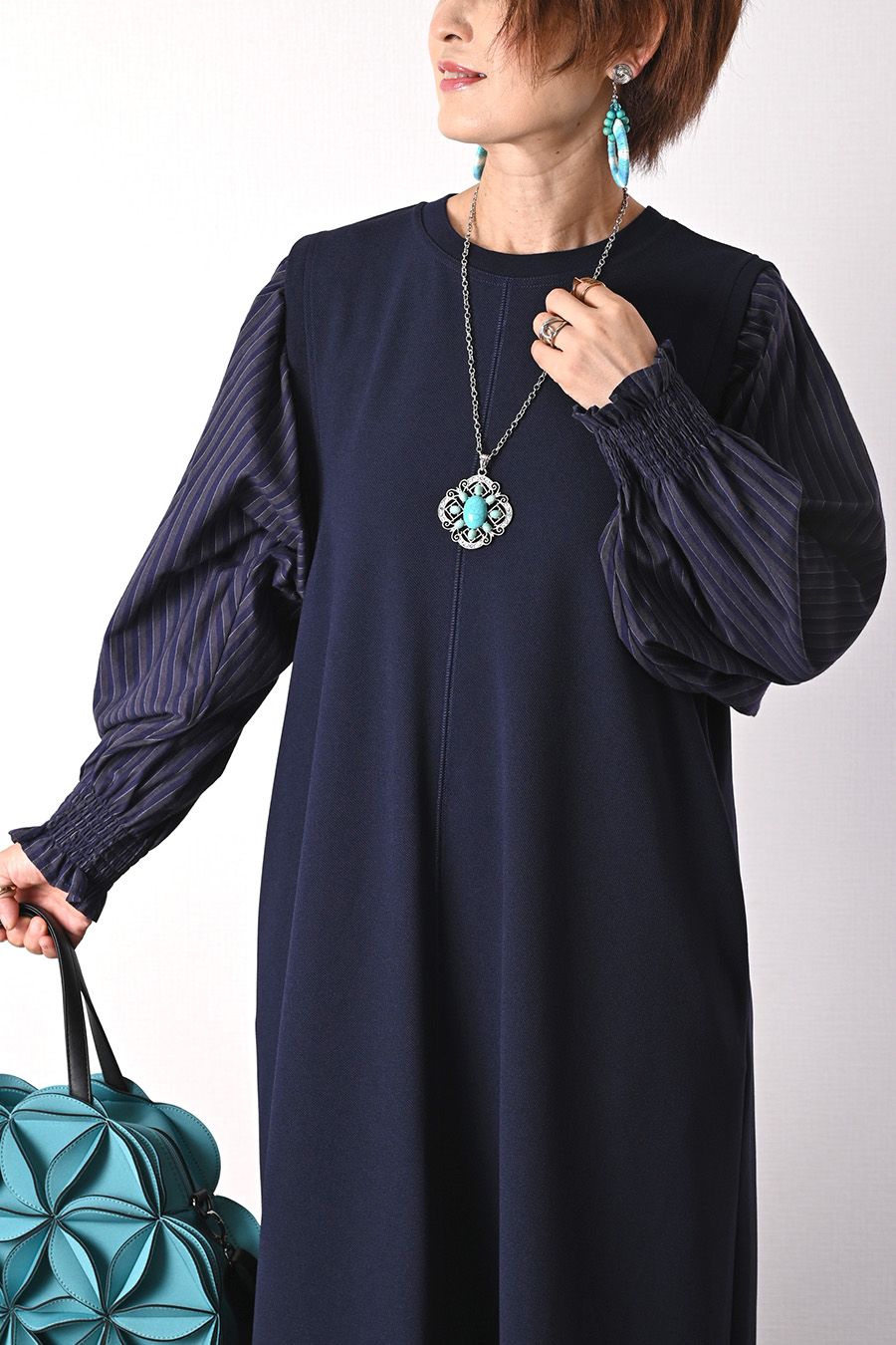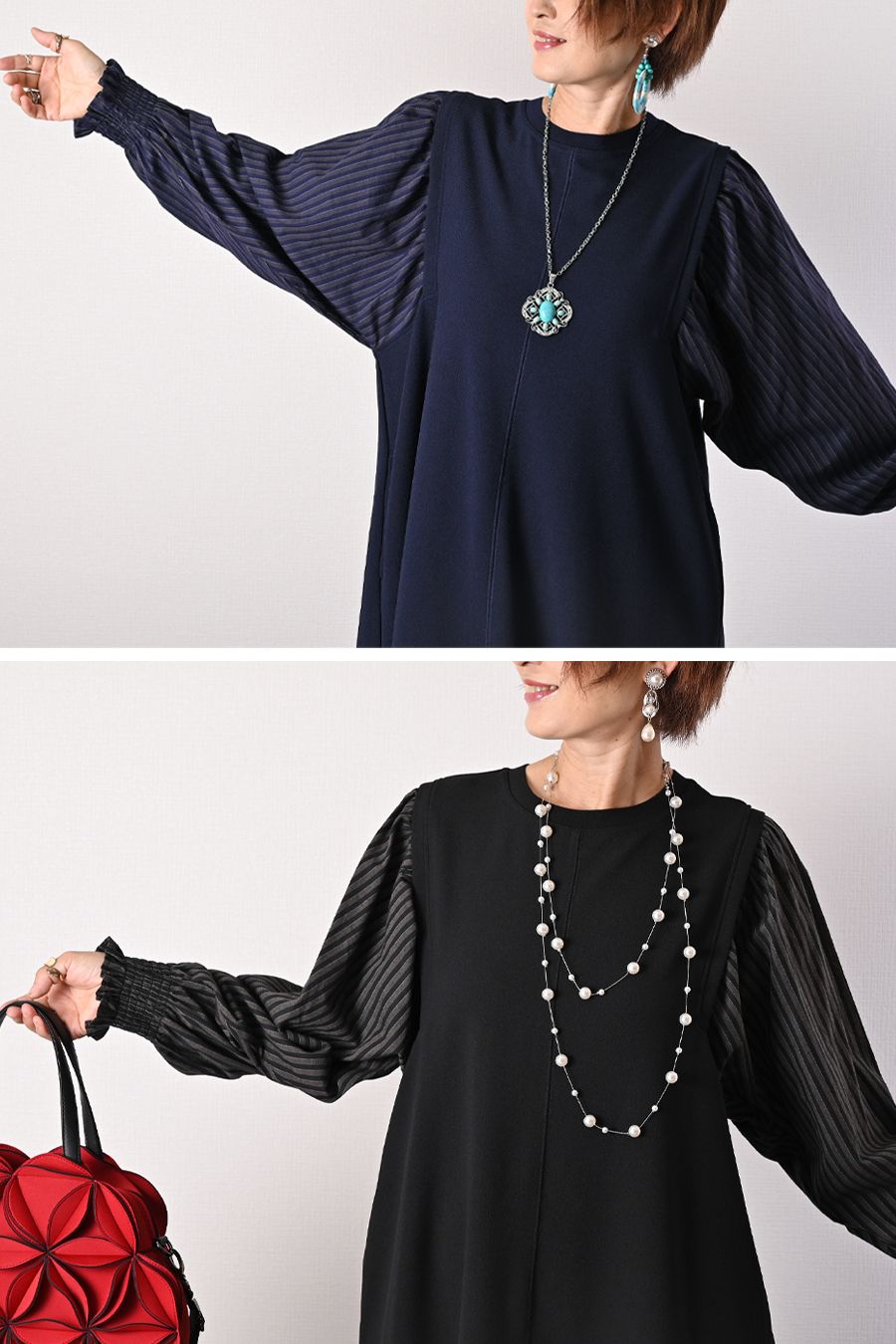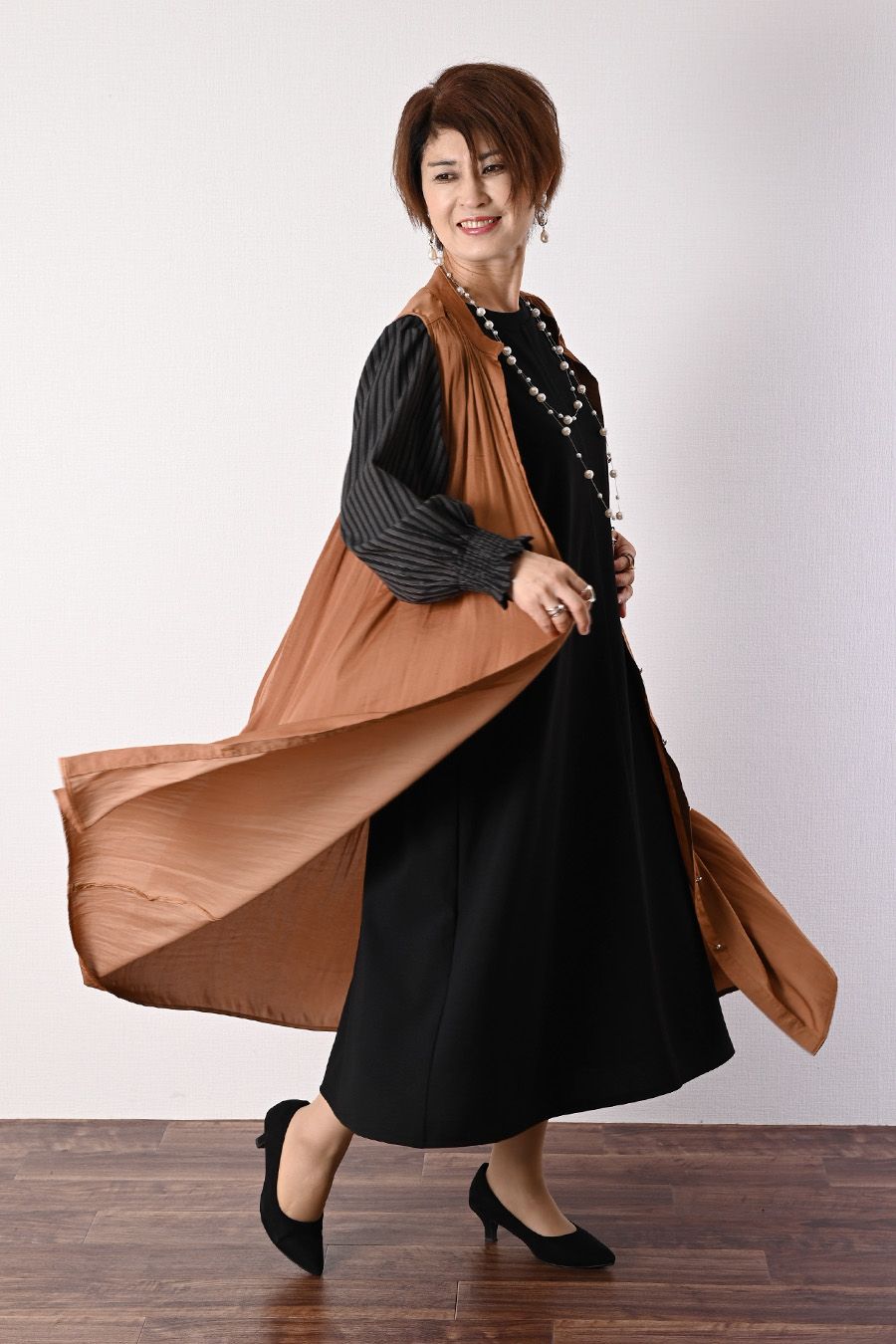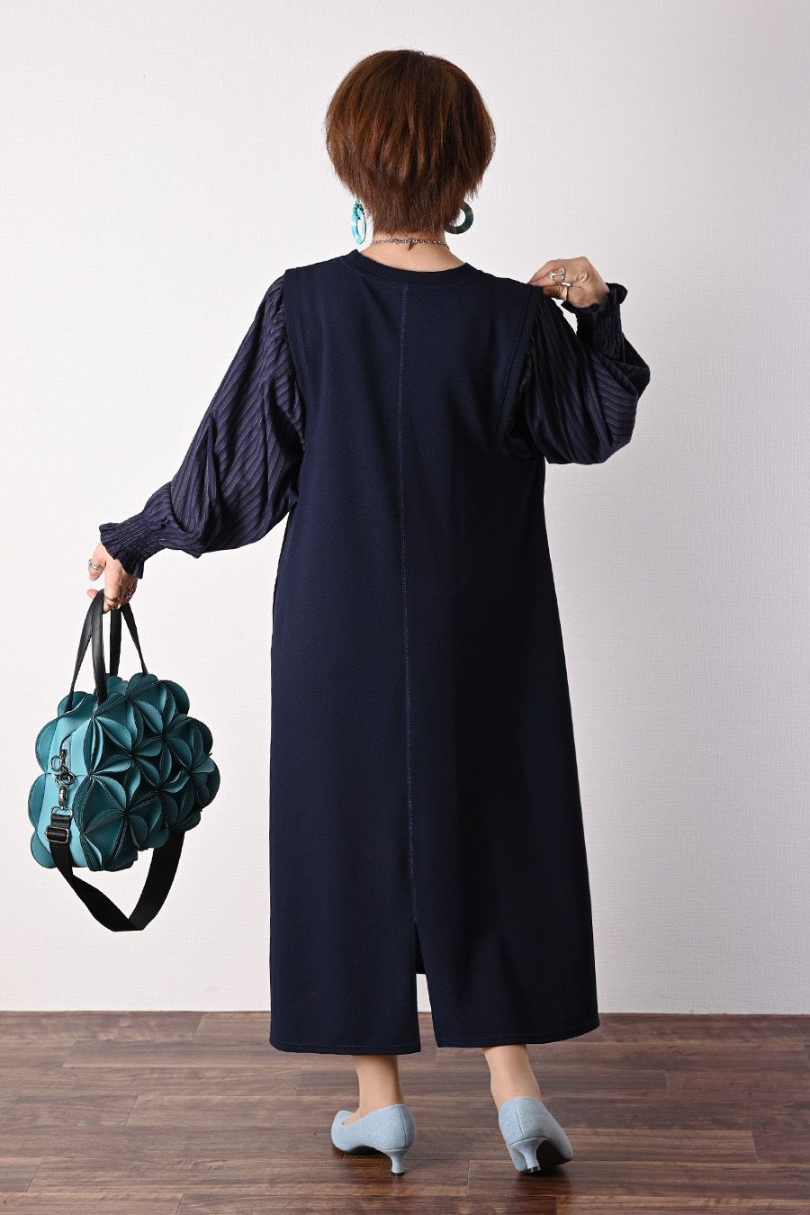 ファンシーヤーンVネックベスト+選べる2種類のインナーカットソー2点セットコーデ