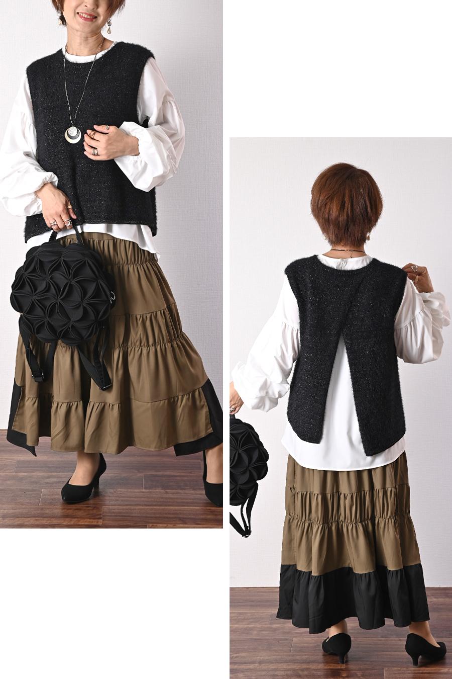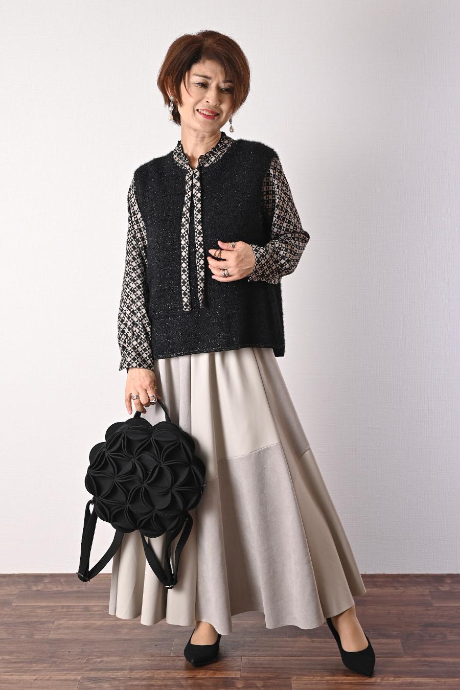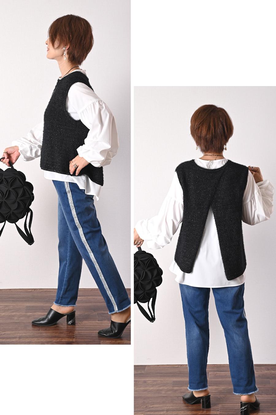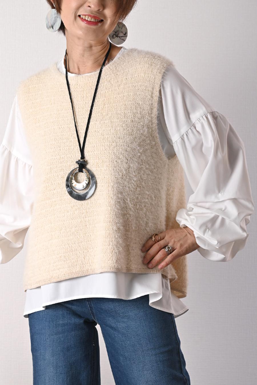 ファンシーヤーンVネックベスト+選べる2種類のインナーカットソー2点セットコーデ