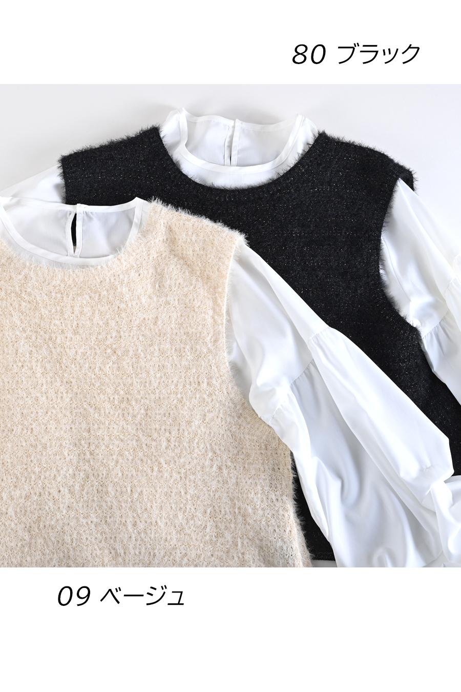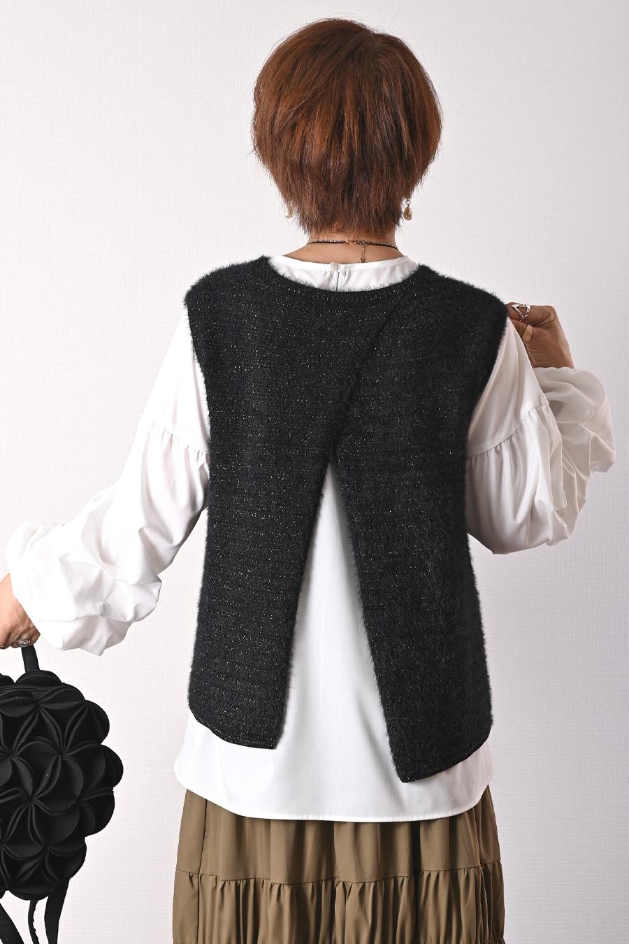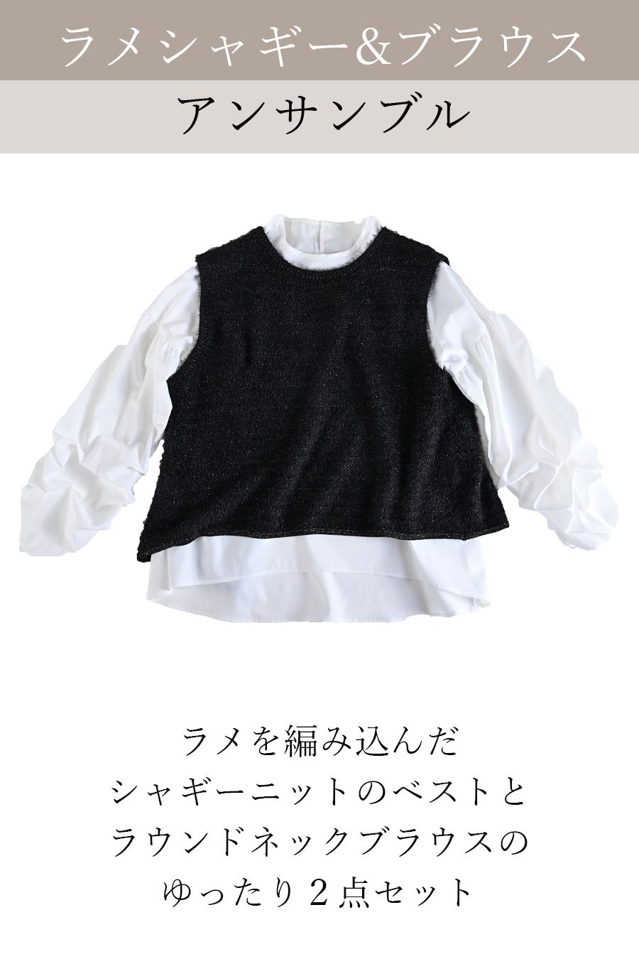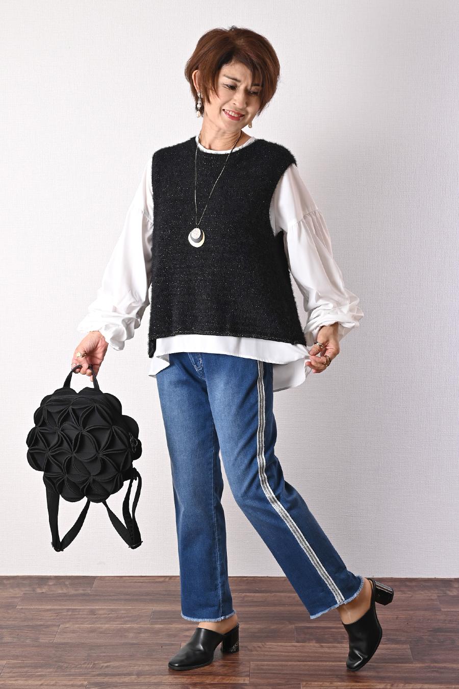 ファンシーヤーンVネックベスト+選べる2種類のインナーカットソー2点セットコーデ