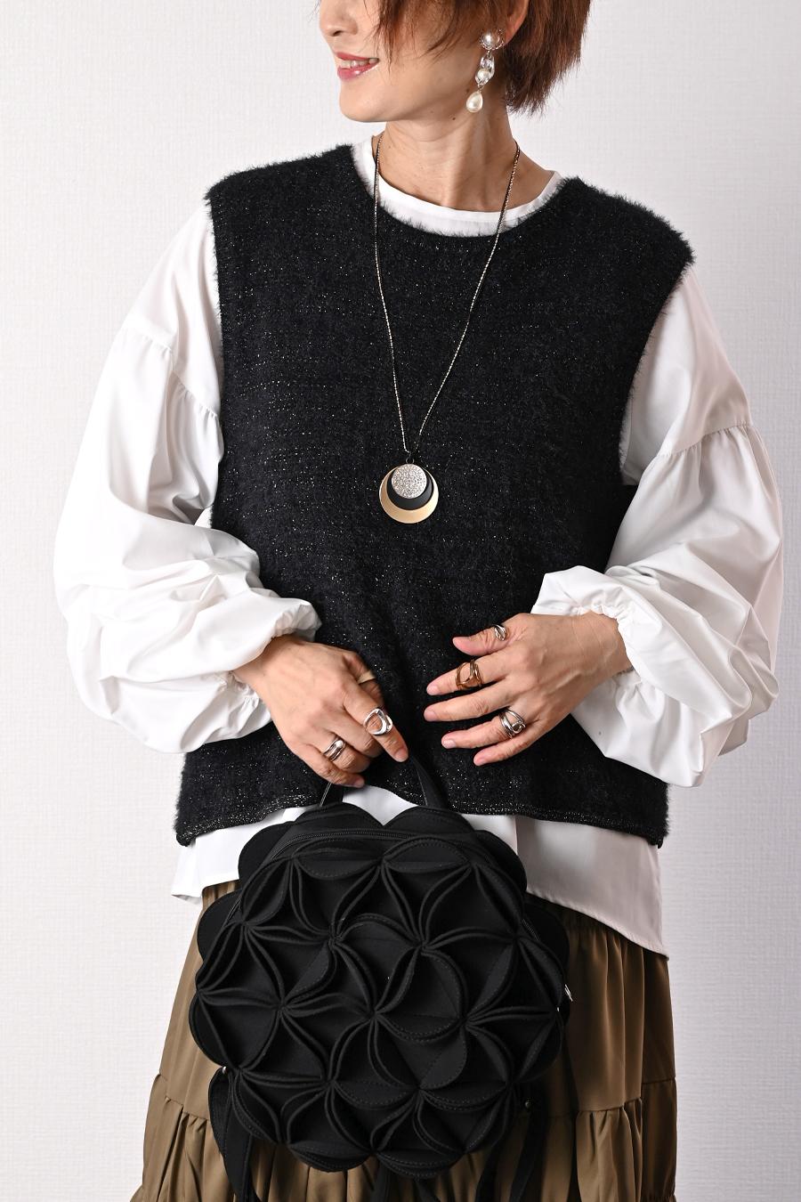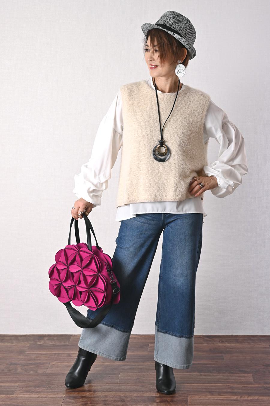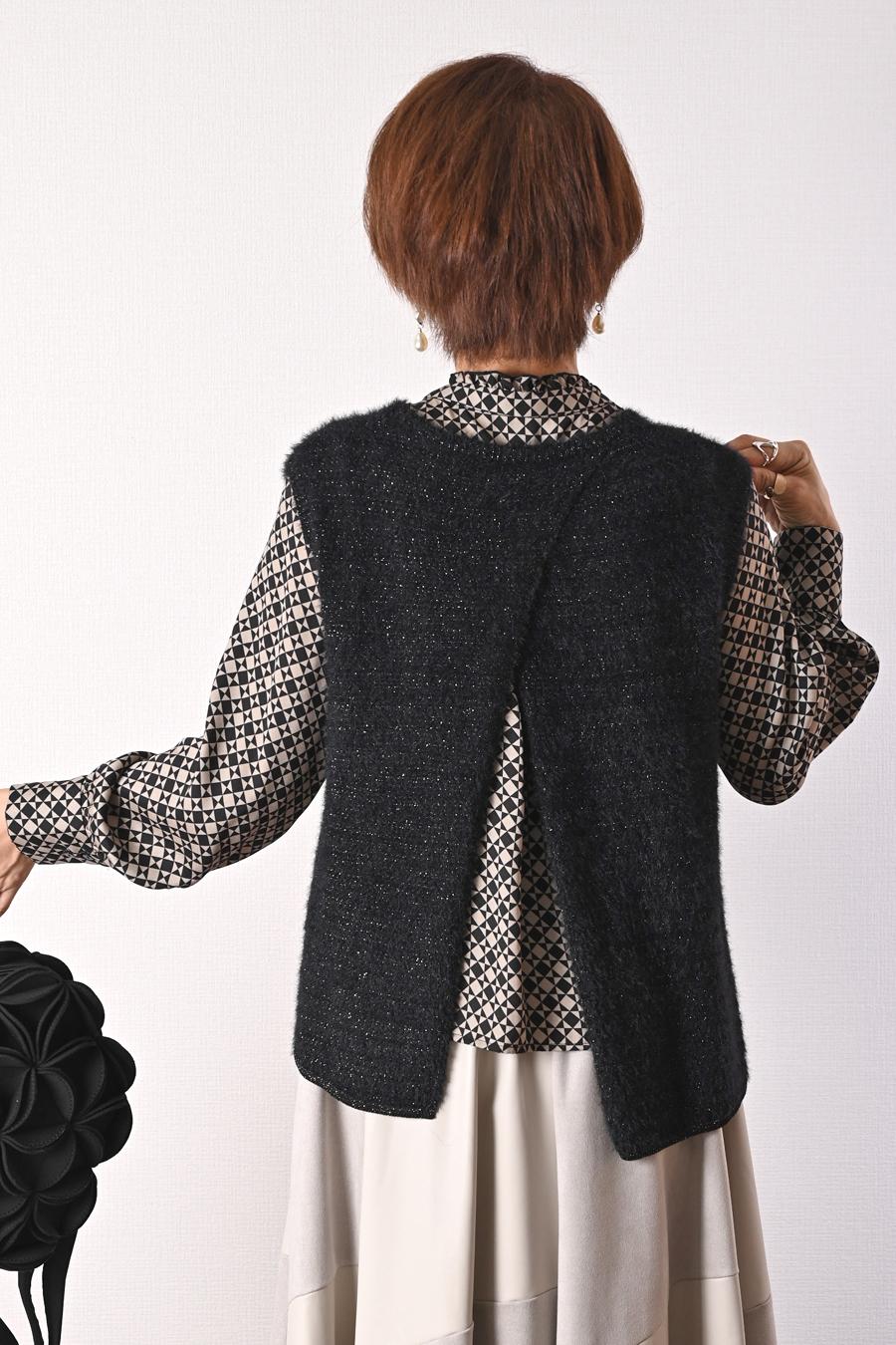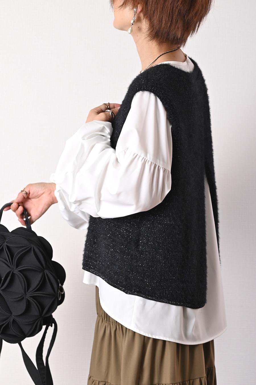 ファンシーヤーンVネックベスト+選べる2種類のインナーカットソー2点セットコーデ