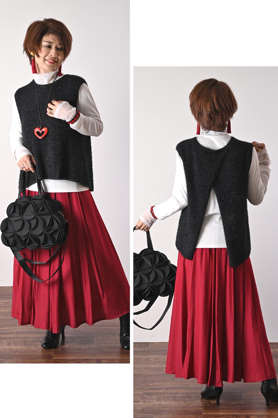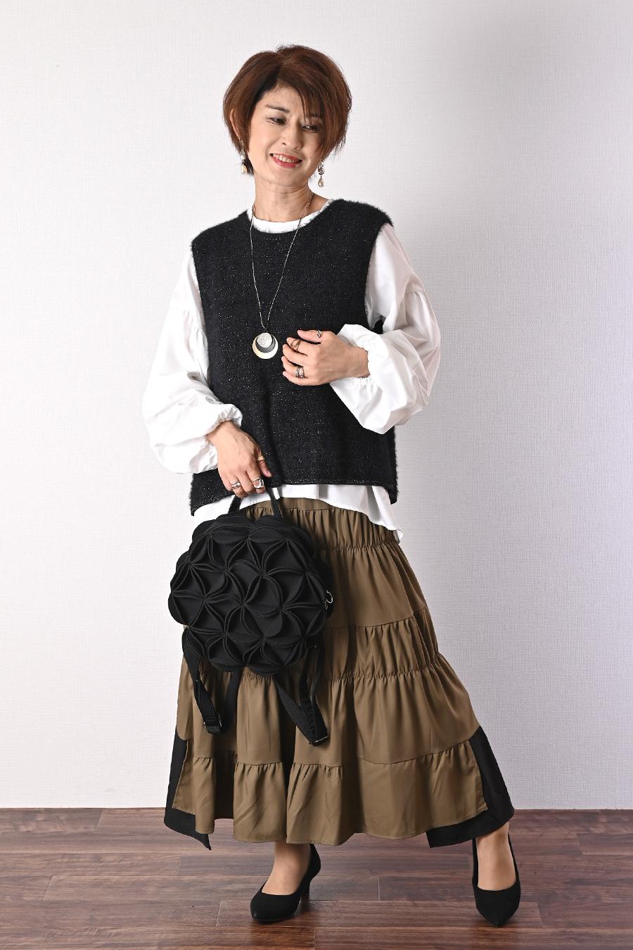 タックスリーブプルオーバー+軽量タック&ギャザー フレアスカート2点セットコーデ