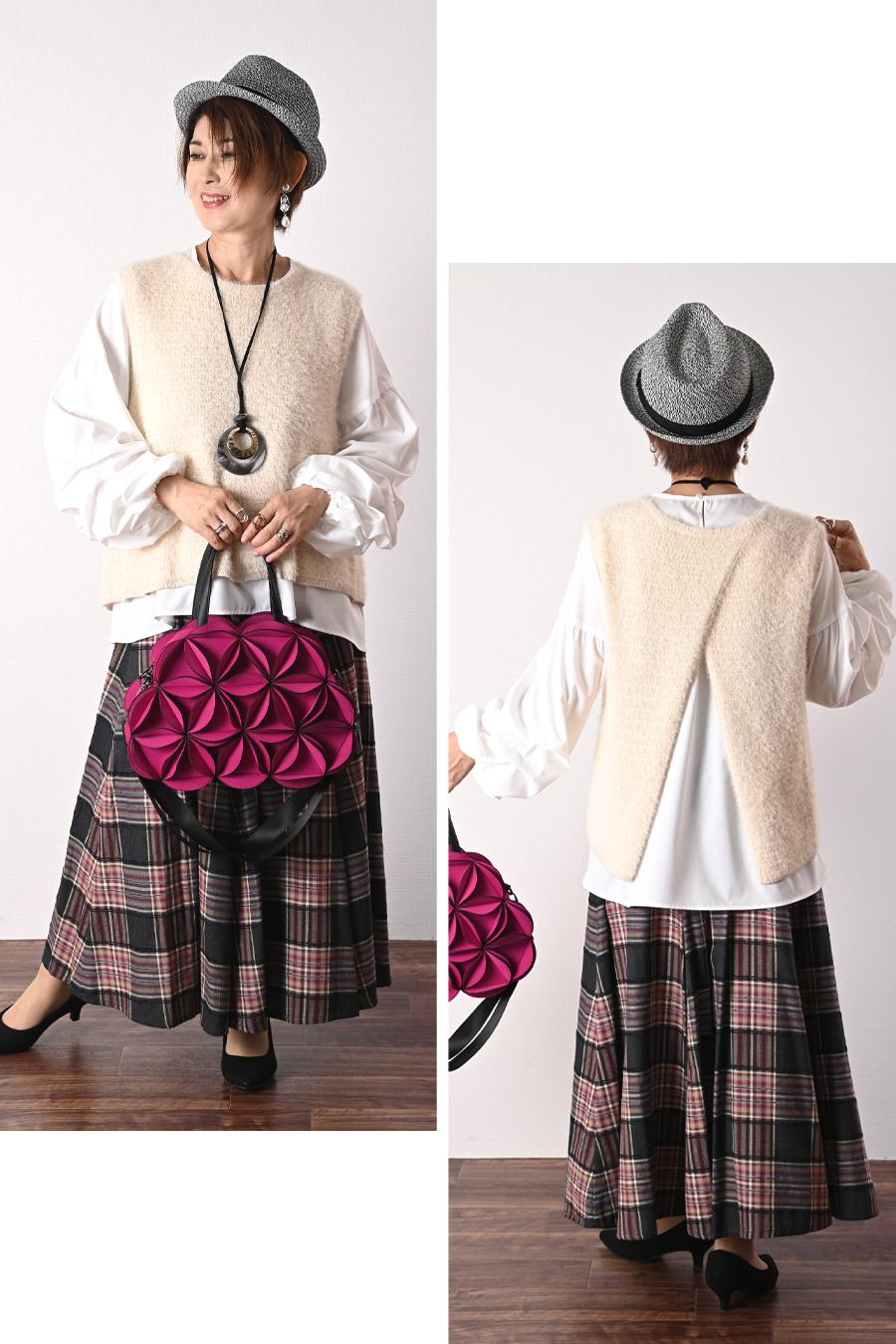大人のバルーンブルゾン+先染めジャガード多色チェックスカート2点セットコーデ【10/3日以降発送予定】