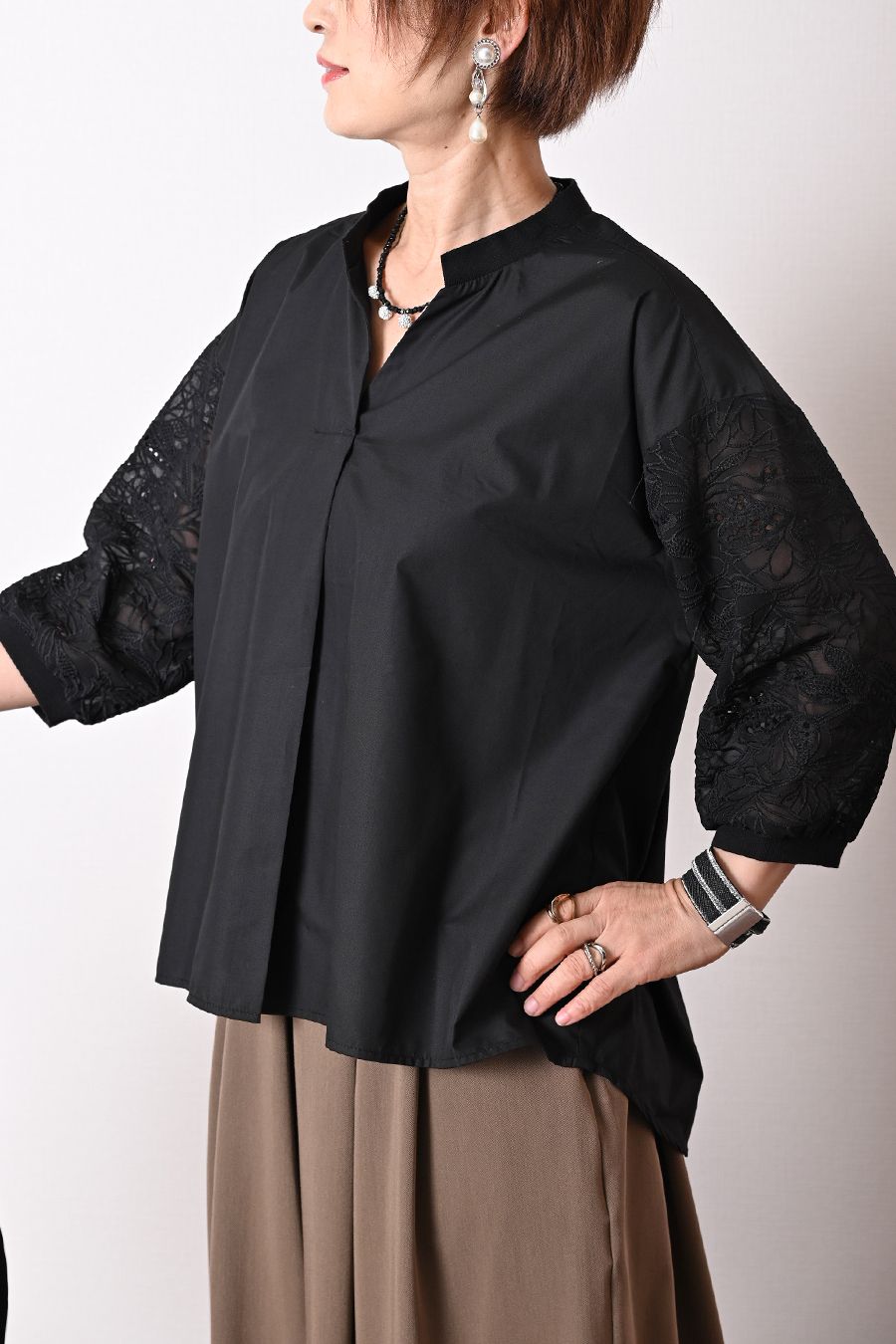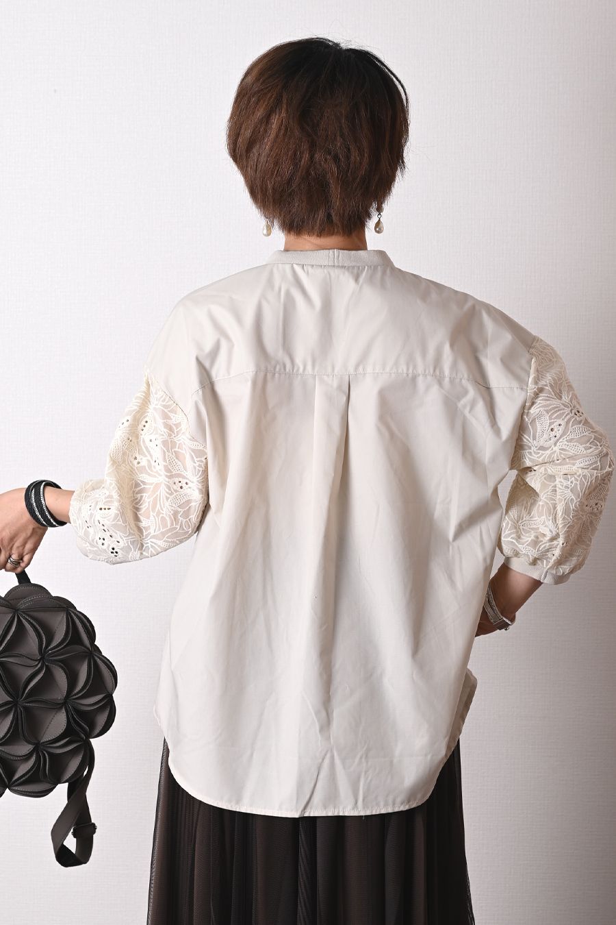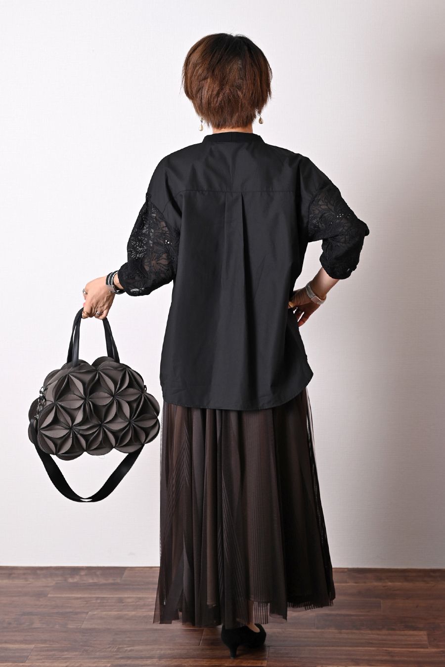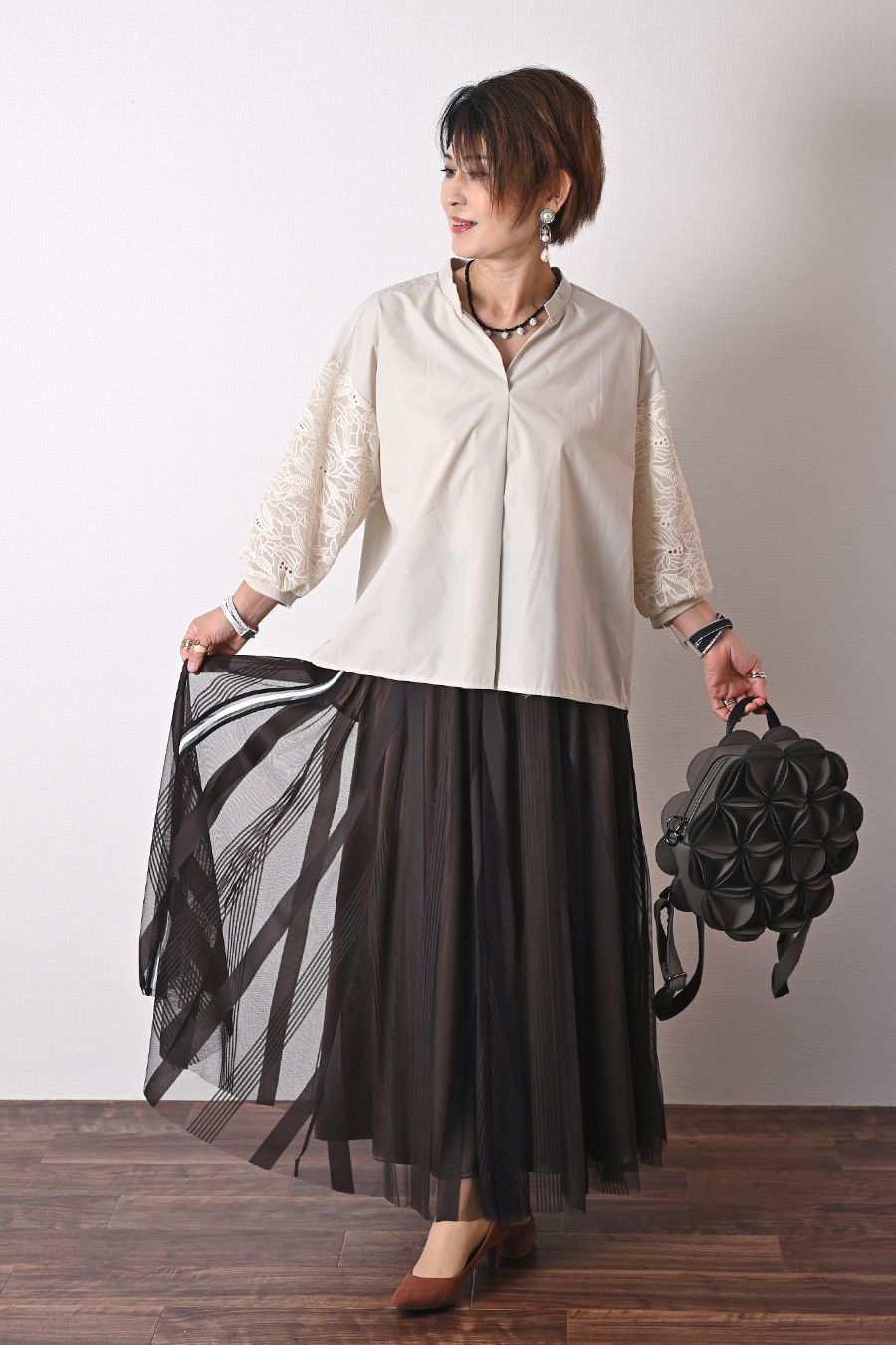 レーススリーブブラウス+ストライプチュールフレアスカート2点セットコーデ