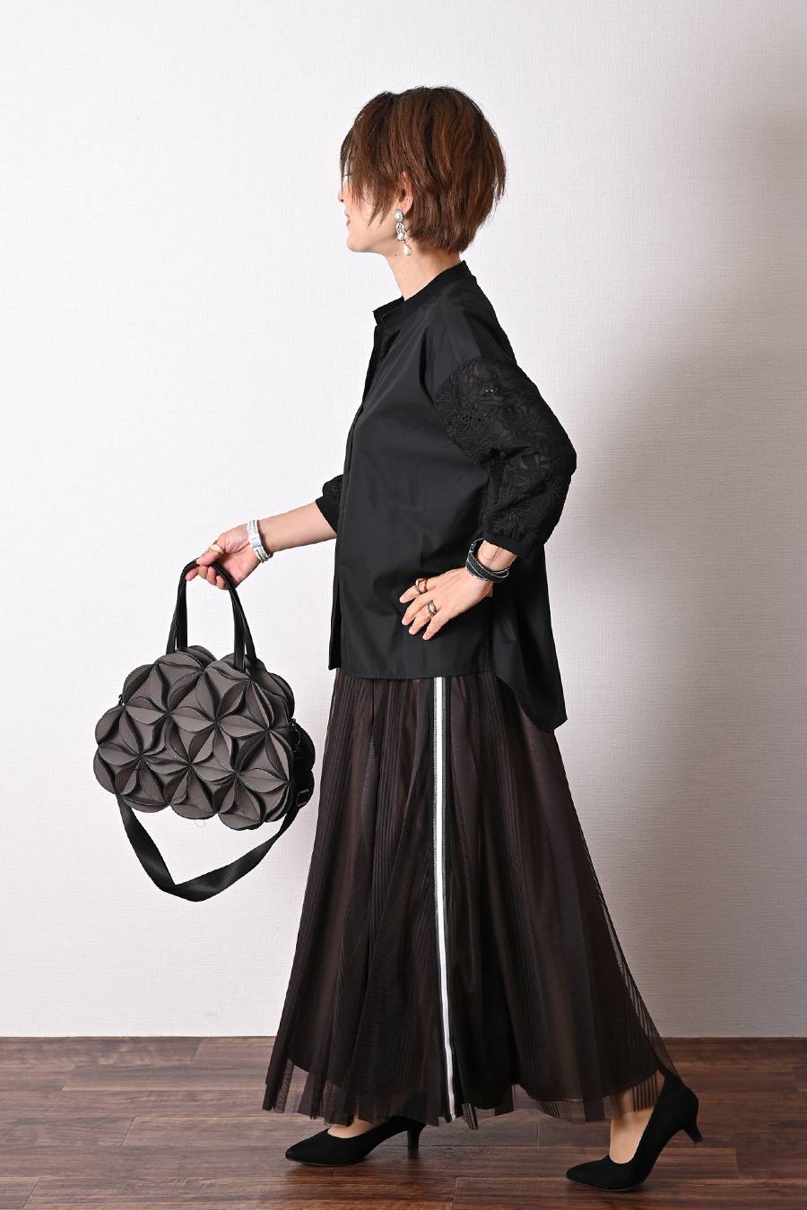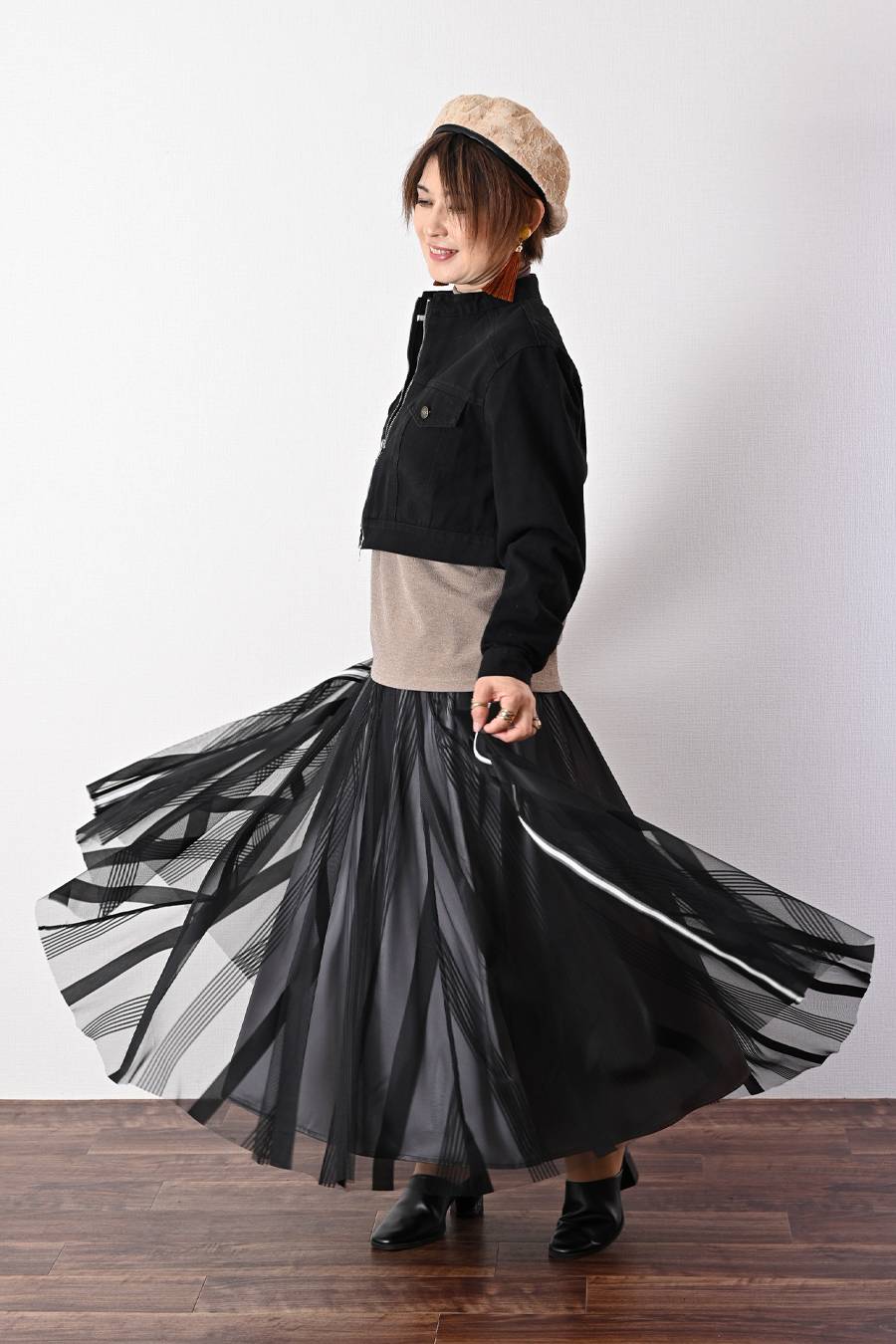 大人のバルーンブルゾン+先染めジャガード多色チェックスカート2点セットコーデ【10/3日以降発送予定】