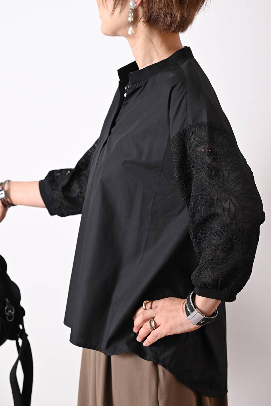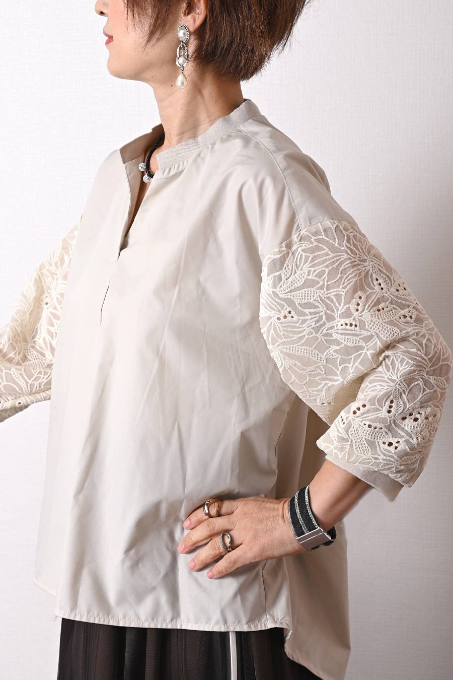 レース ブラウス+サテン風ワイドパンツ2点セット <クーポンでメンバーPriceからMAX10%OFF>