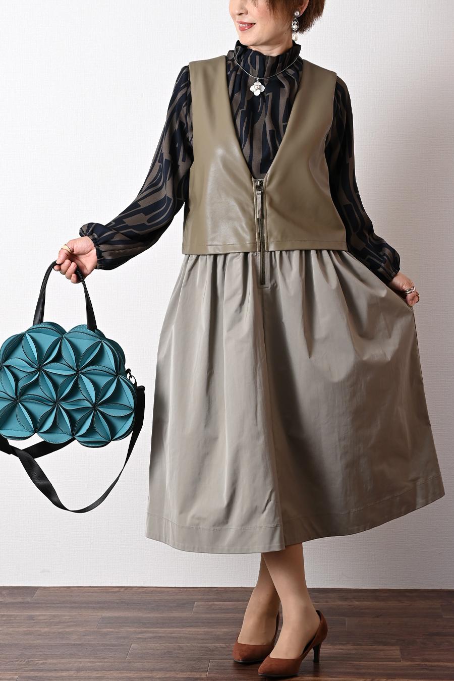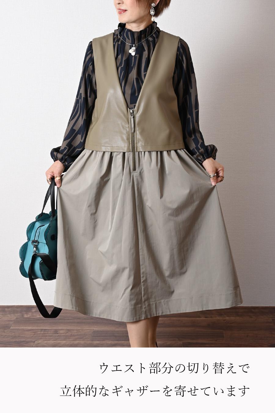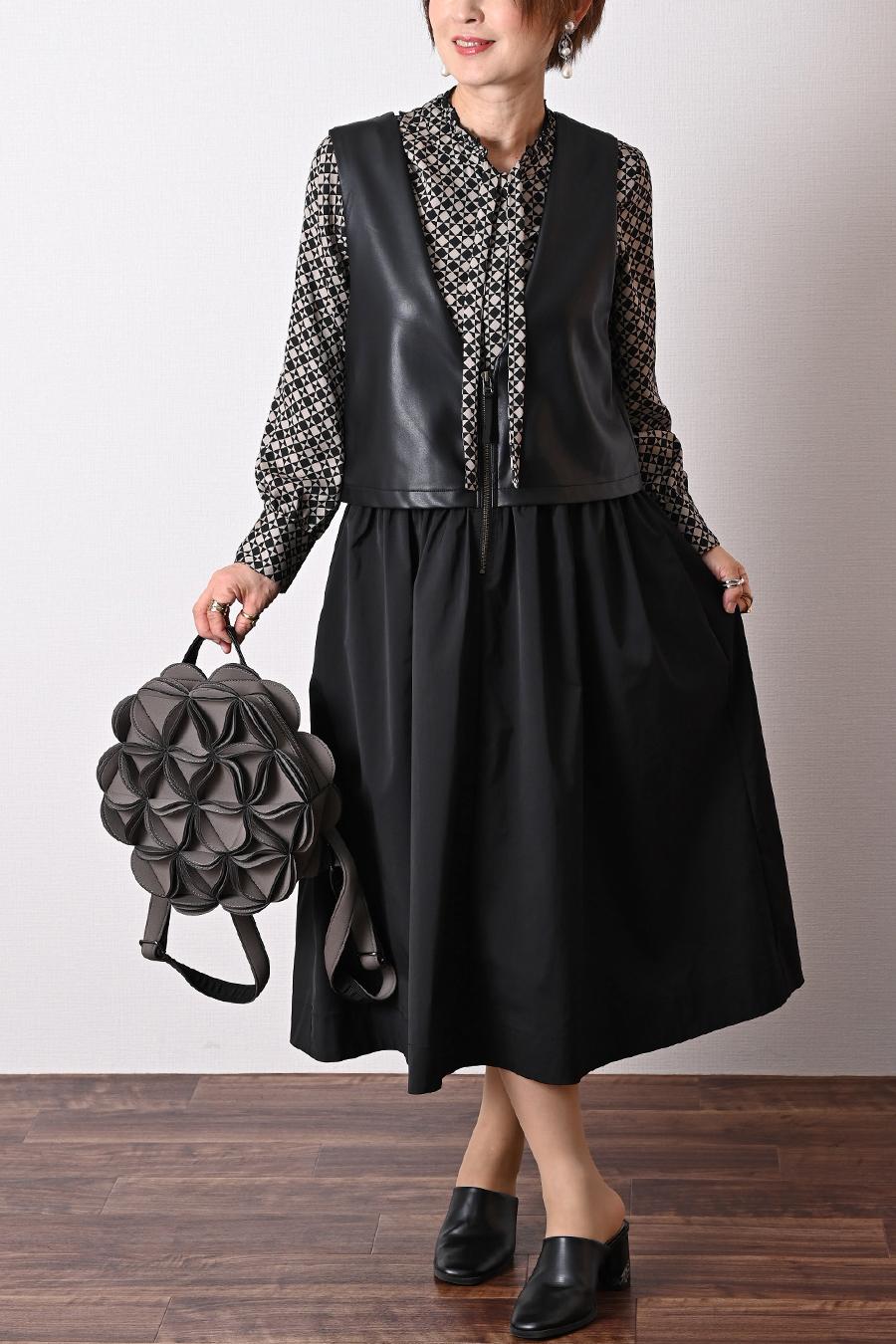 タックスリーブプルオーバー+軽量タック&ギャザー フレアスカート2点セットコーデ