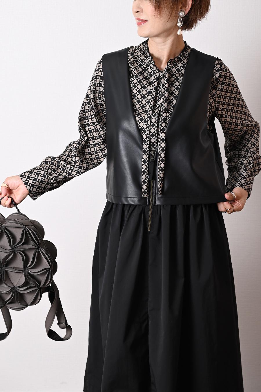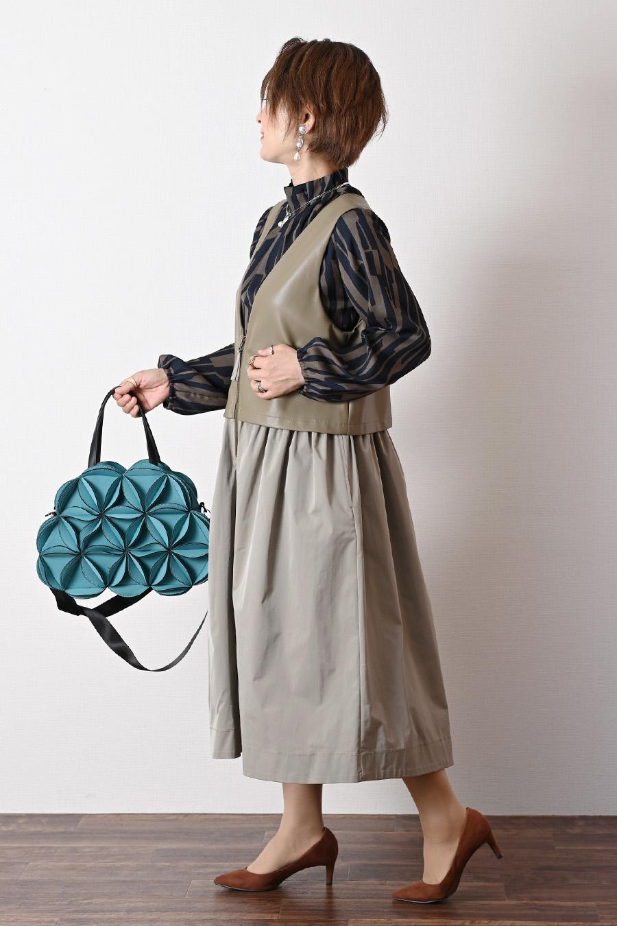 大人のバルーンブルゾン+先染めジャガード多色チェックスカート2点セットコーデ