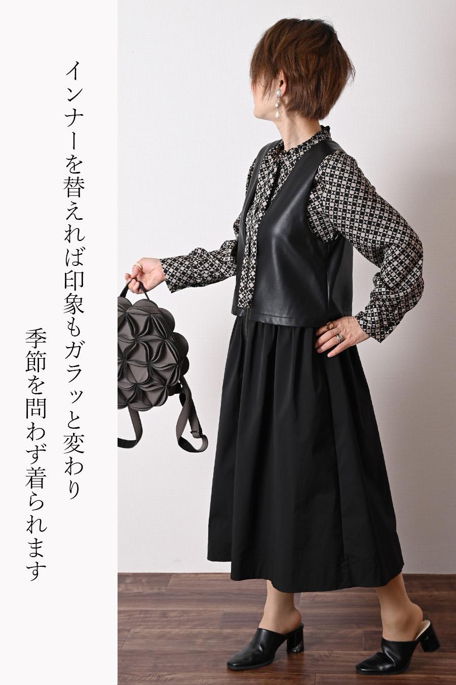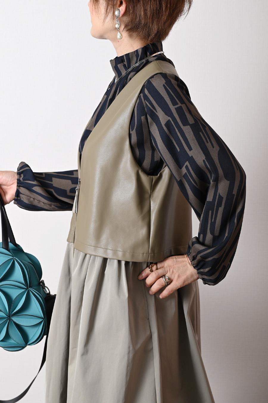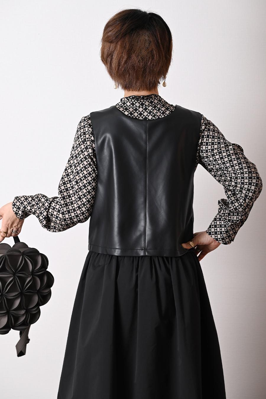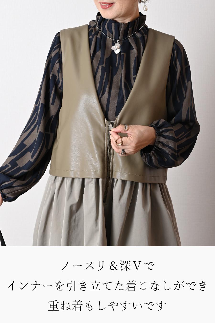 ファンシーヤーンVネックベスト+選べる2種類のインナーカットソー2点セットコーデ