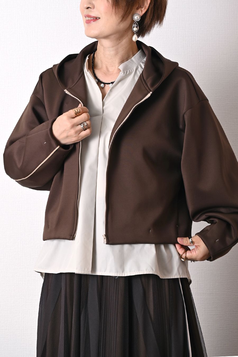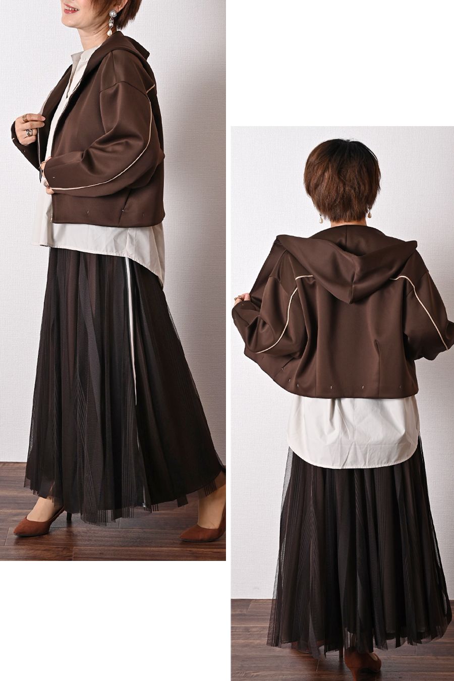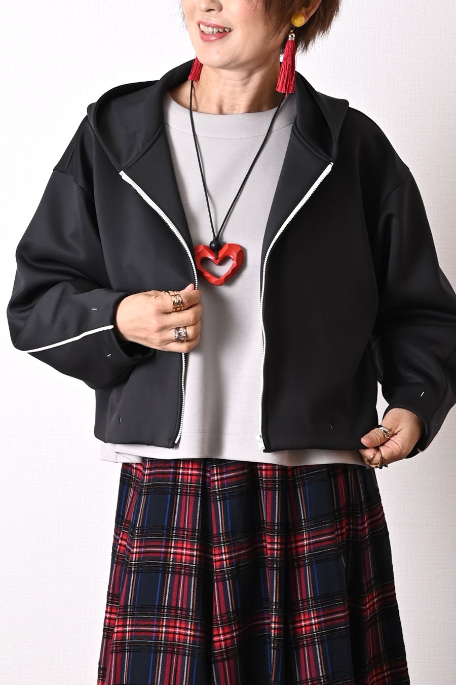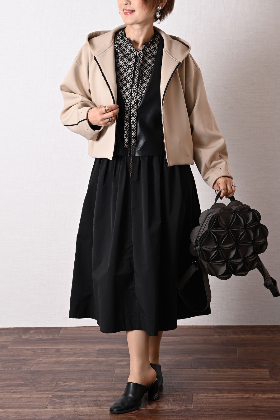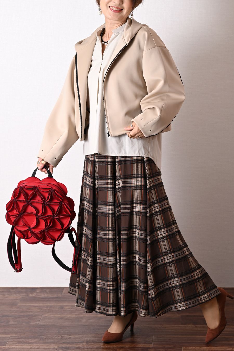 大人のバルーンブルゾン+先染めジャガード多色チェックスカート2点セットコーデ【10/3日以降発送予定】