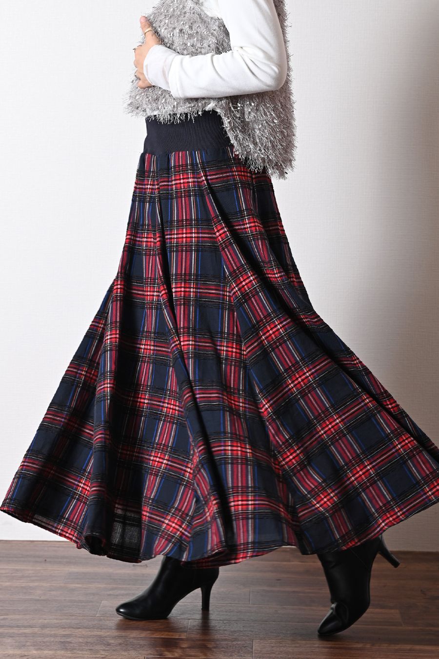 大人のバルーンブルゾン+先染めジャガード多色チェックスカート2点セットコーデ