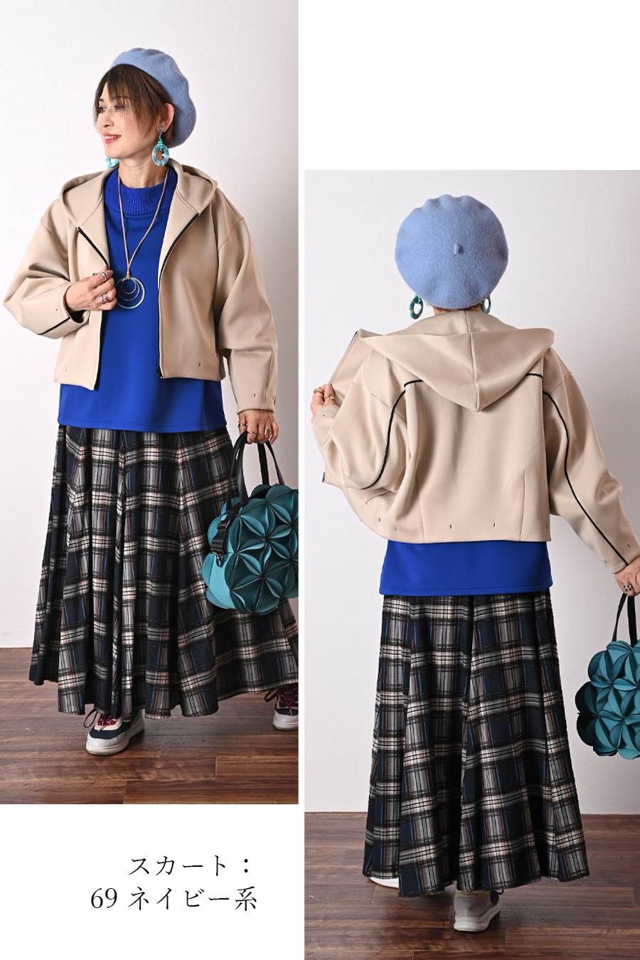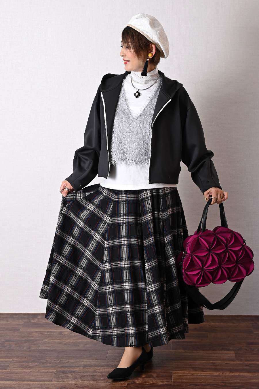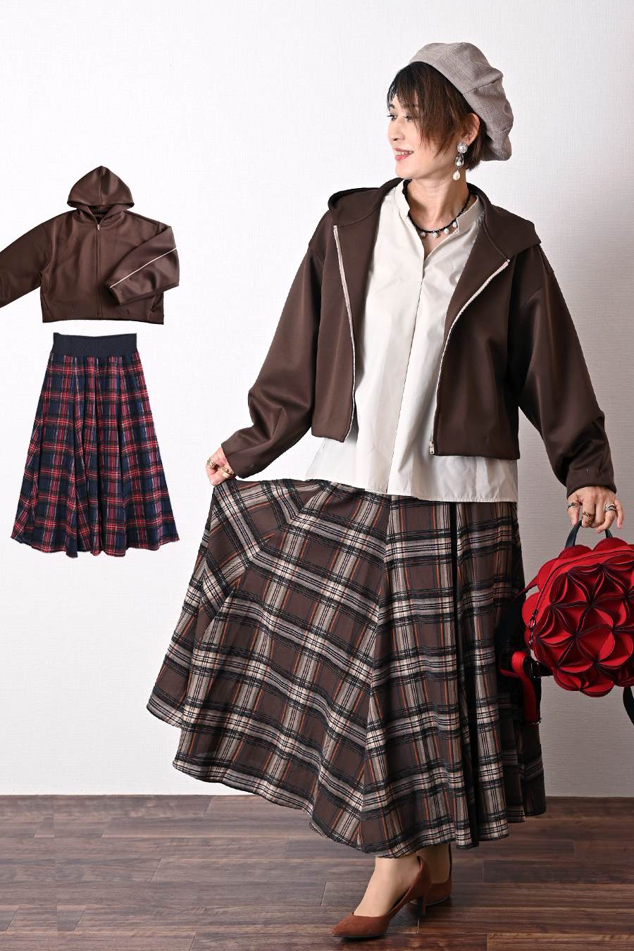 大人のバルーンブルゾン+先染めジャガード多色チェックスカート2点セットコーデ【10/3日以降発送予定】