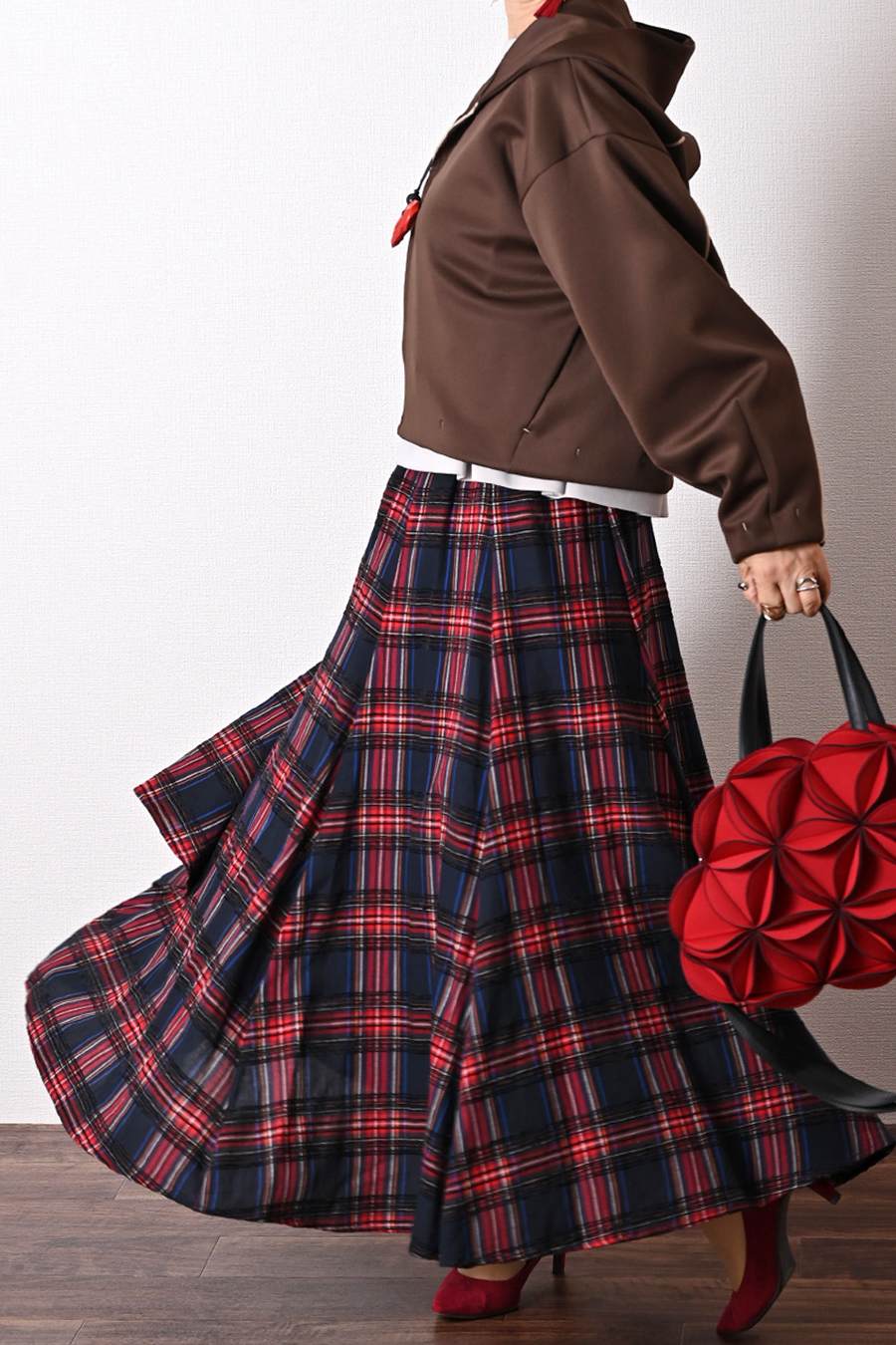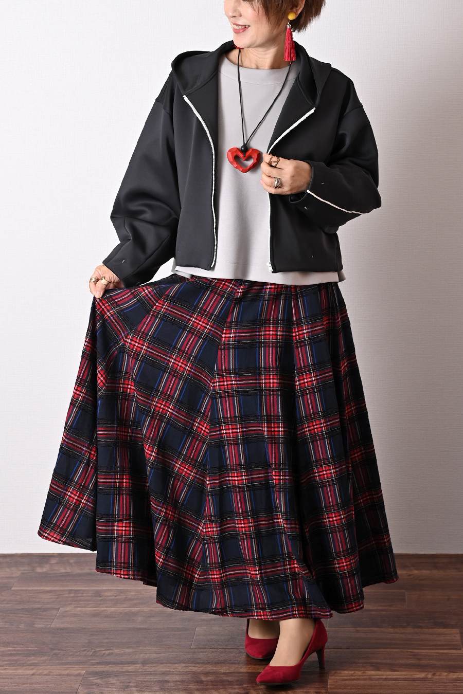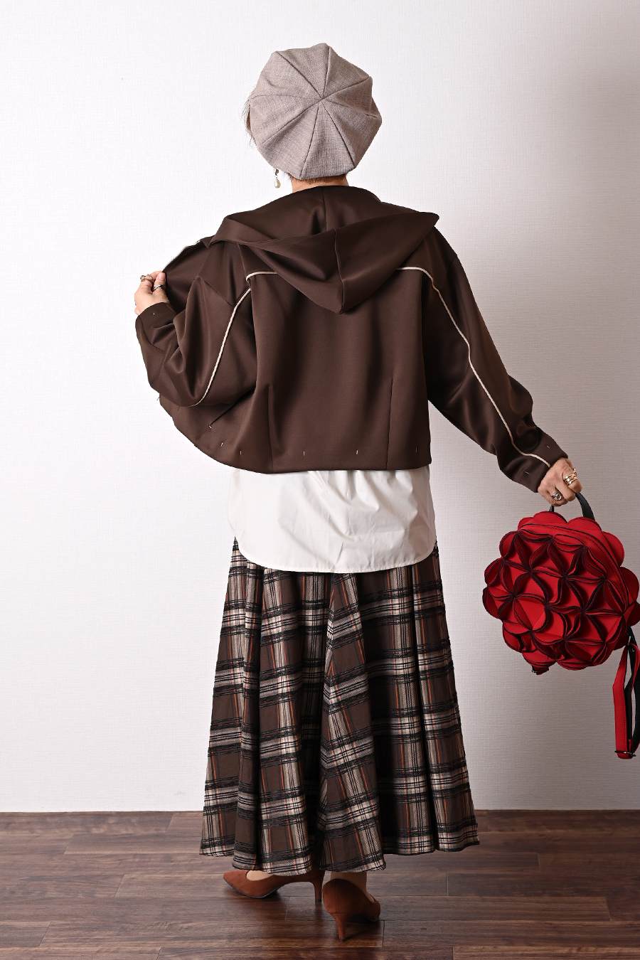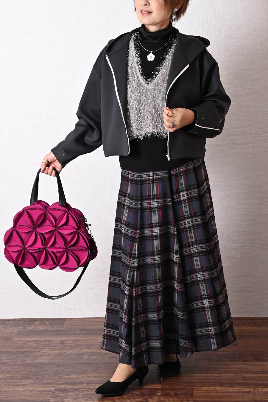 大人のバルーンブルゾン+先染めジャガード多色チェックスカート2点セットコーデ【10/3日以降発送予定】
