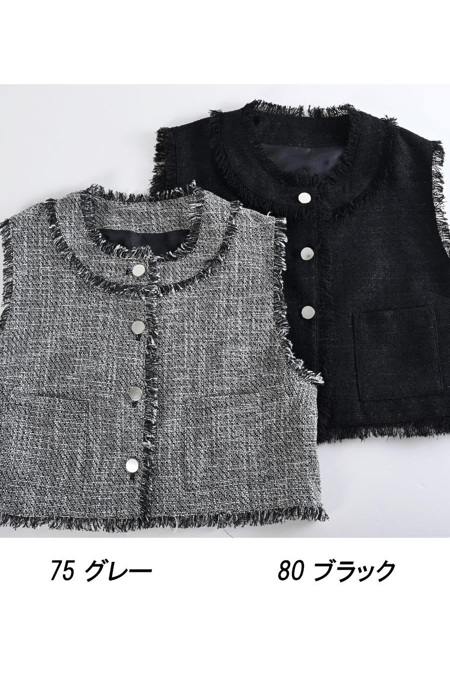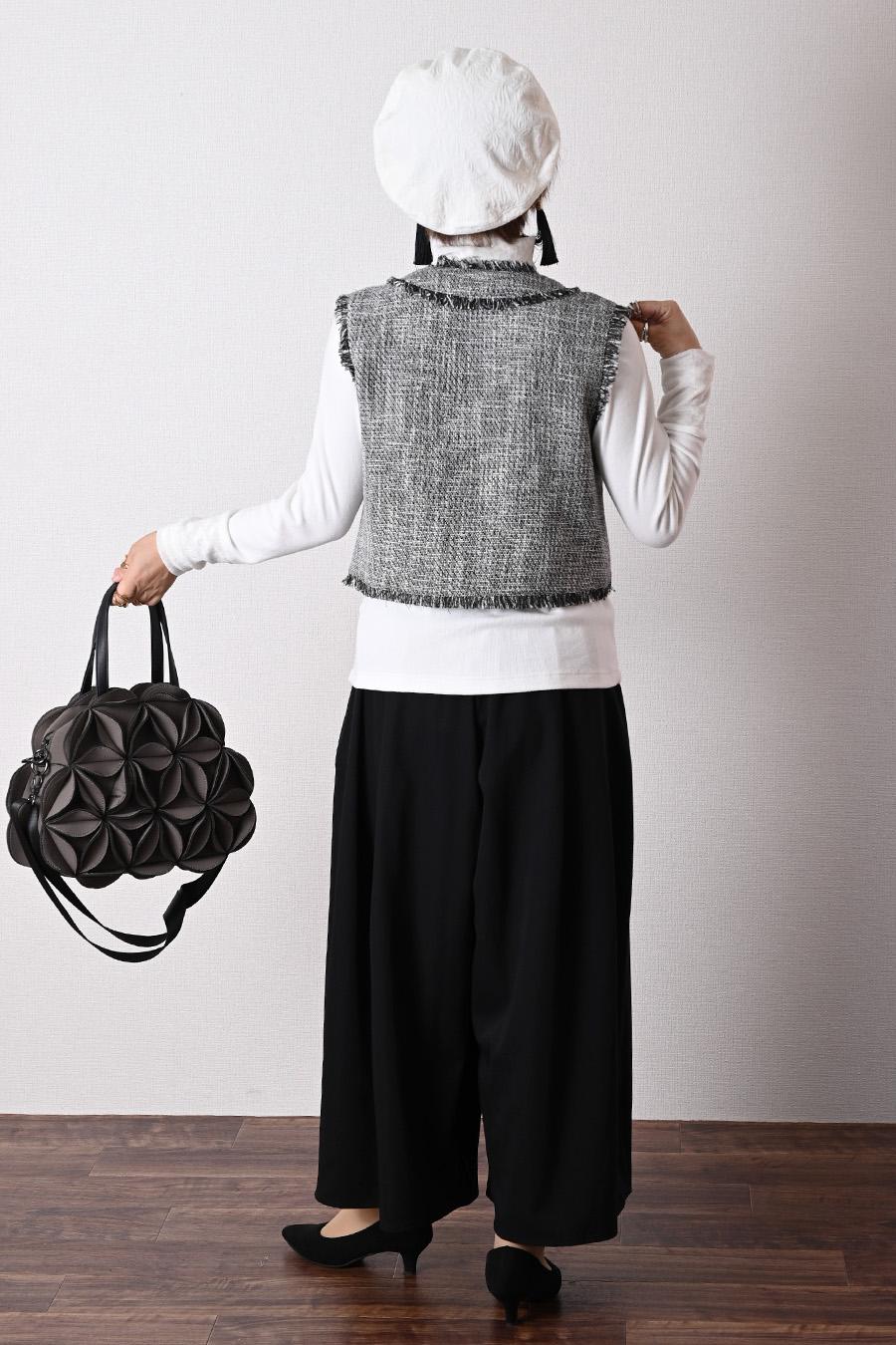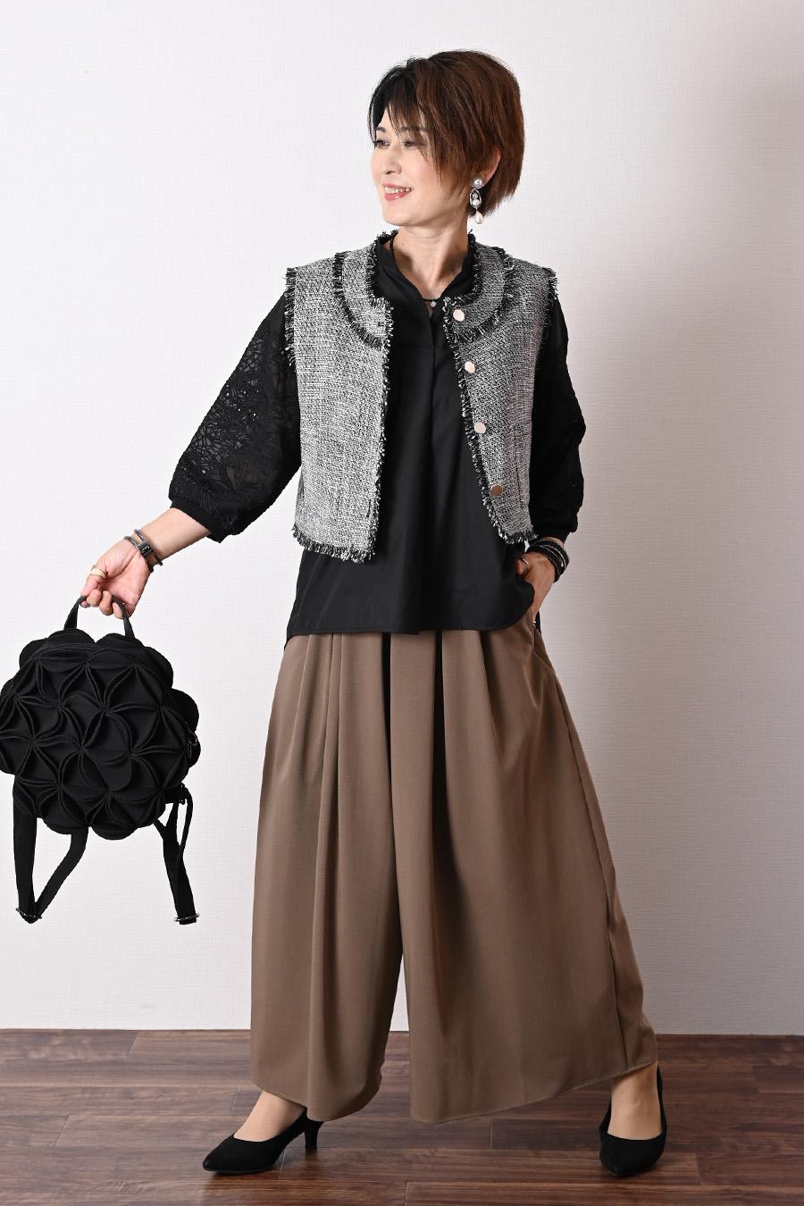 フリンジツィード ショートベスト+超美ドレープ 微起毛ワイドガウチョパンツ2点セットコーデ