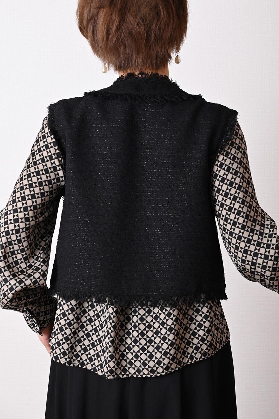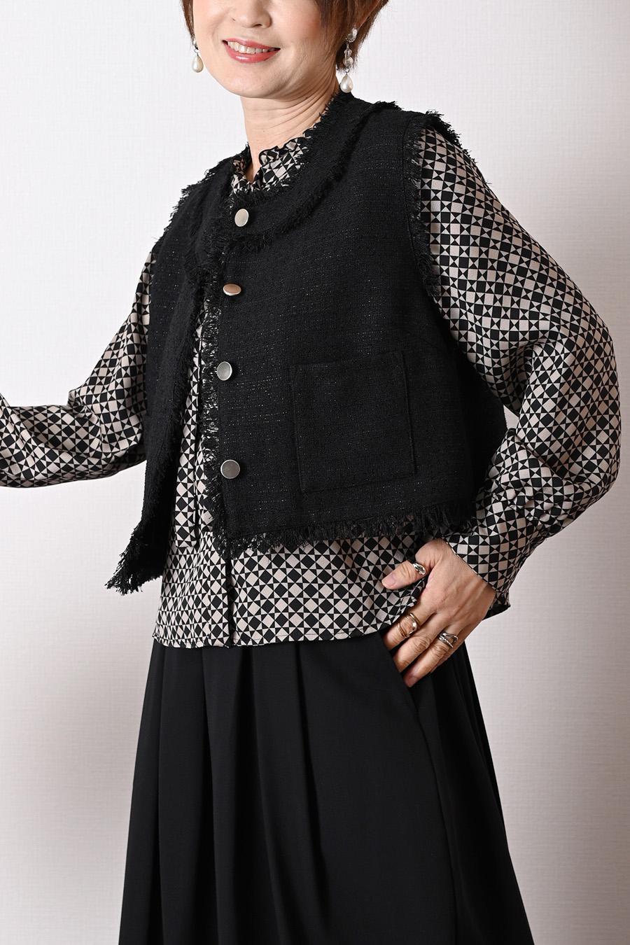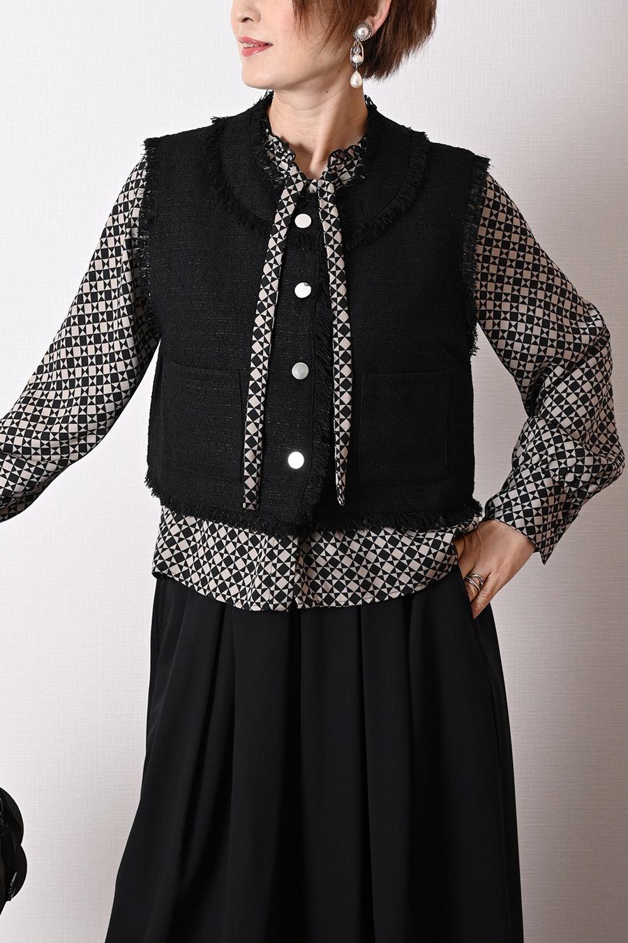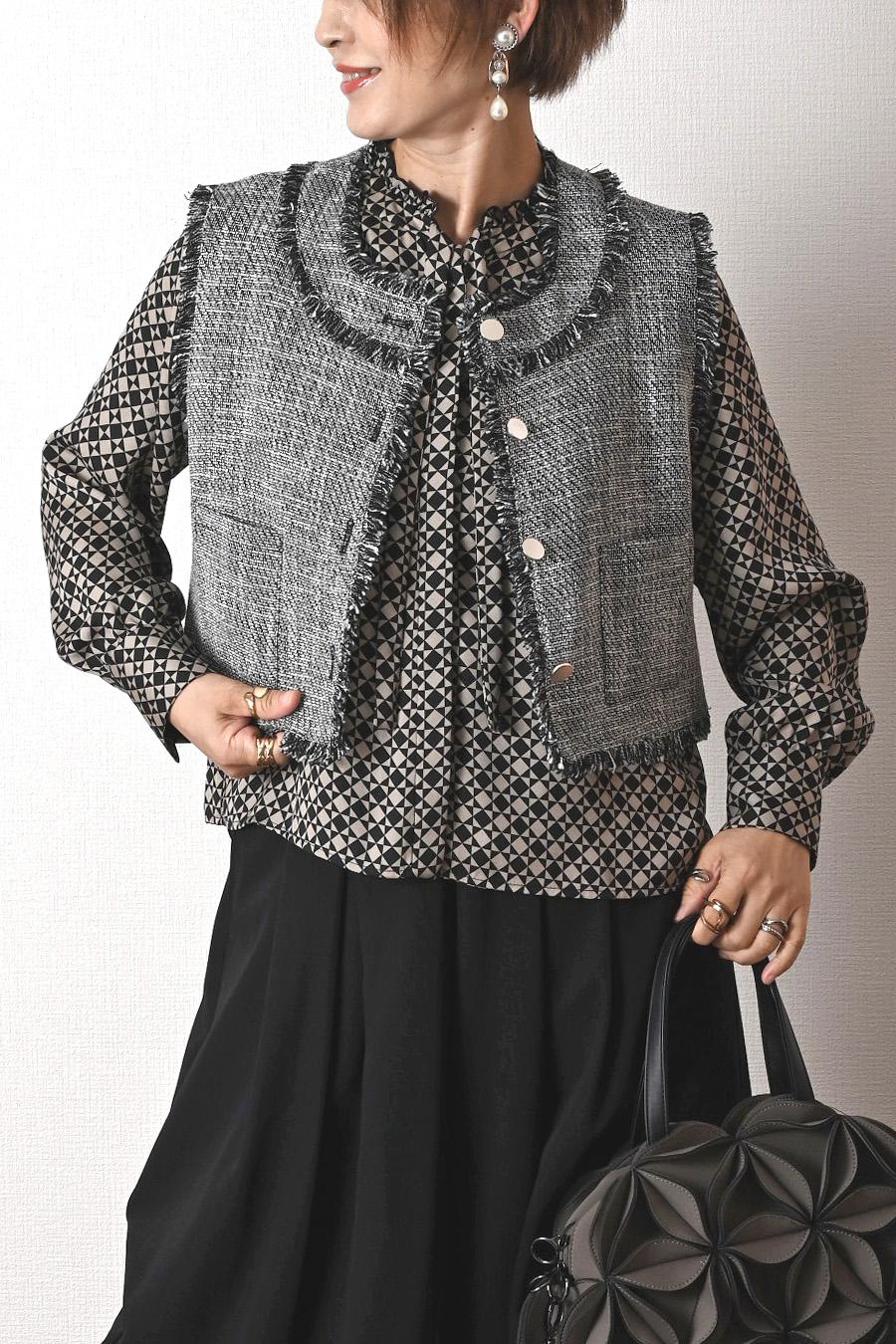 フリンジツィード ショートベスト+超美ドレープ 微起毛ワイドガウチョパンツ2点セットコーデ