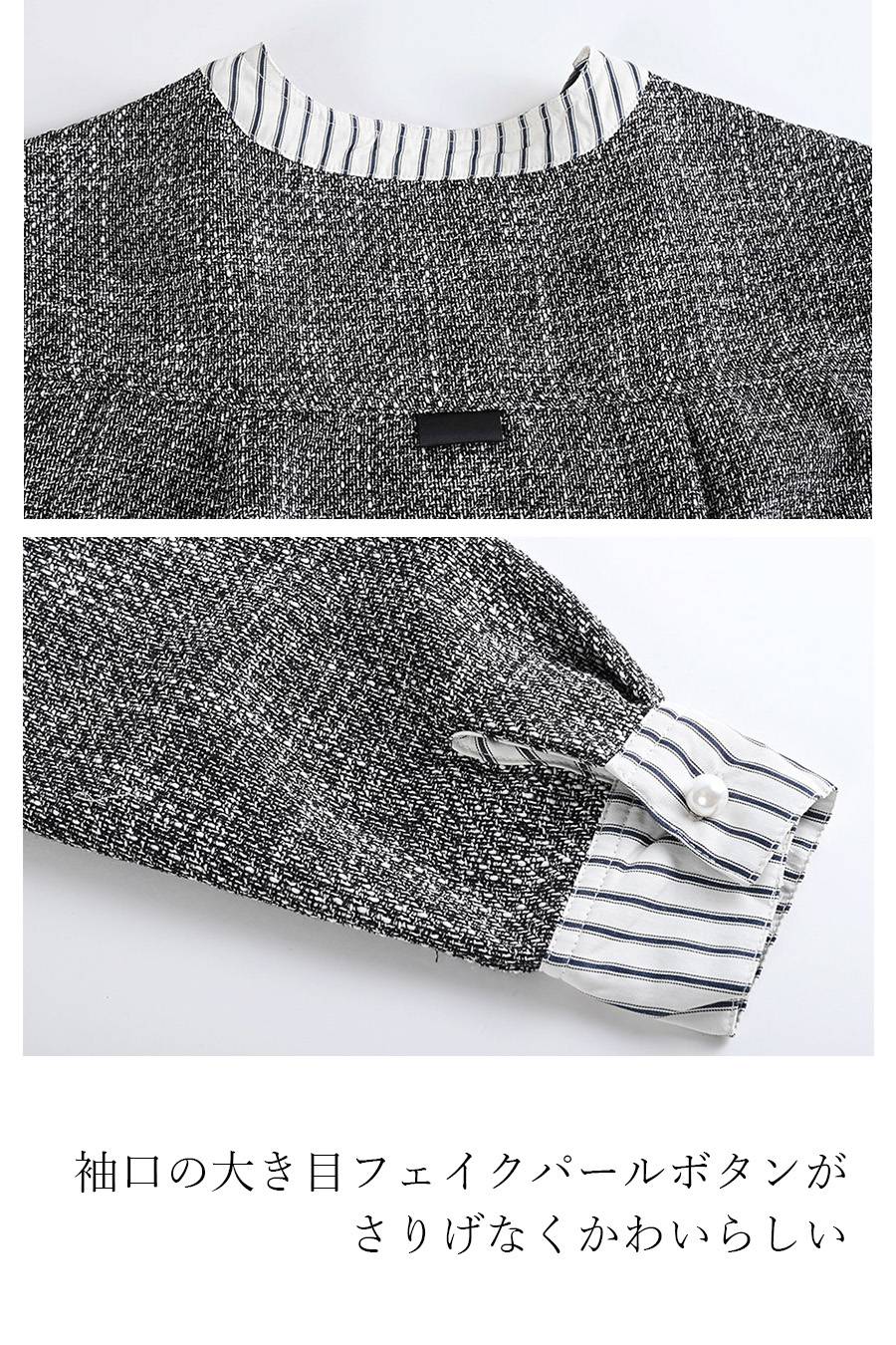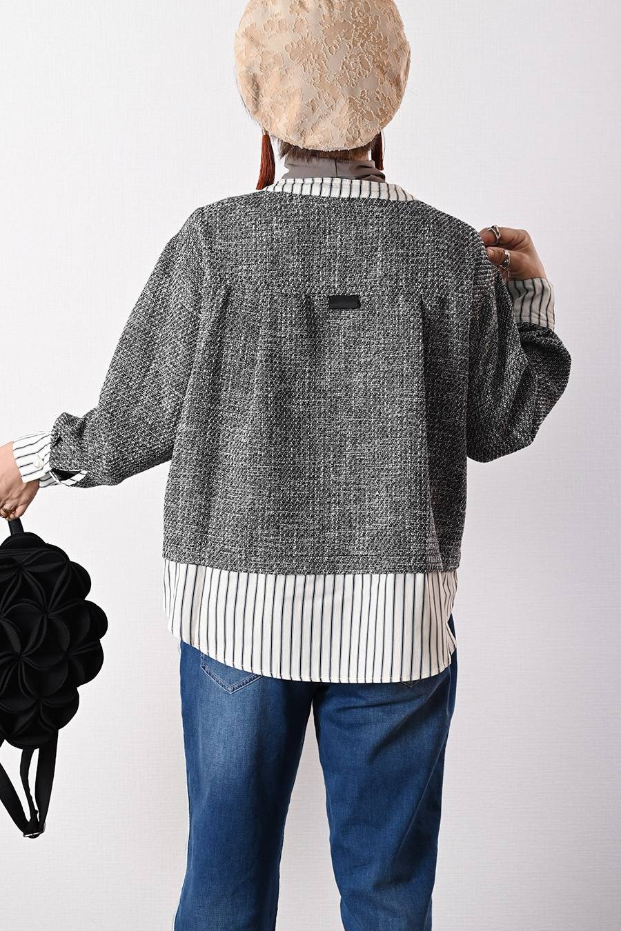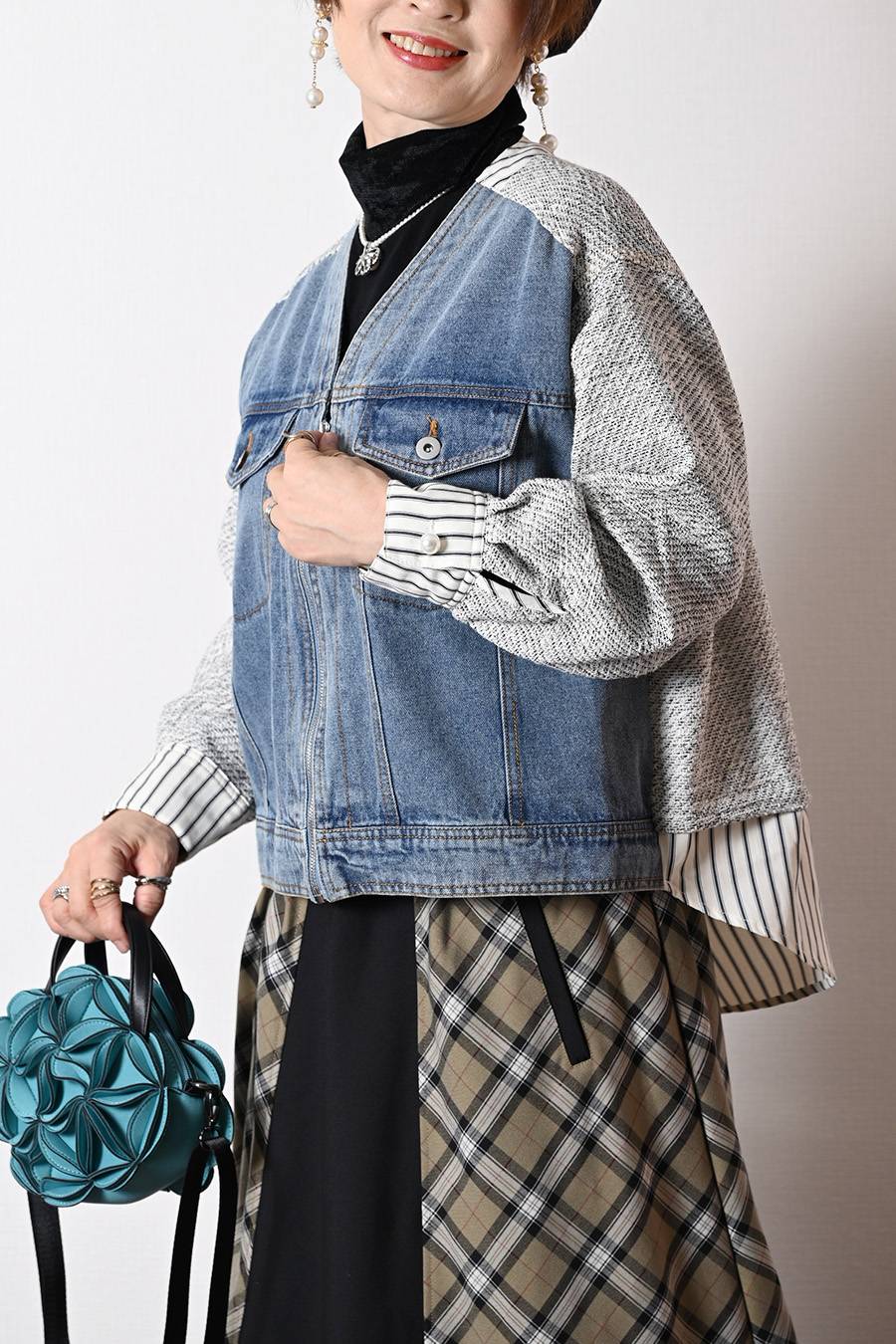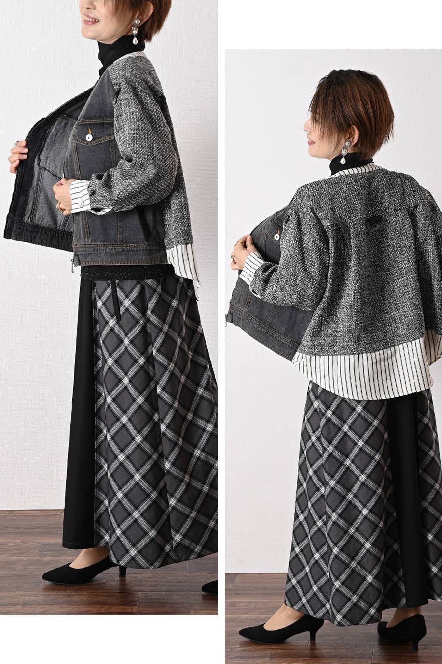 ソフトポンチ×タフタ切り替えジャケット+ジャガード多色チェックスカート2点セットコーデ