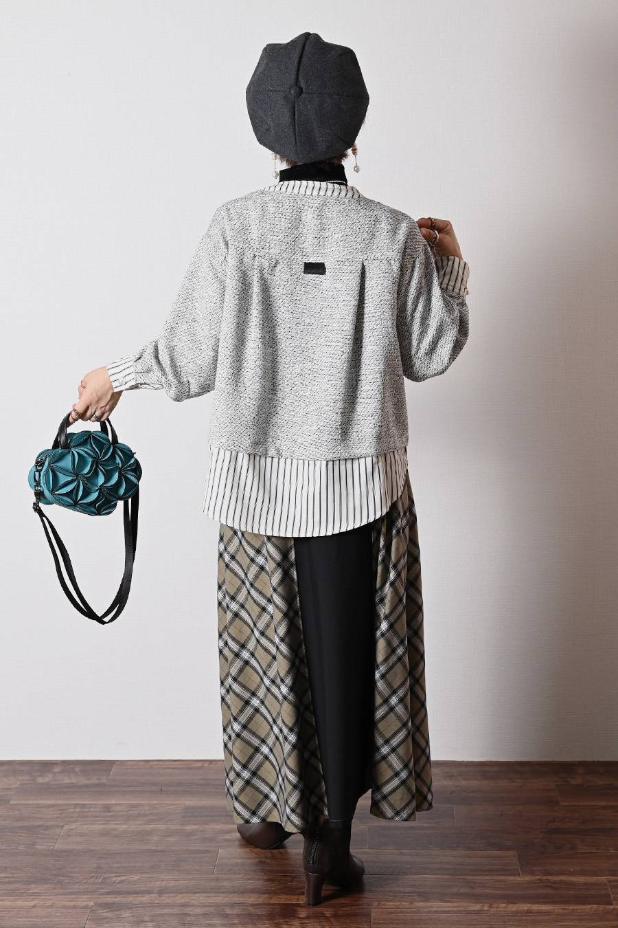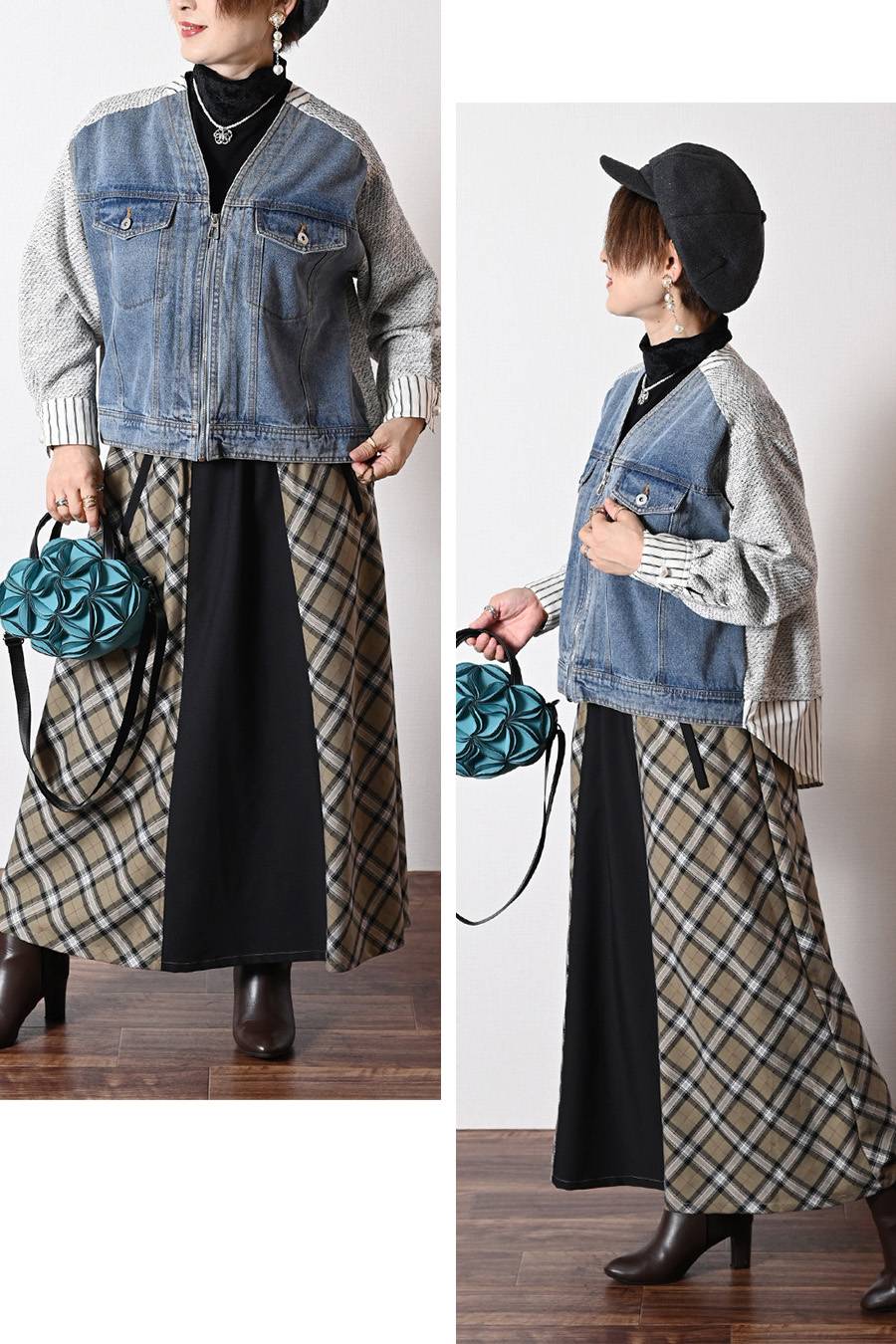 大人のバルーンブルゾン+先染めジャガード多色チェックスカート2点セットコーデ