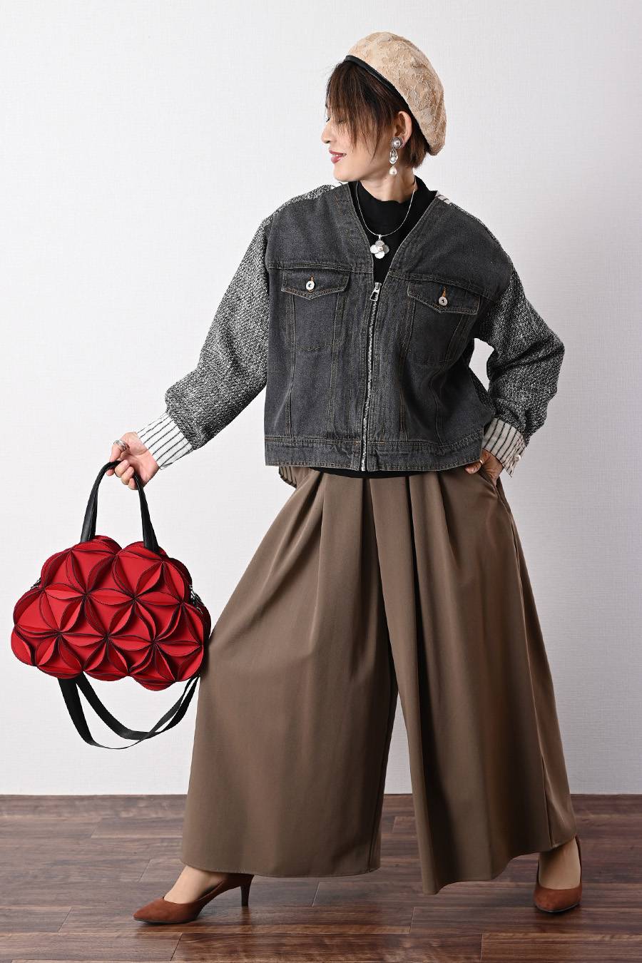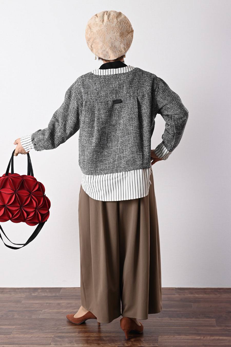 フリンジツィード ショートベスト+超美ドレープ 微起毛ワイドガウチョパンツ2点セットコーデ
