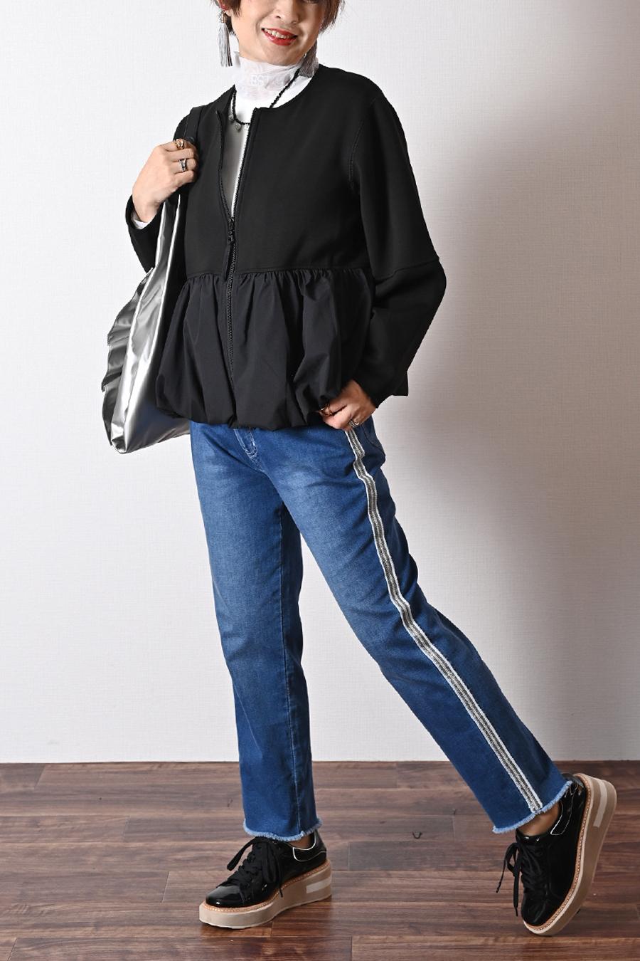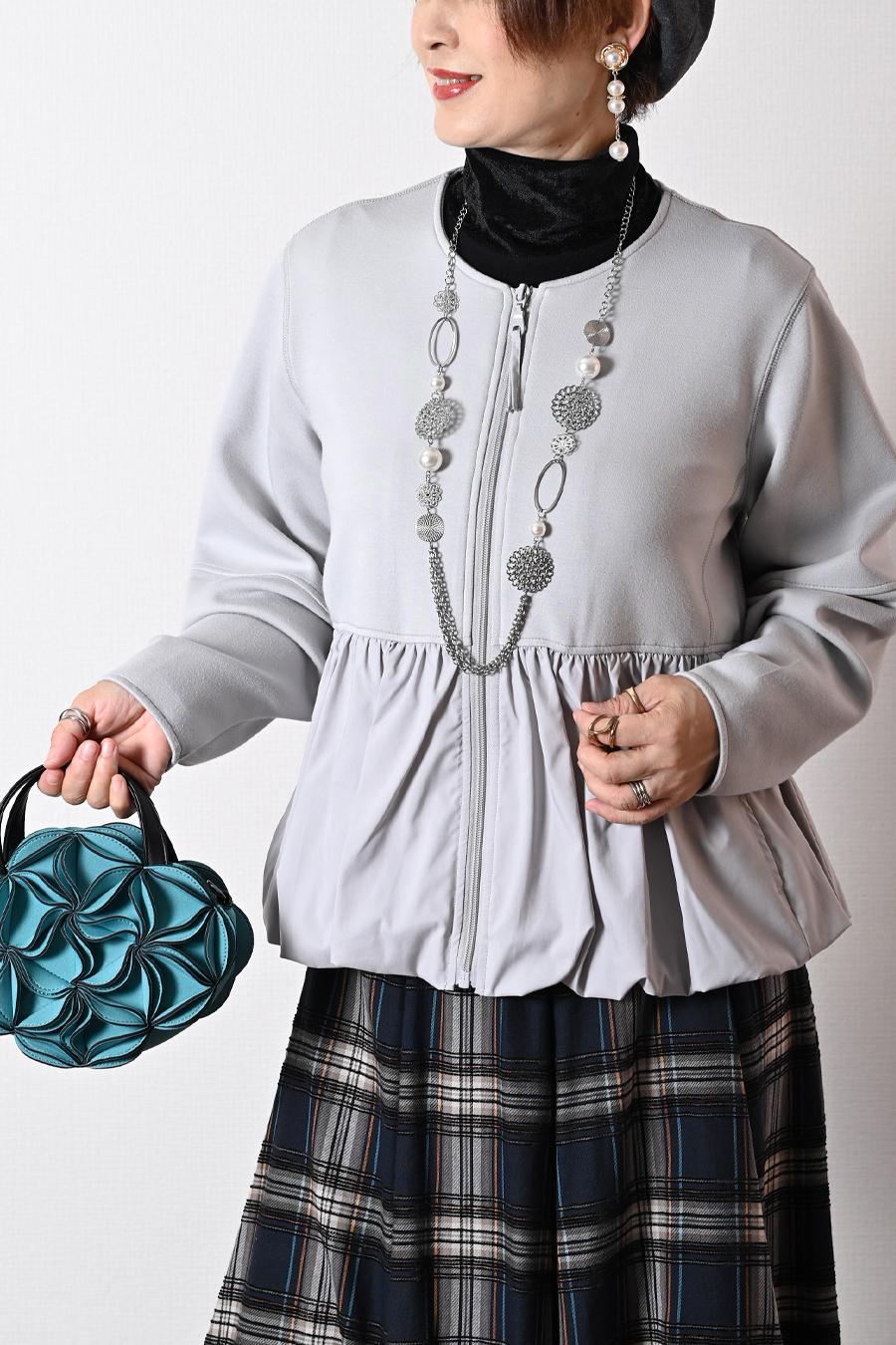 華やかバルーンデザイン!ソフトポンチ×タフタ切り替えジャケット
