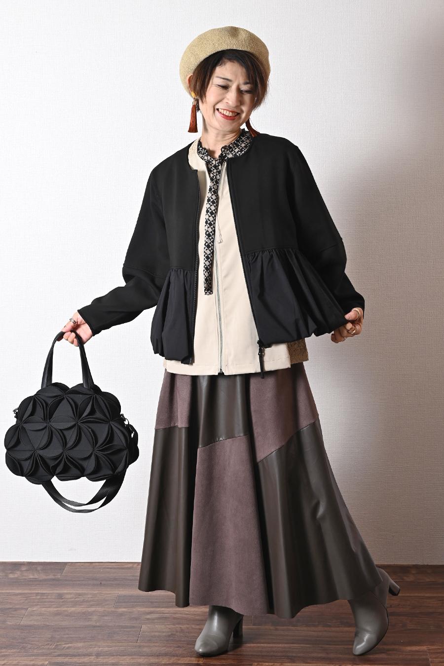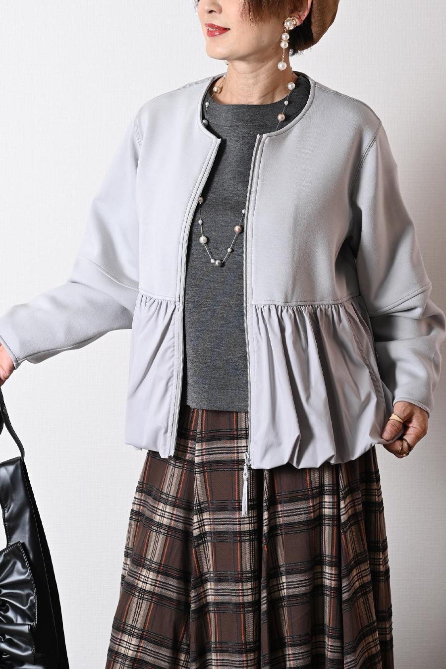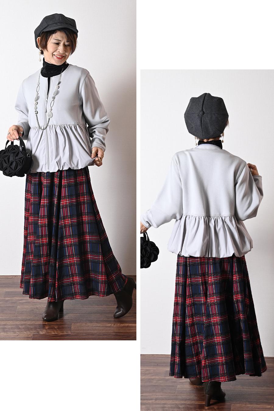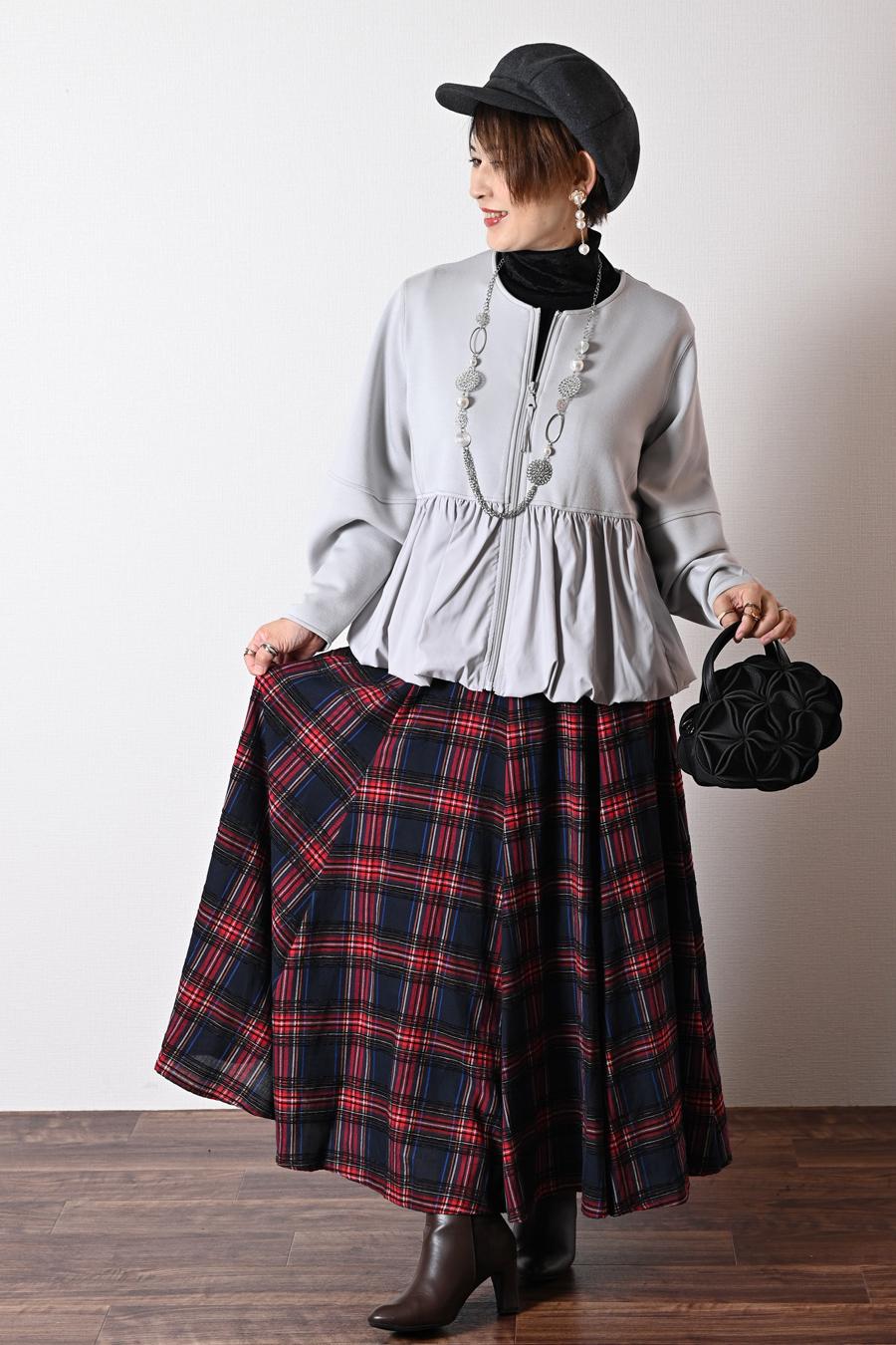 大人のバルーンブルゾン+先染めジャガード多色チェックスカート2点セットコーデ