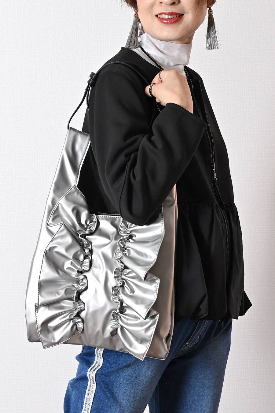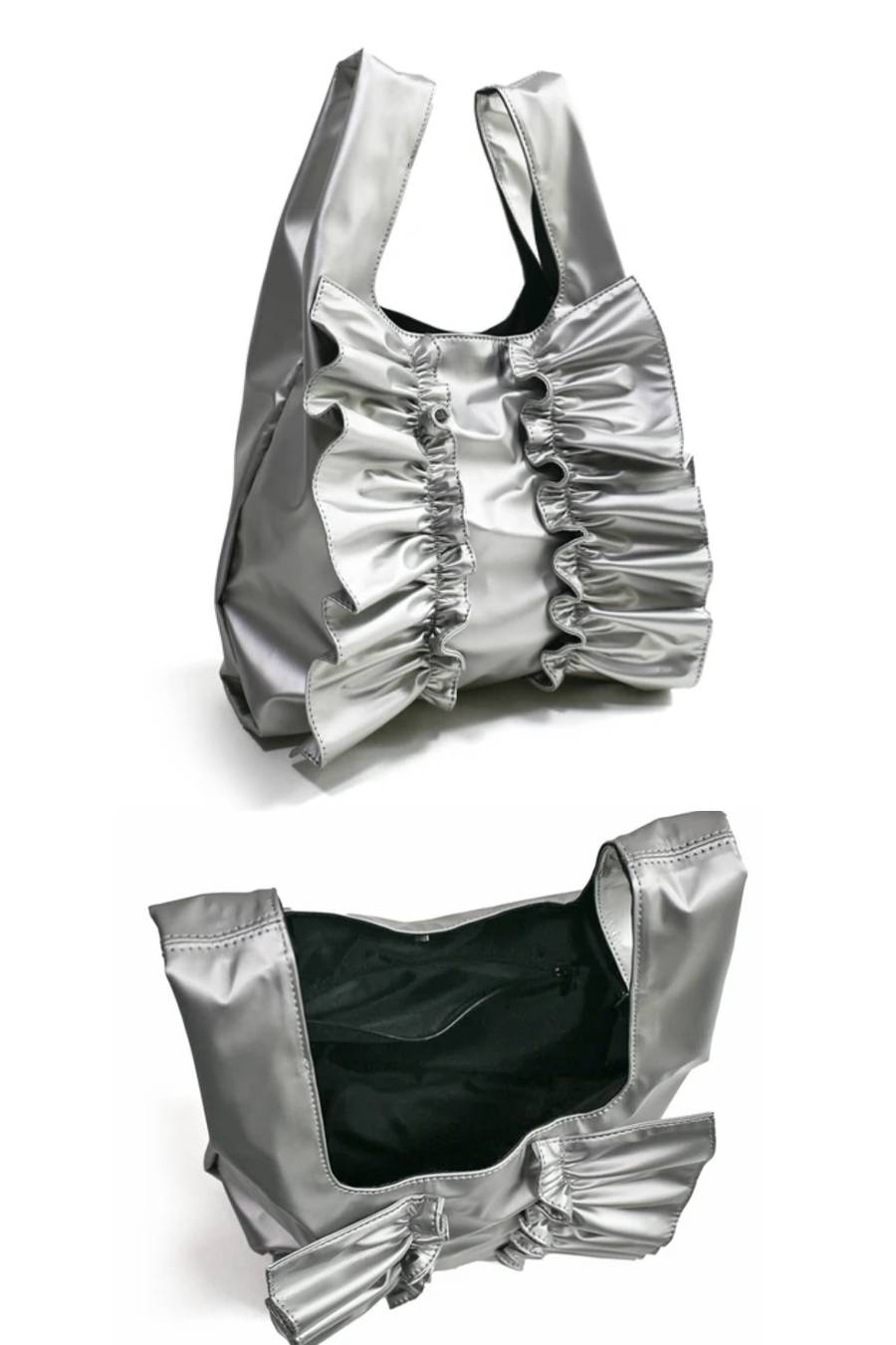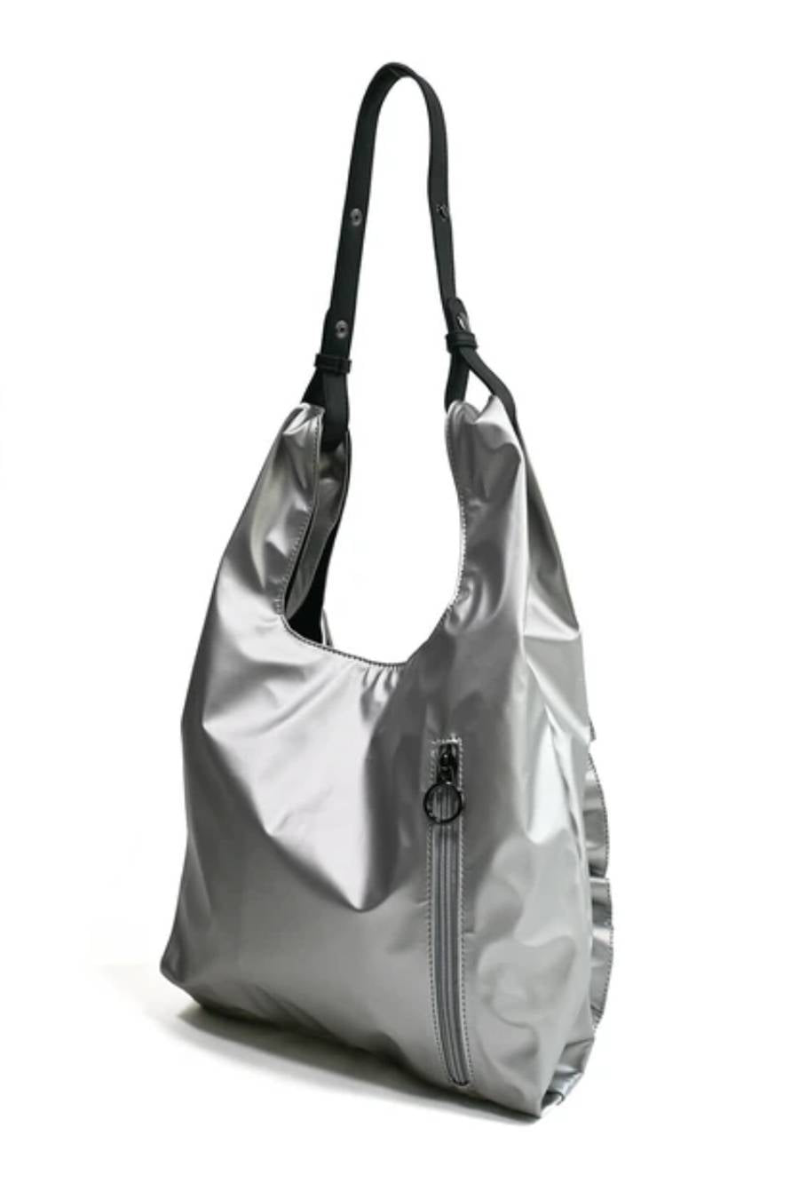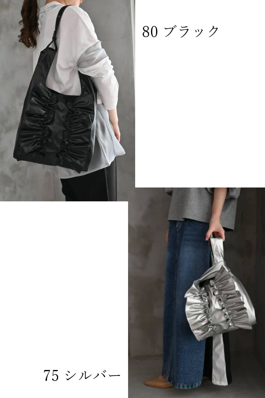 超軽量!撥水!コーティング加工された生地を本体に使用し、フェミニンなフリルデザインを取り入れた大き過ぎないサイズ感のバッグです。