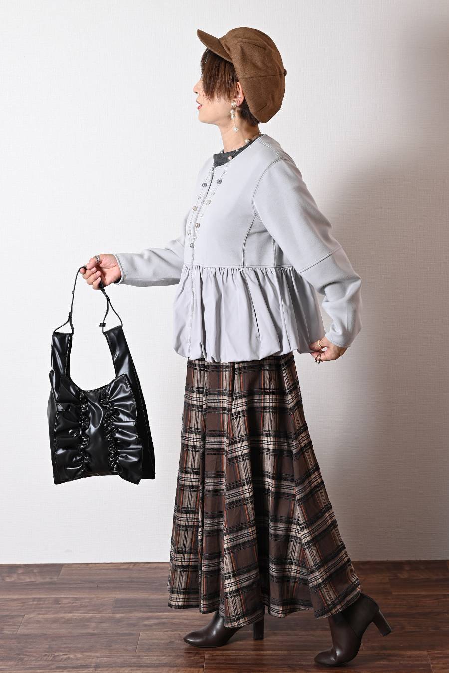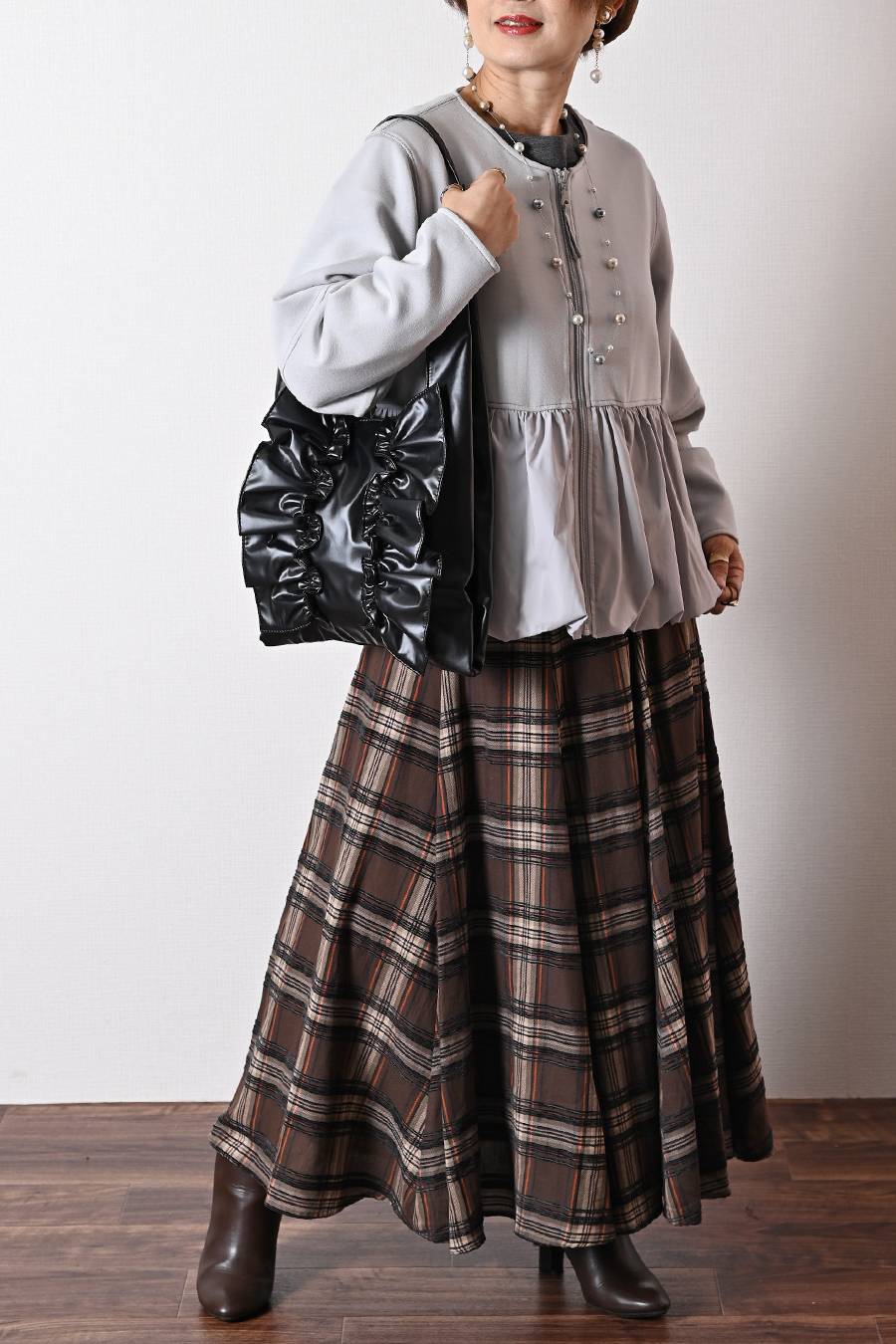 大人のバルーンブルゾン+先染めジャガード多色チェックスカート2点セットコーデ