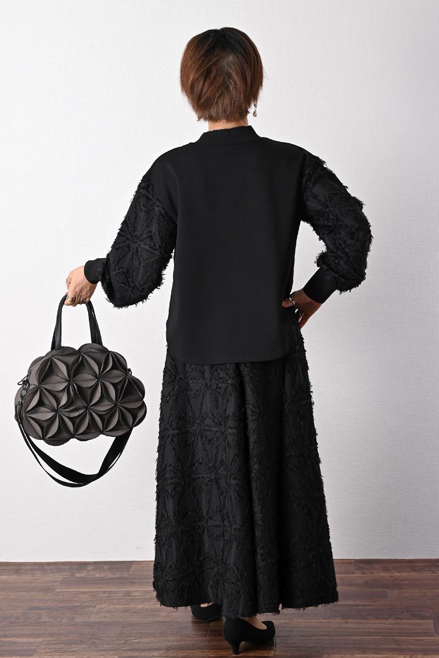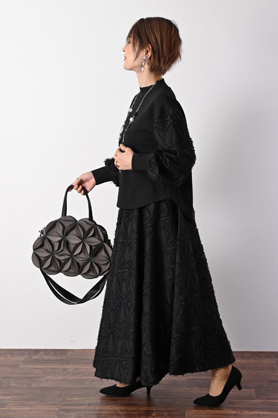 ポンチ&カットジャガードプルオーバー+カットジャガードフレアスカート2点セットコーデ