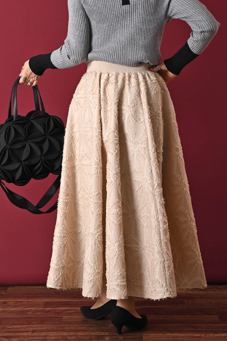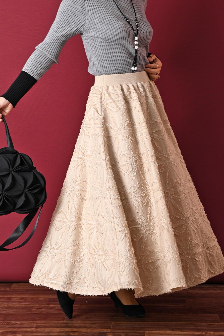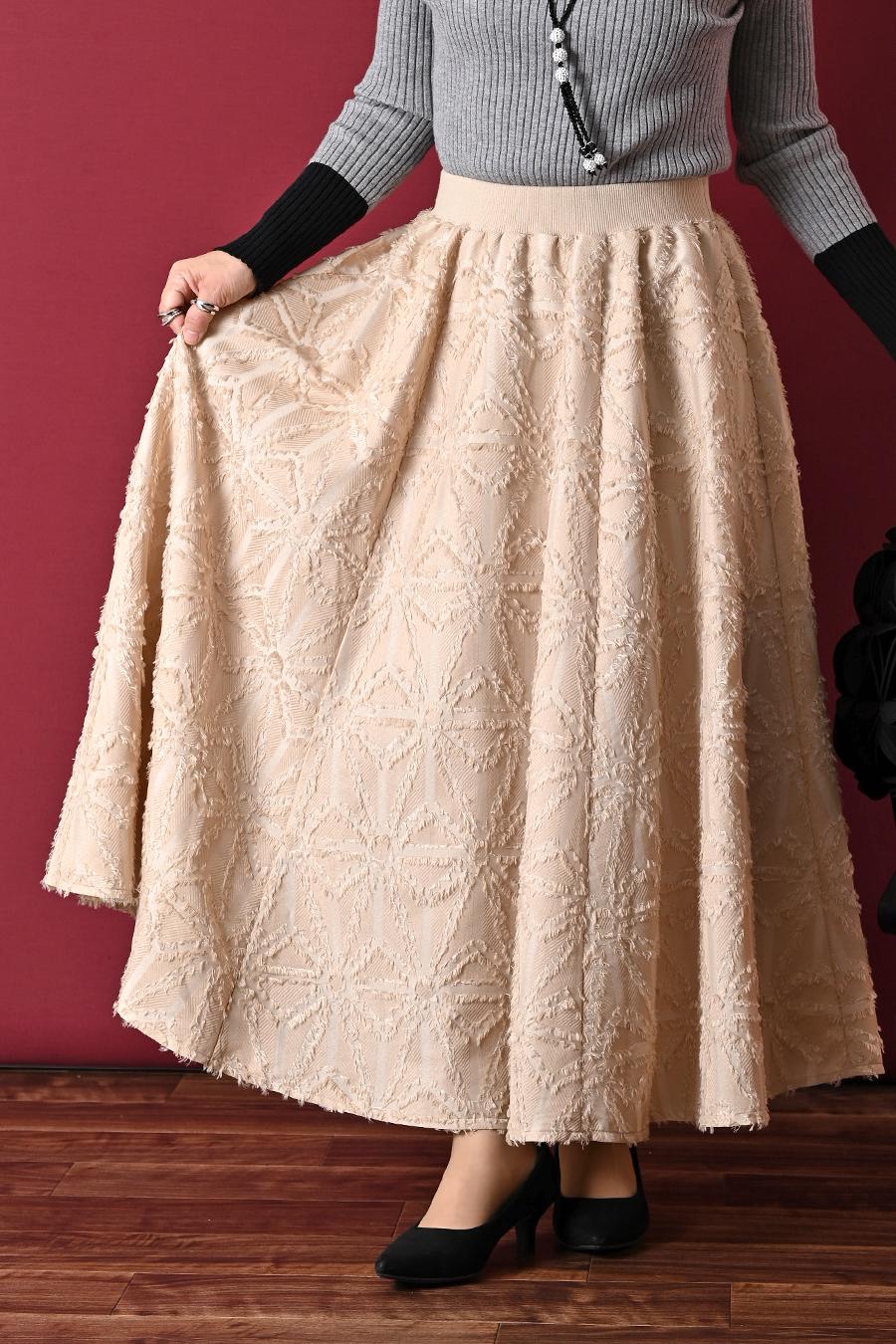ポンチ&カットジャガードプルオーバー+カットジャガードフレアスカート2点セットコーデ