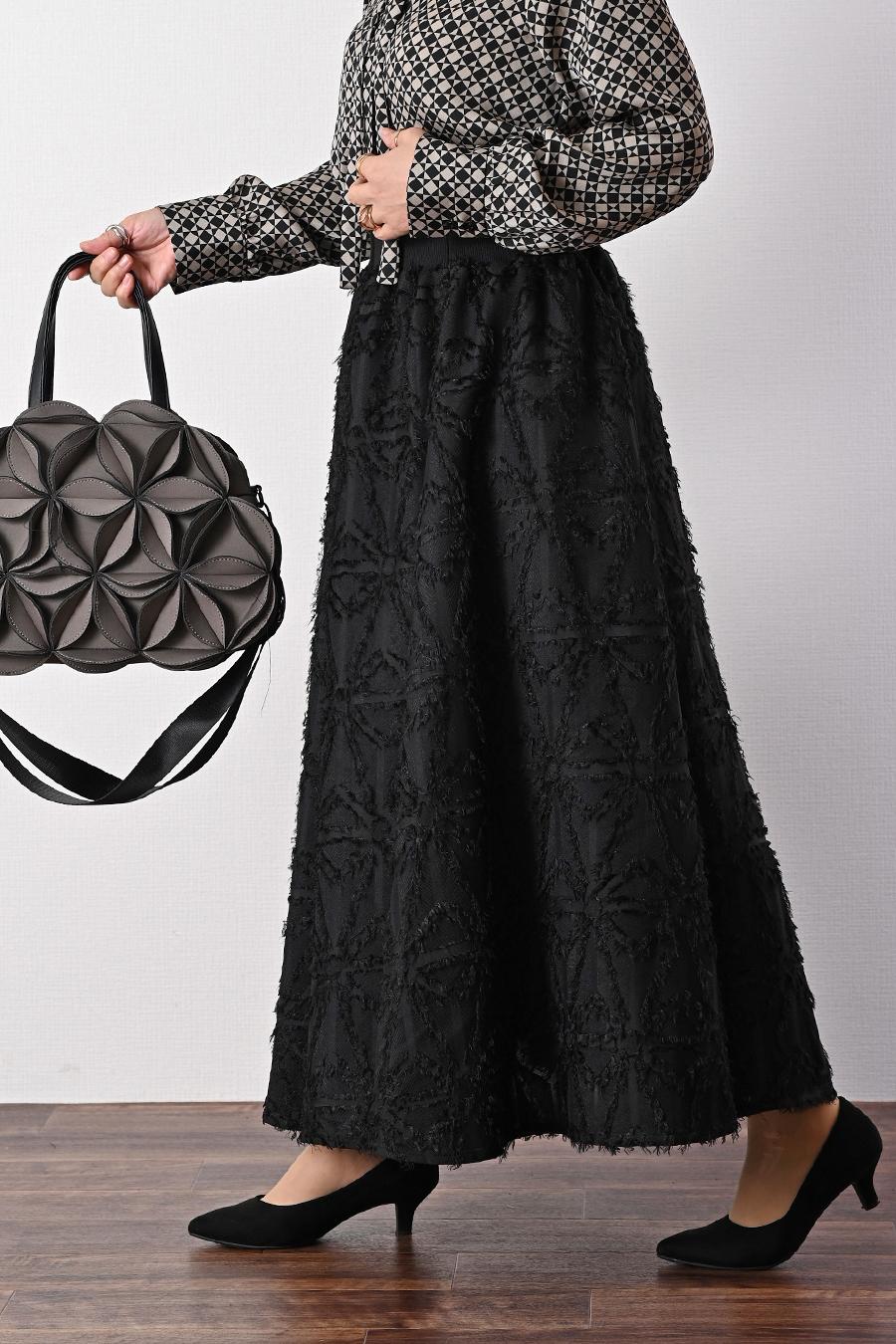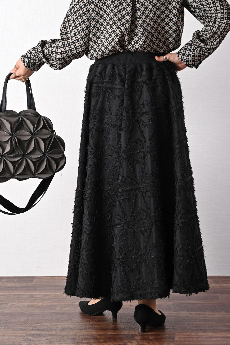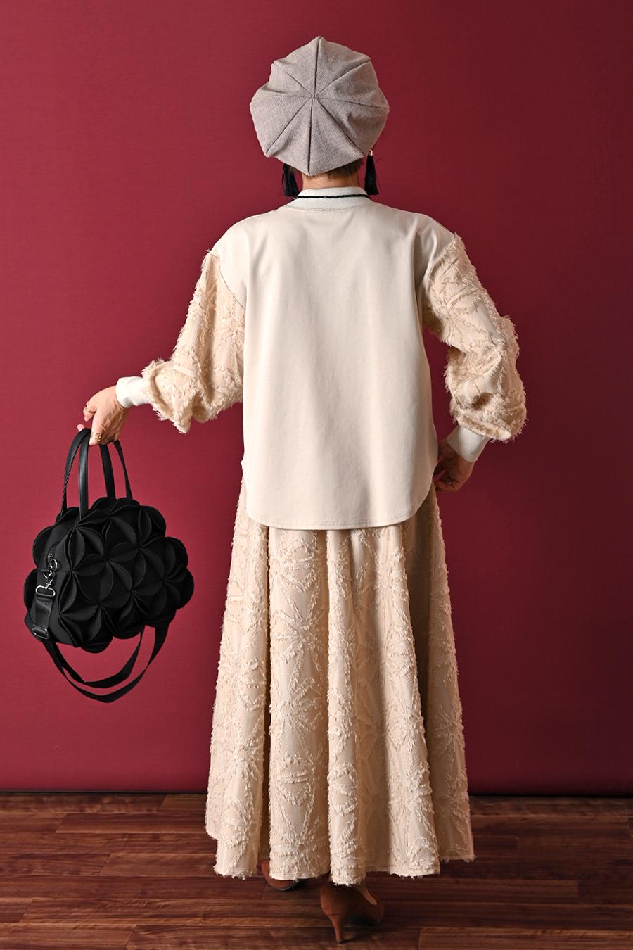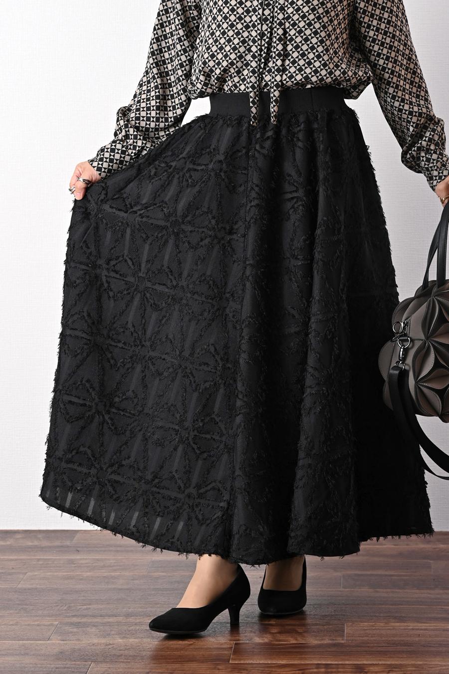 ポンチ&カットジャガードプルオーバー+カットジャガードフレアスカート2点セットコーデ