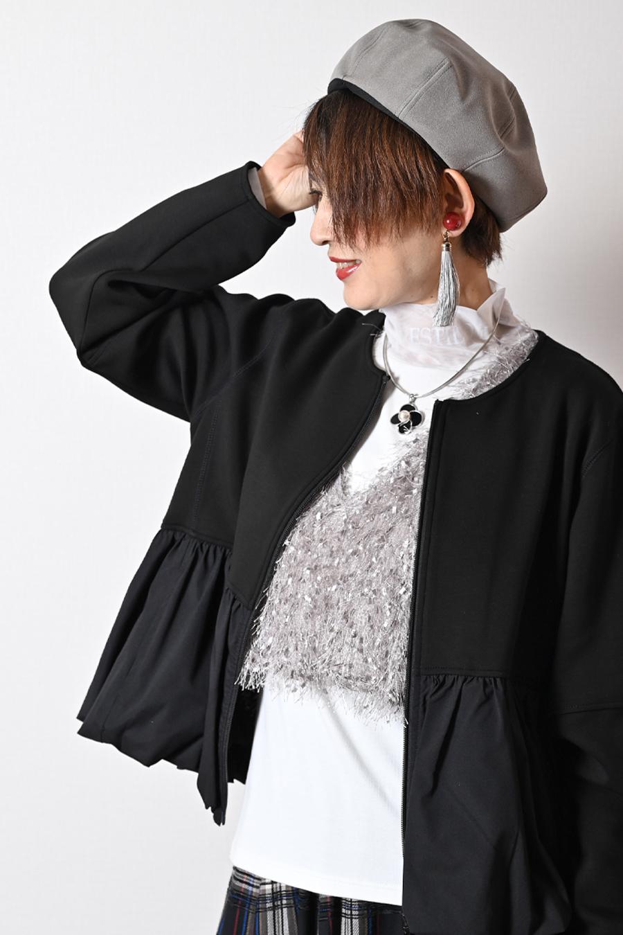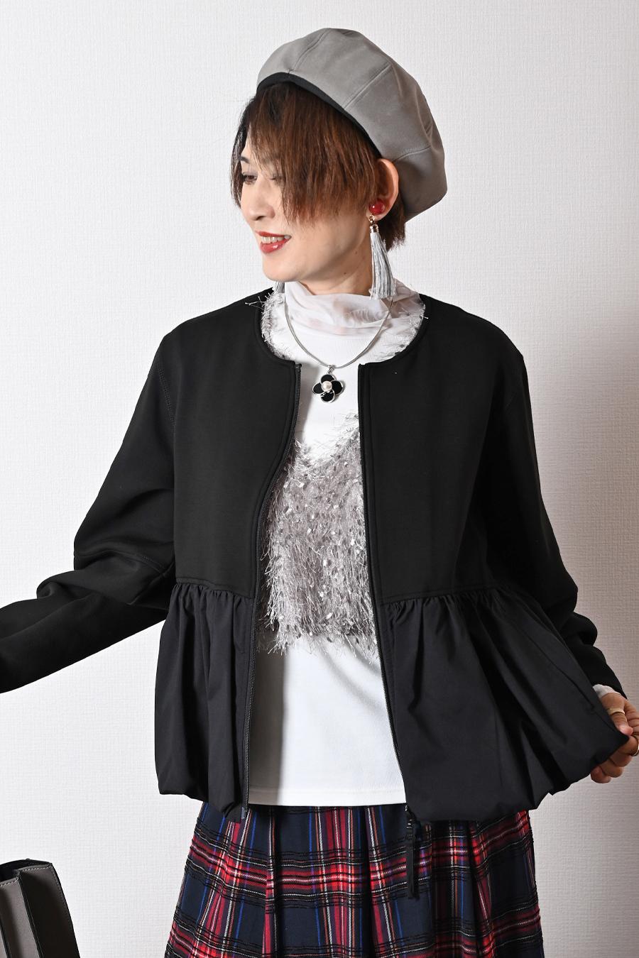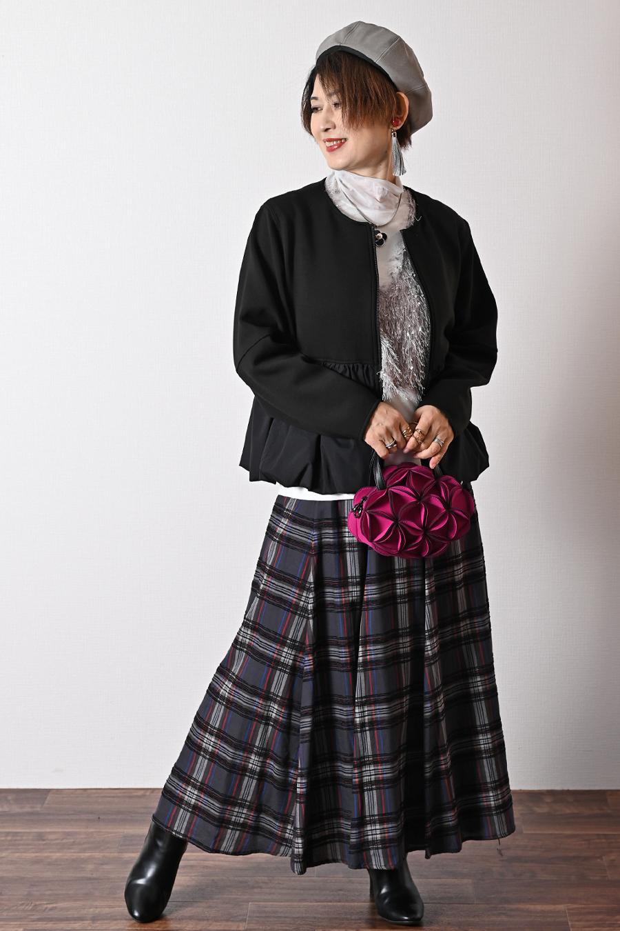 大人のバルーンブルゾン+先染めジャガード多色チェックスカート2点セットコーデ