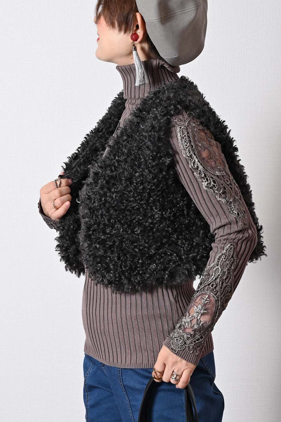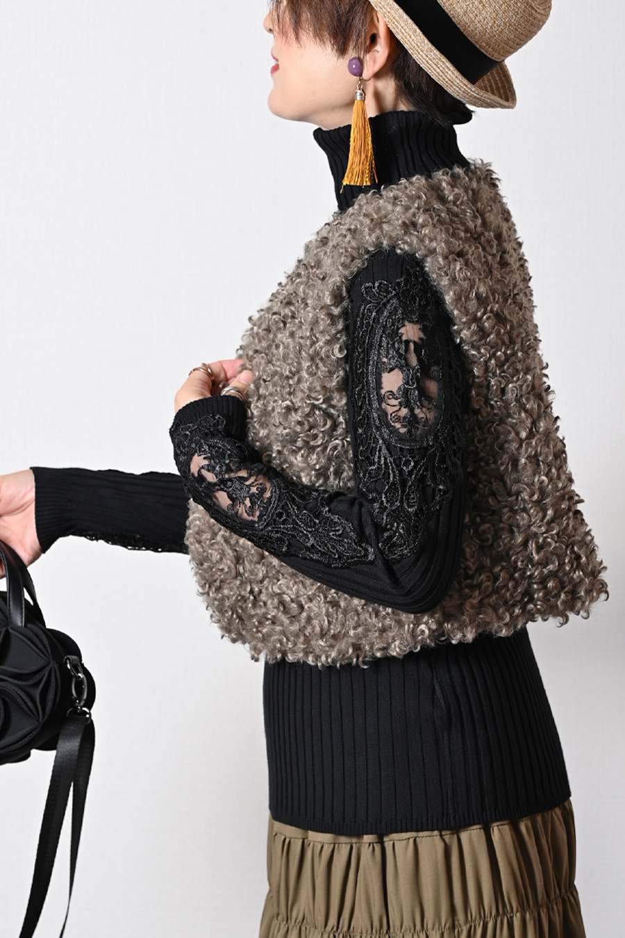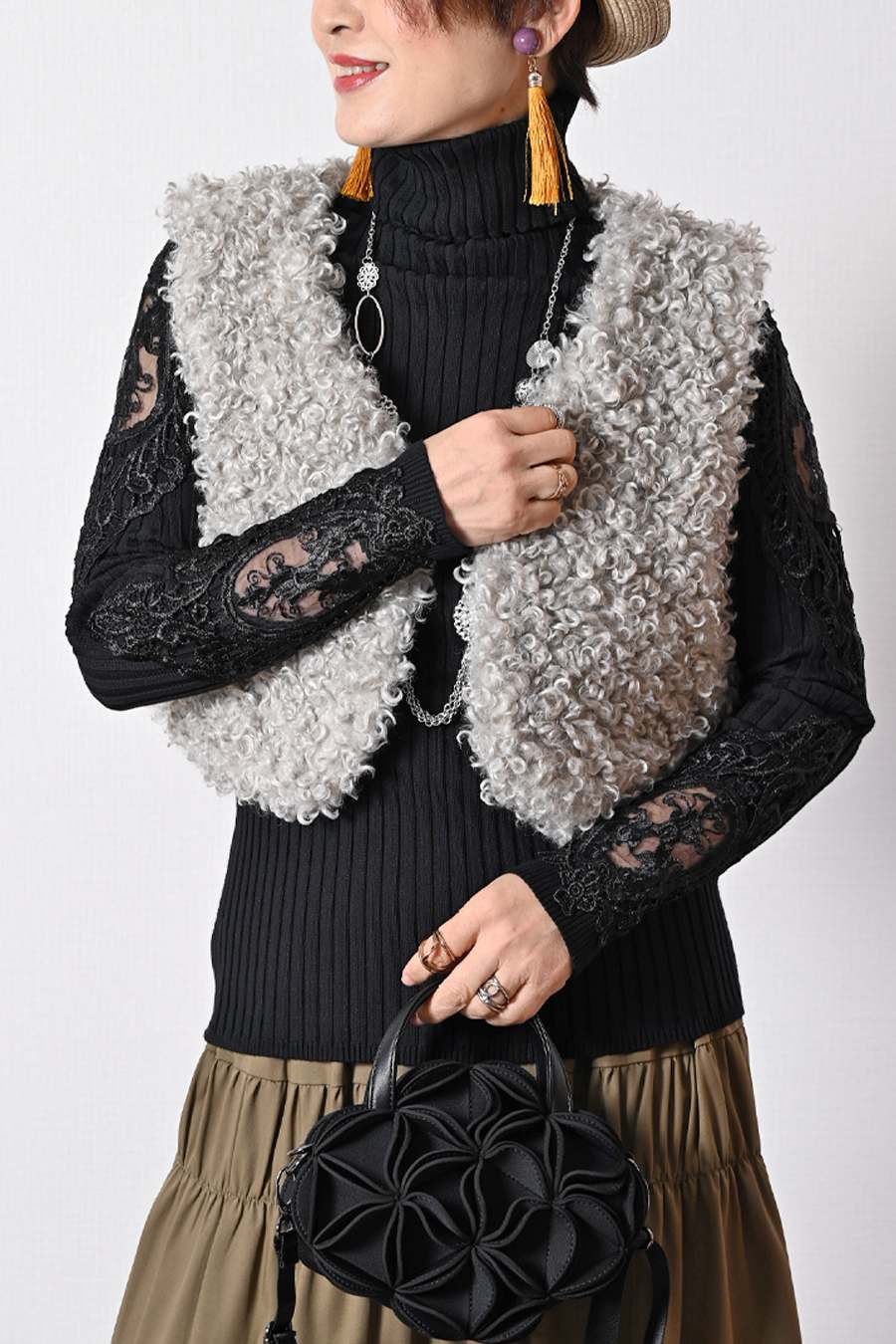 選べるボアベスト+ラメ&チュール タートルネックプルオーバー2点セットコーデ