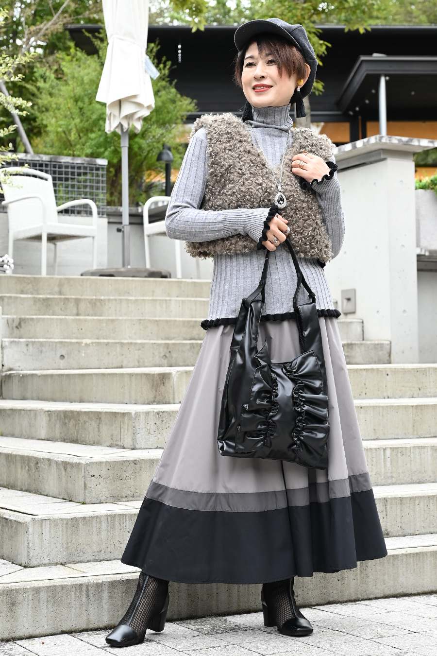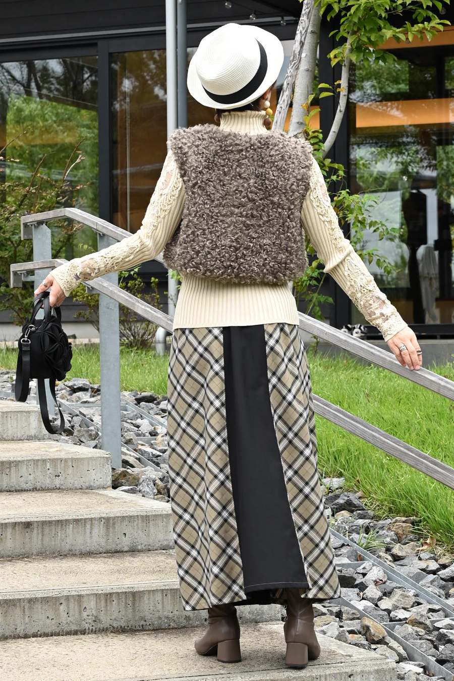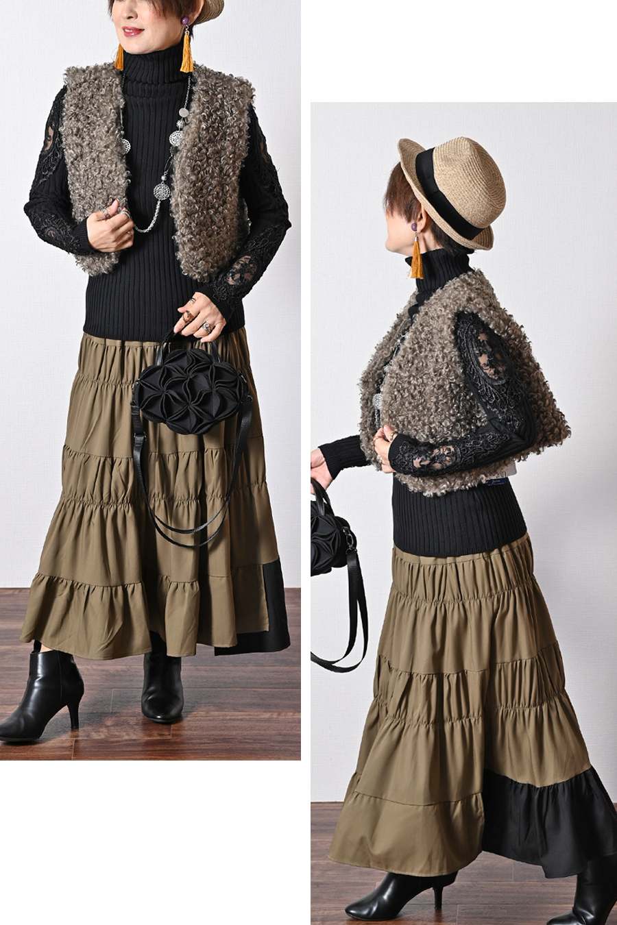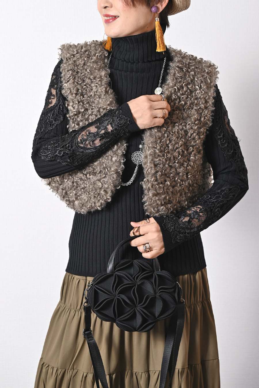選べるボアベスト+ラメ&チュール タートルネックプルオーバー2点セットコーデ