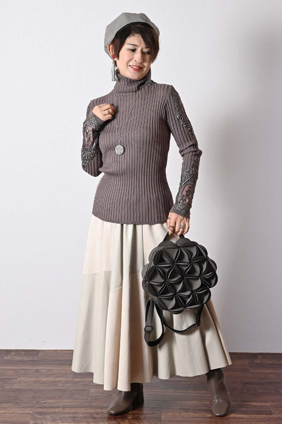 ポンチ&カットジャガードプルオーバー+カットジャガードフレアスカート2点セットコーデ