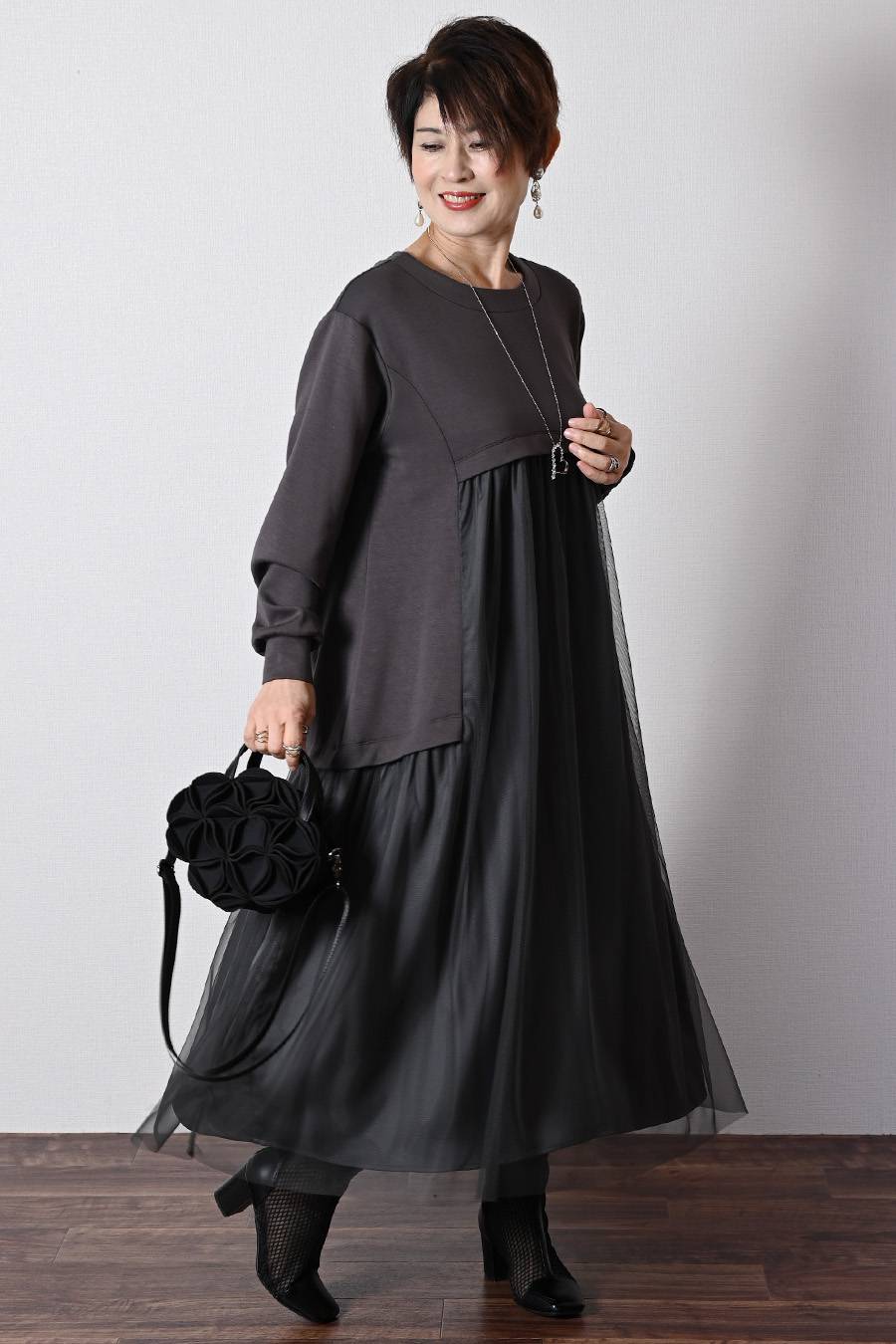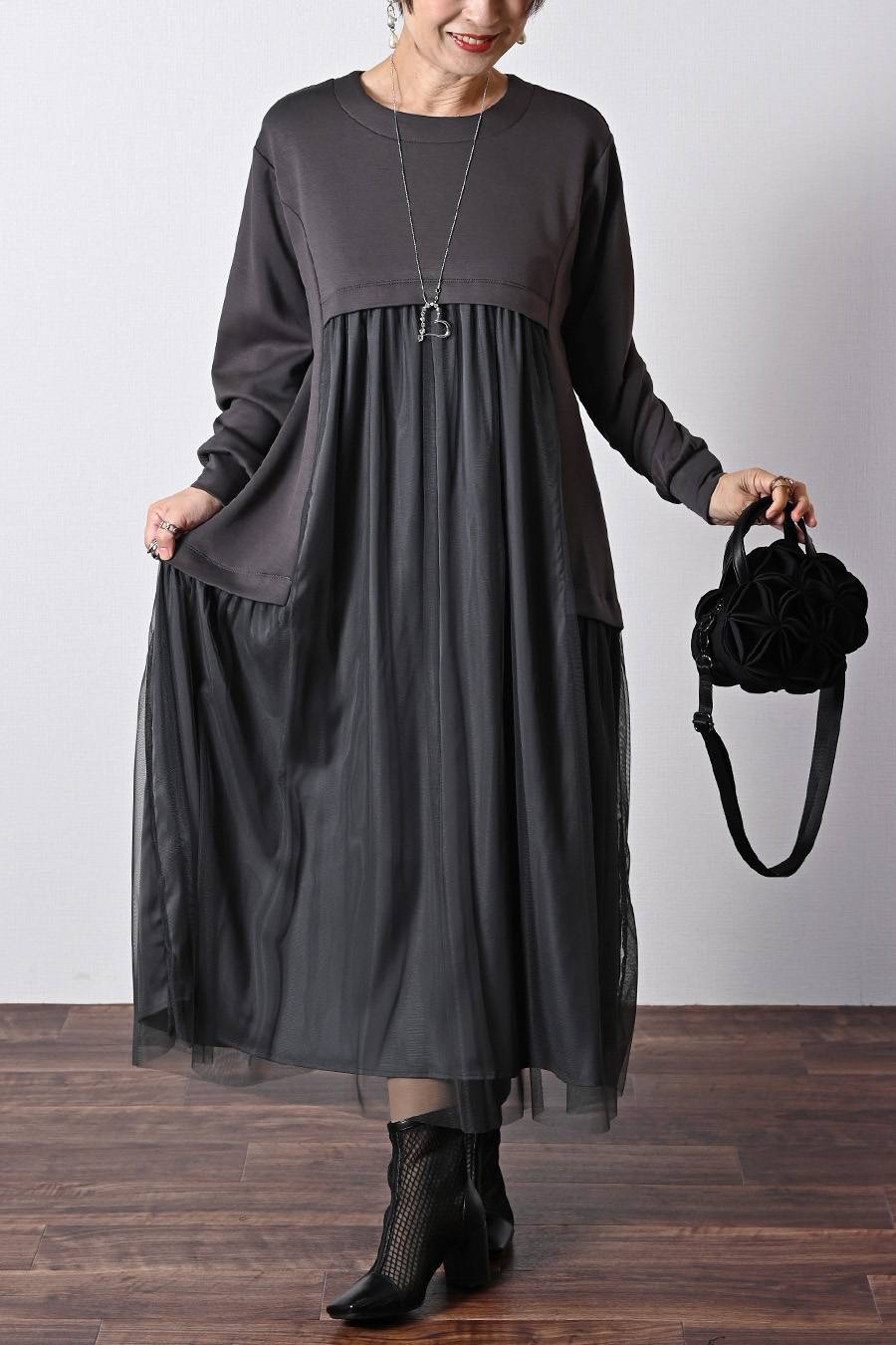 ゆったり柔らかふわり!ソフトポンチ×チュールワンピース