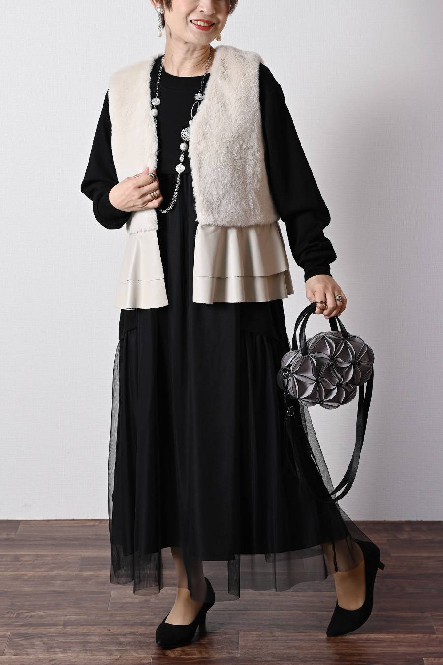 選べるボアベスト+ラメ&チュール タートルネックプルオーバー2点セットコーデ