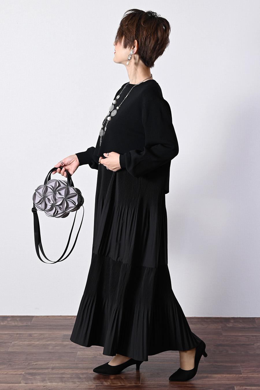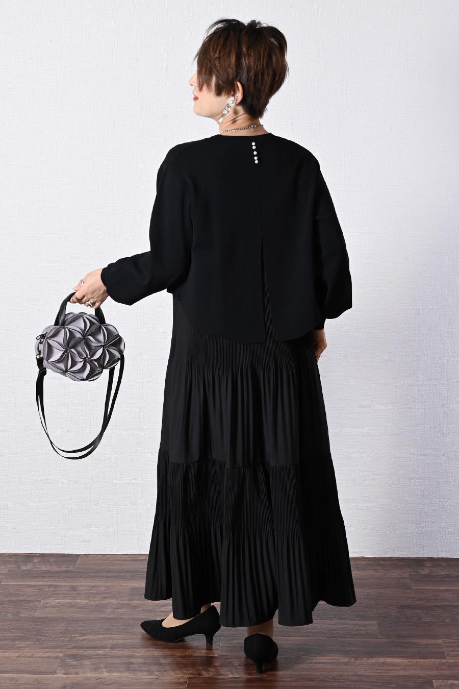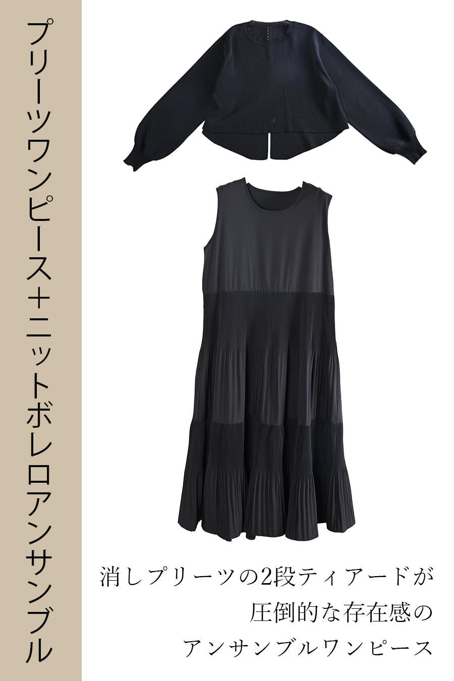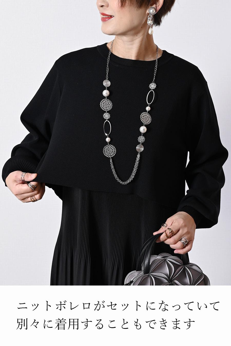 プリーツワンピース+ニットボレロアンサンブル