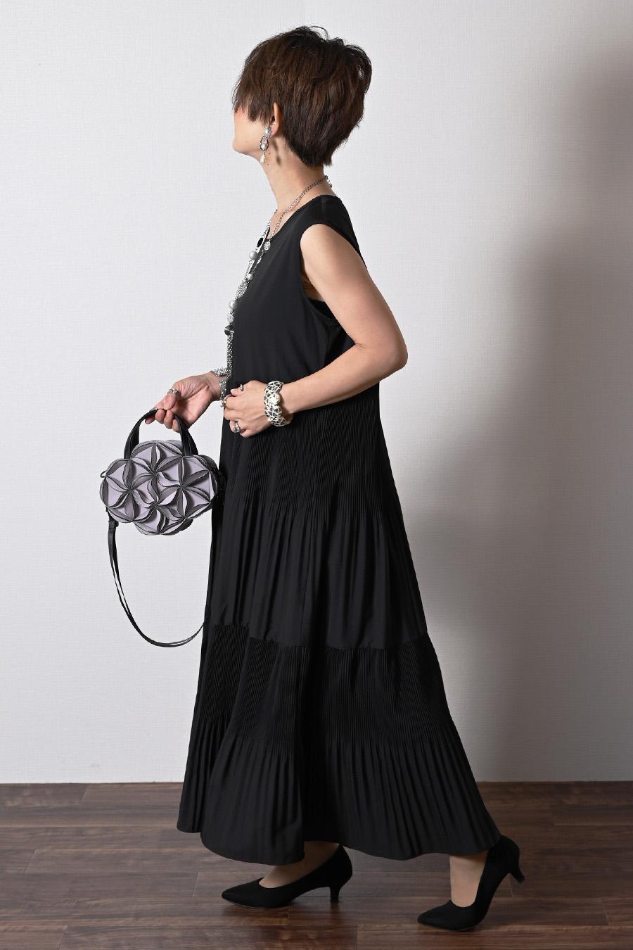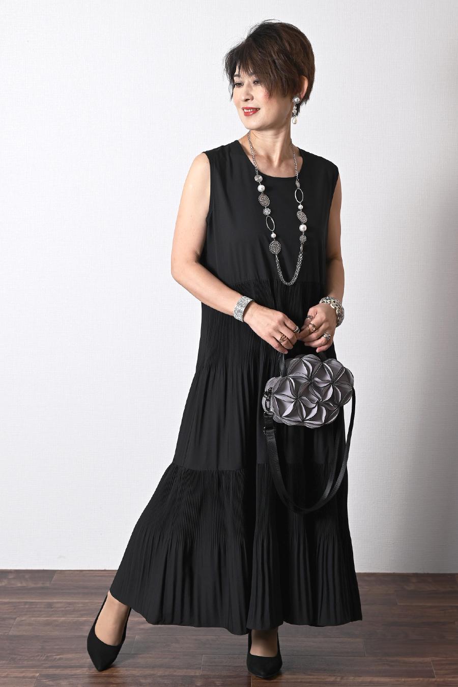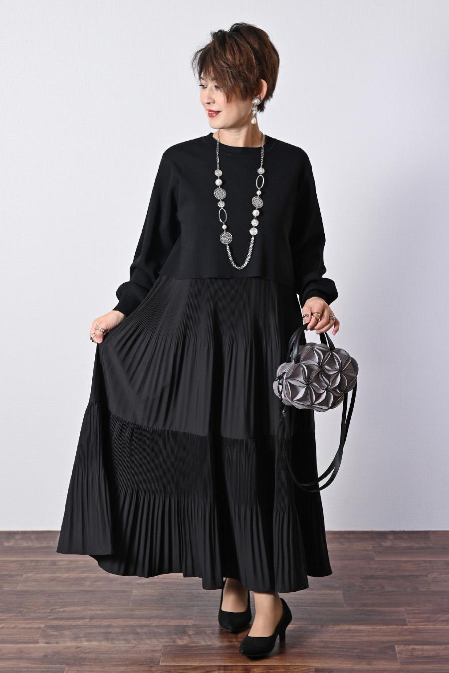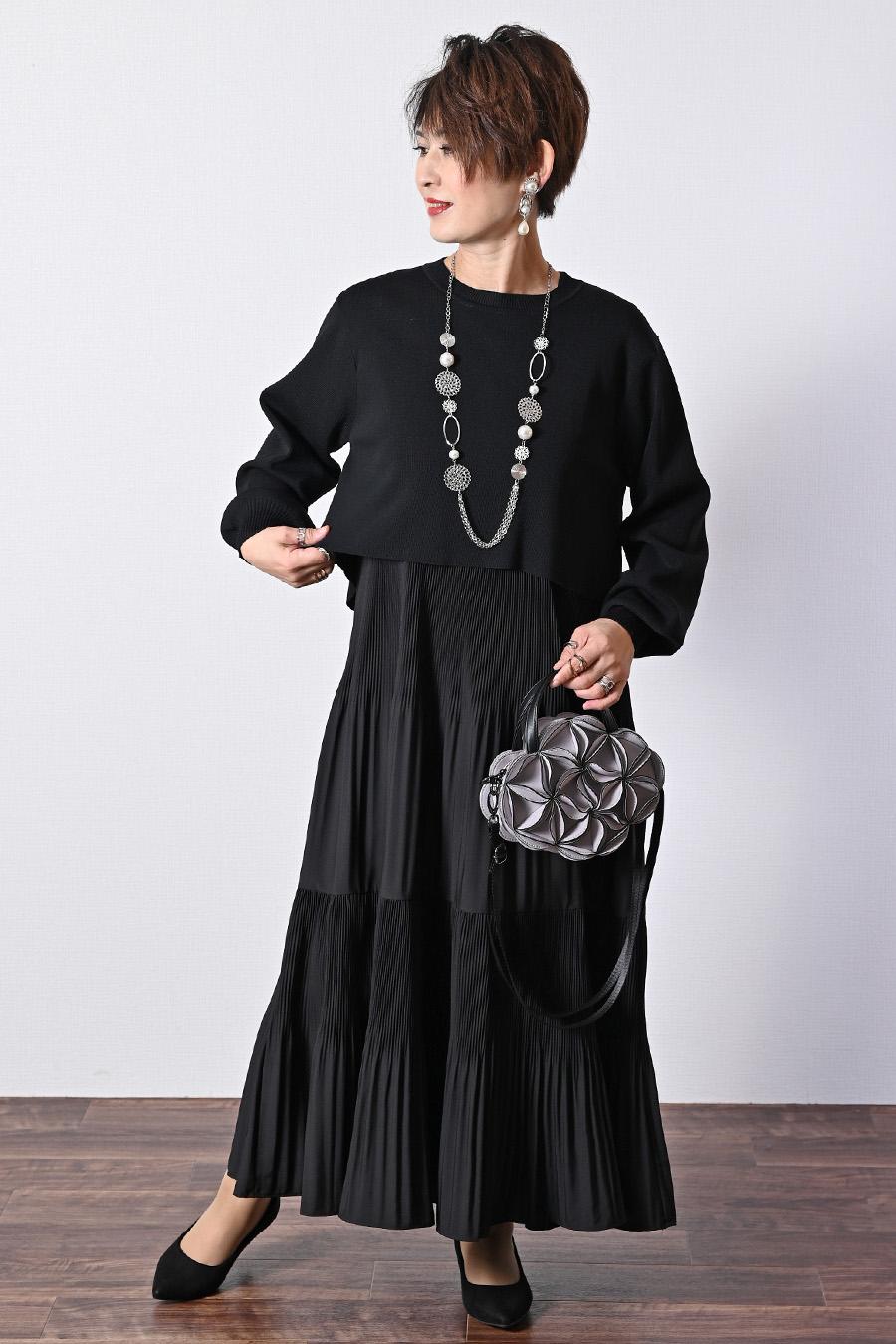 プリーツワンピース+ニットボレロアンサンブル