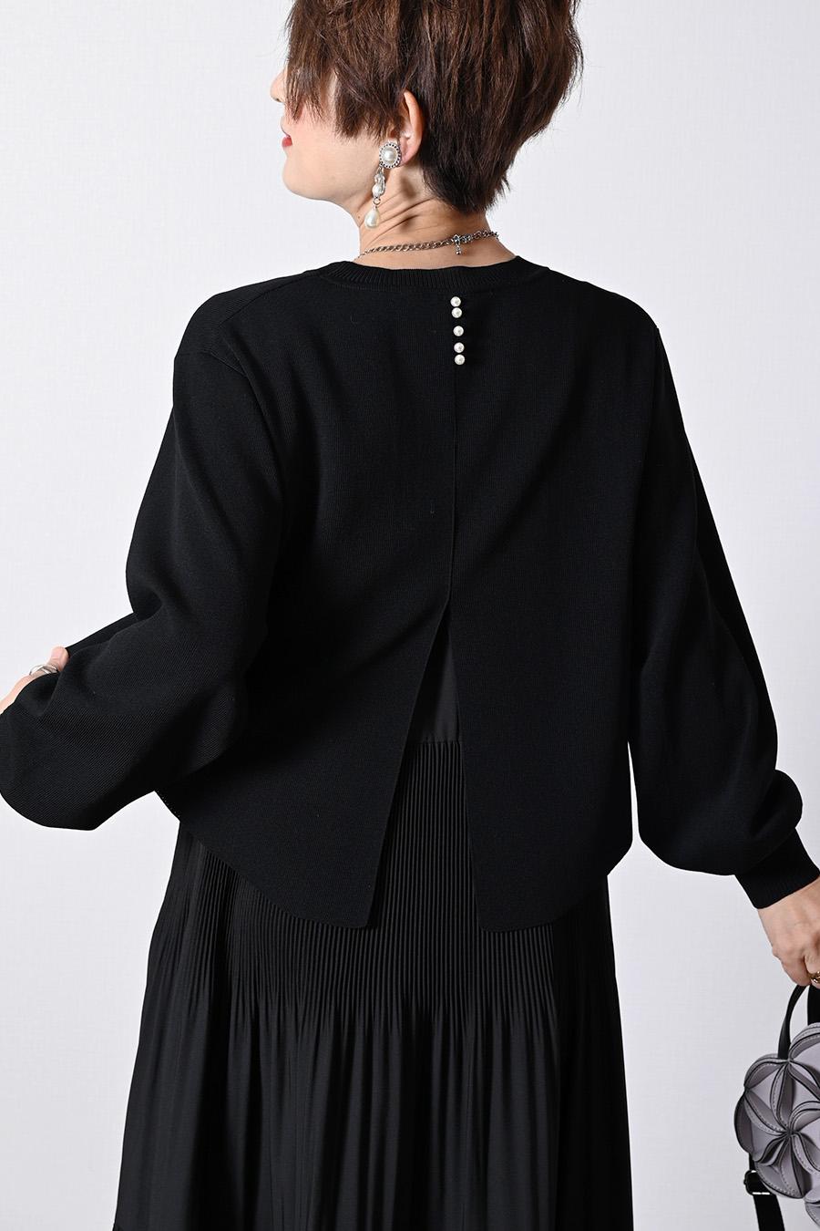 背面ボタンバイカラーリブニット