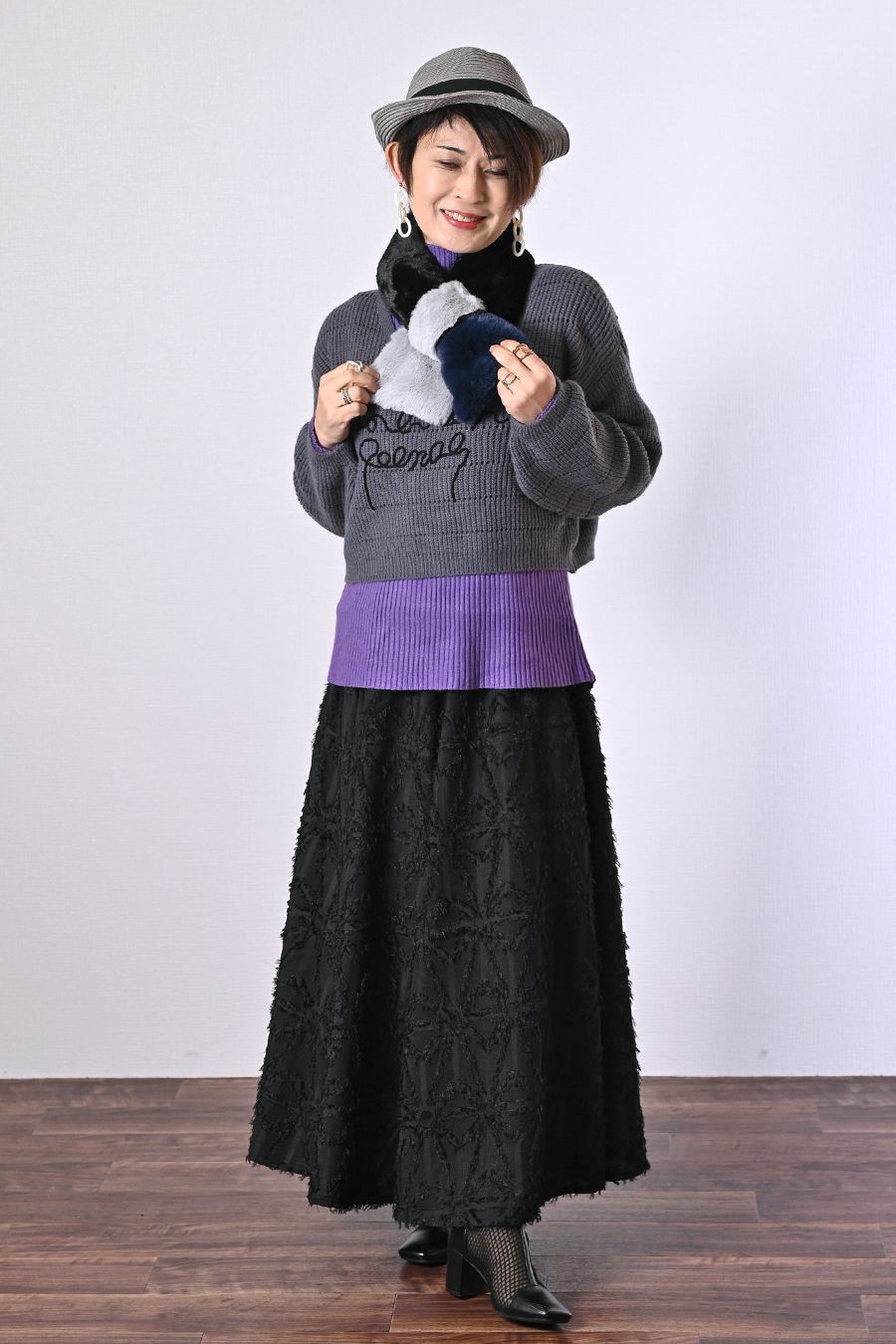 ポンチ&カットジャガードプルオーバー+カットジャガードフレアスカート2点セットコーデ