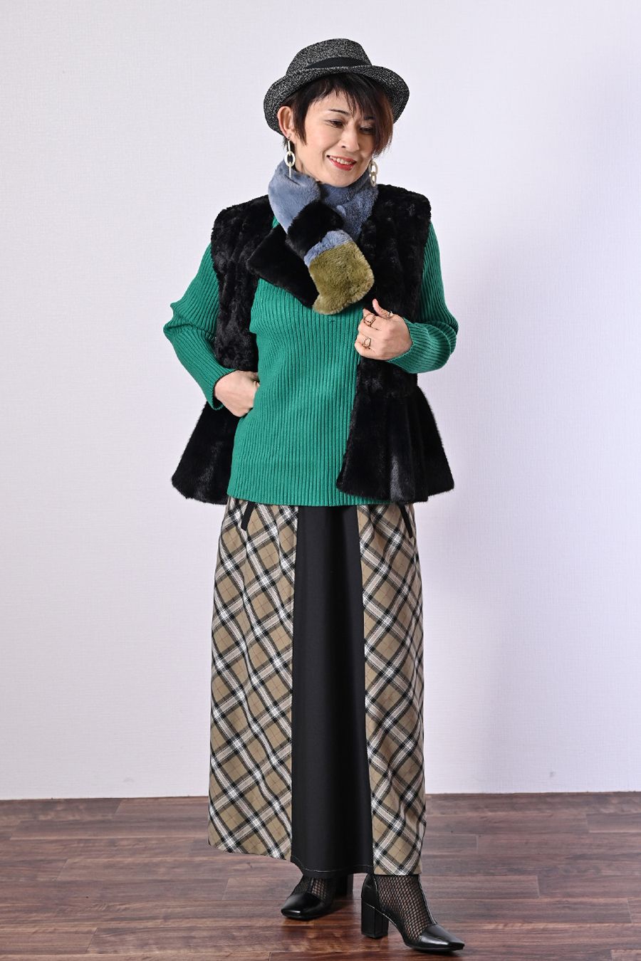 選べるボアベスト+ラメ&チュール タートルネックプルオーバー2点セットコーデ