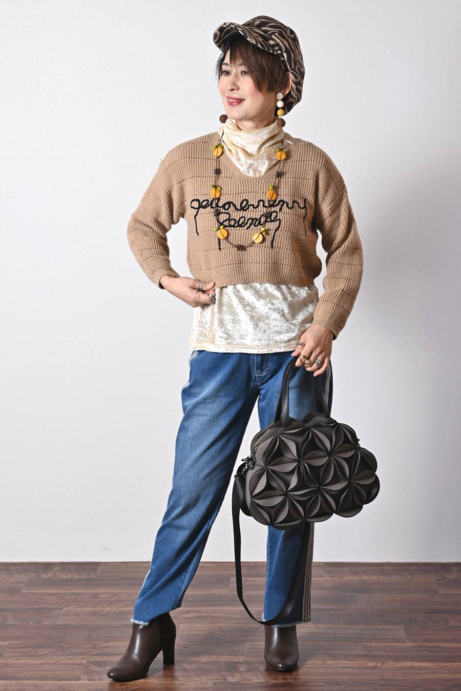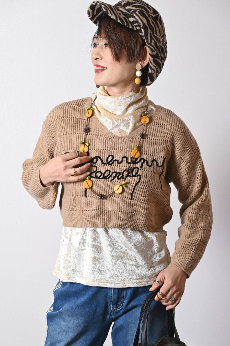 ファンシーヤーンVネックベスト+選べる2種類のインナーカットソー2点セットコーデ