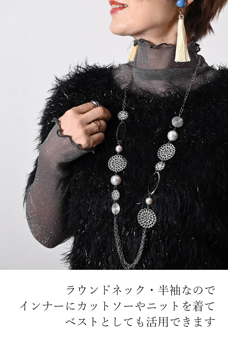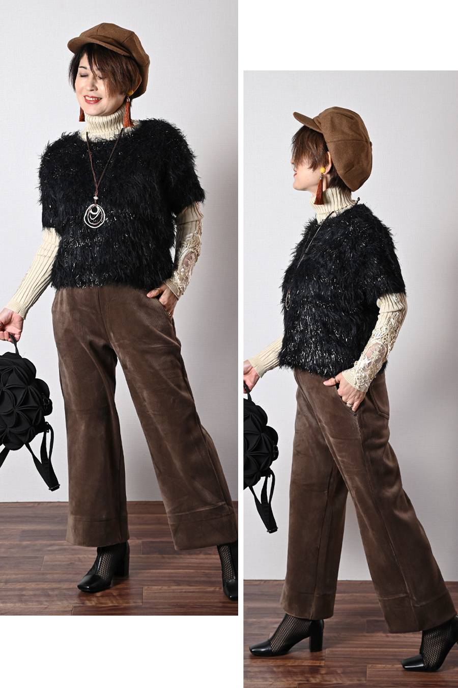 選べるボアベスト+ラメ&チュール タートルネックプルオーバー2点セットコーデ