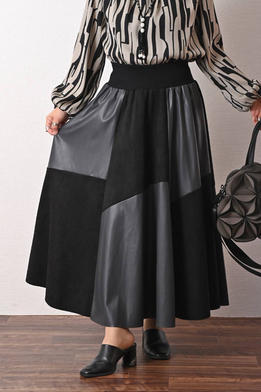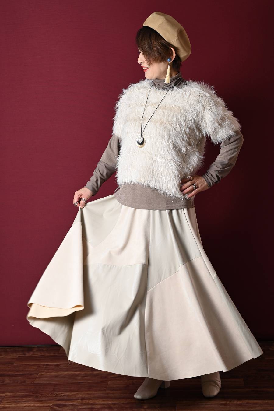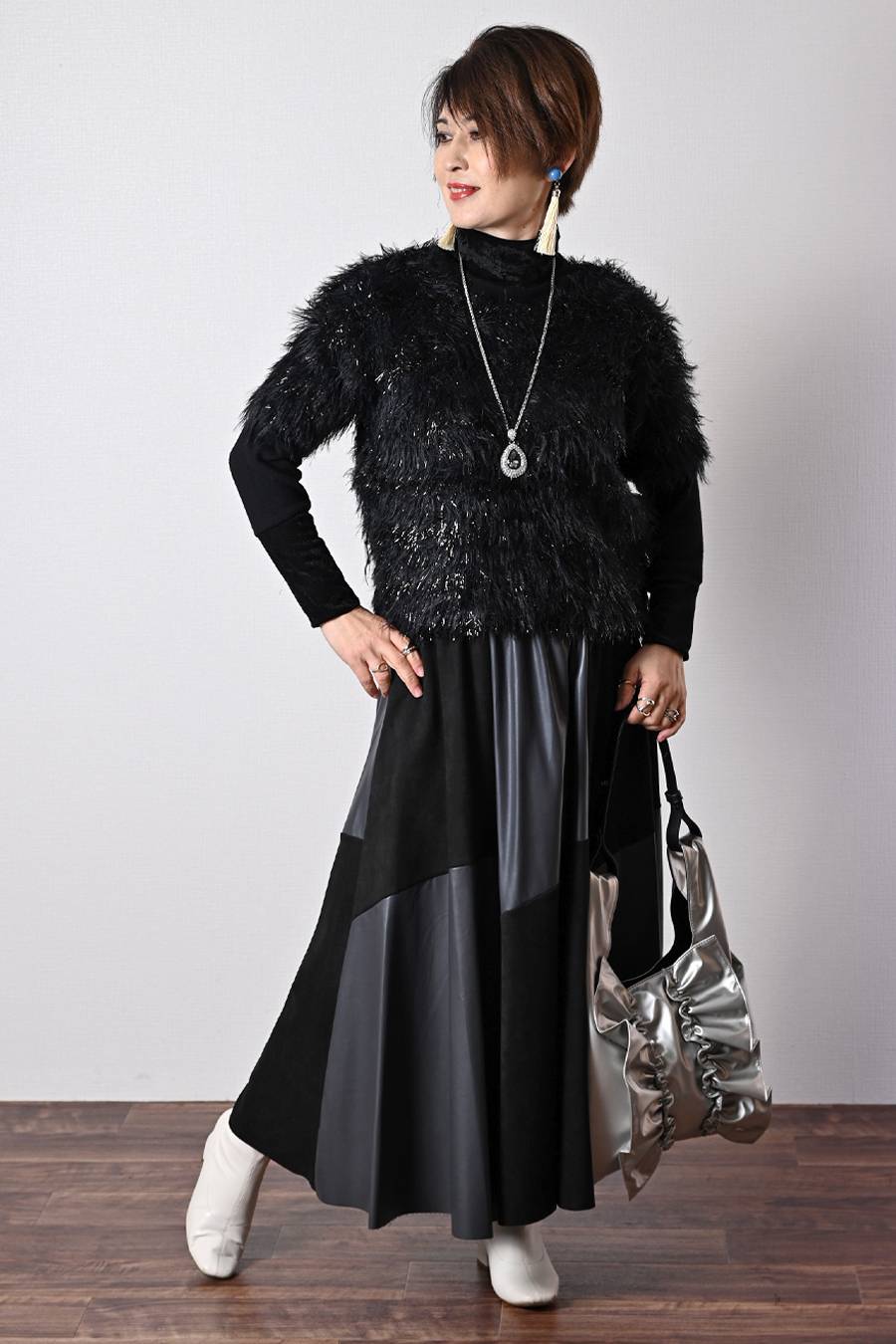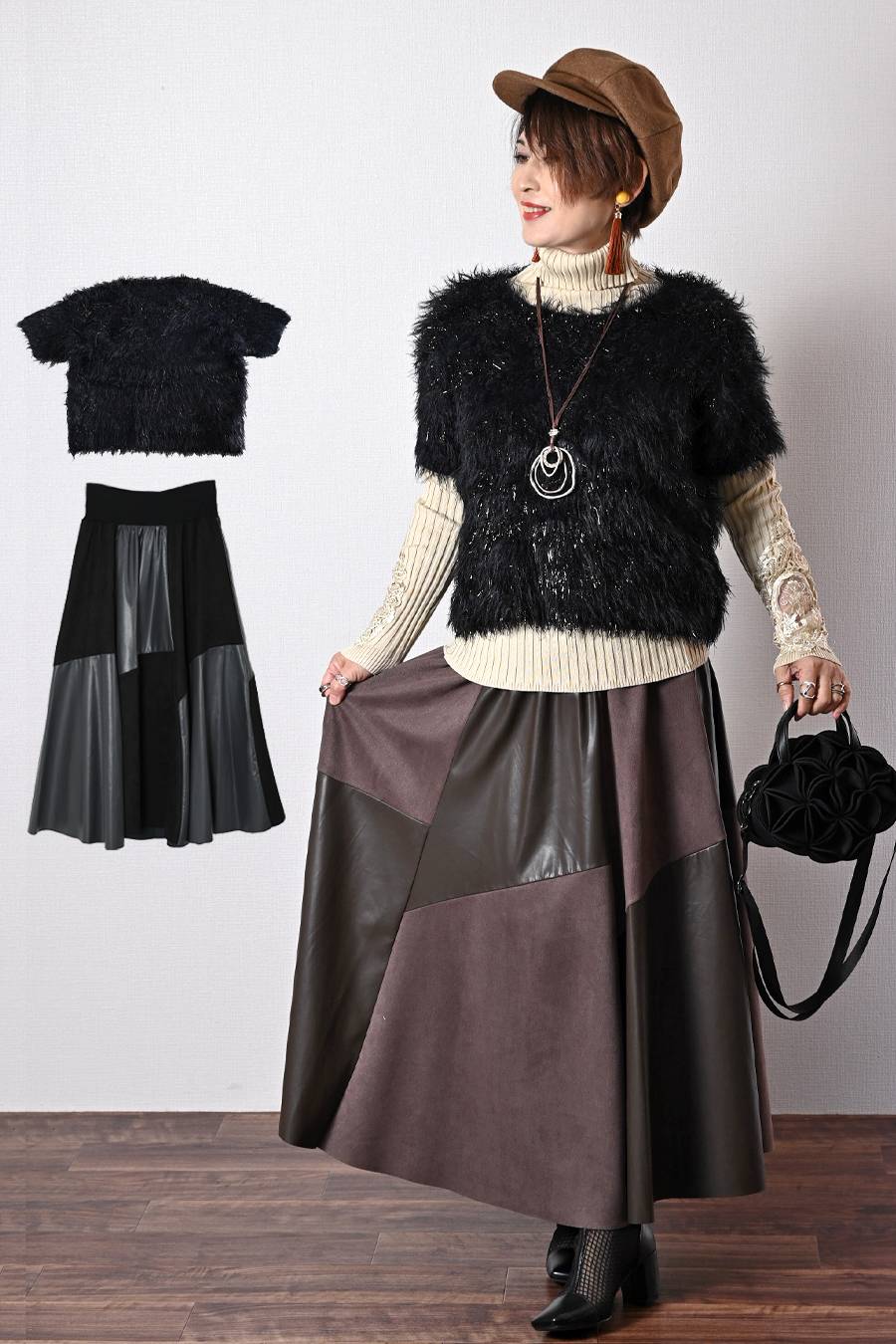 ショートスリーブシャギーニット+エコレザースカート2点セットコーデ